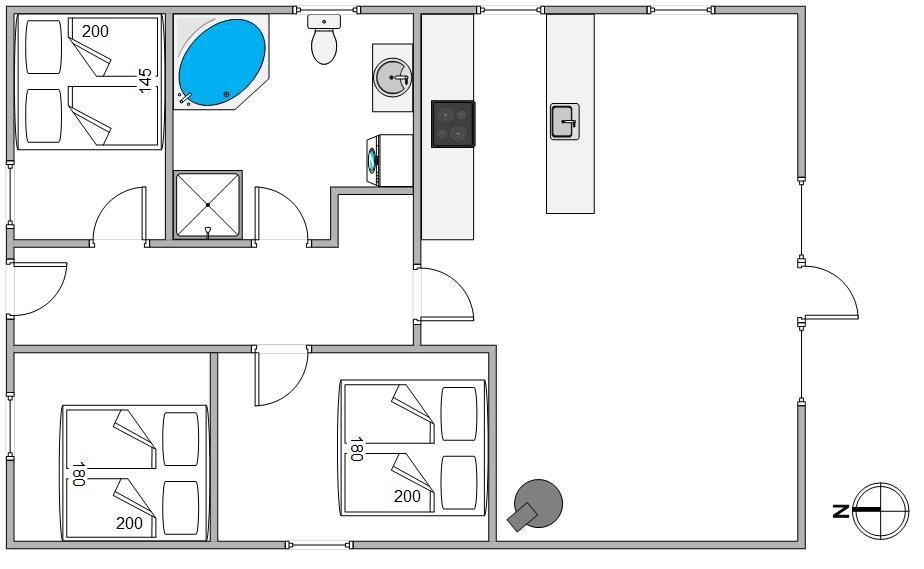 Det lyse badeværelse har gulvvarme, vaskemaskine og et spabad. Her kan du slappe af og nyde velværet i det varme vand. En god nats søvn er der også gode muligheder for i de 3 soveværelser med komfortable dobbeltsenge. Læg mærke til, at den friske vesterhavsluft gør noget godt for nattesøvnen.