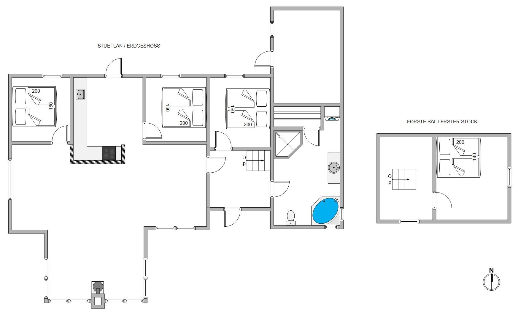 Her har I muligheden for at holde ferie i et moderne indrettet kvalitetshus, hvor 4 komfortable dobbeltværelser – det ene på 1.sal – og en stor wellnessafdeling med 2-personers spa og afslappende sauna, hvor også vaskesøjlen har plads.