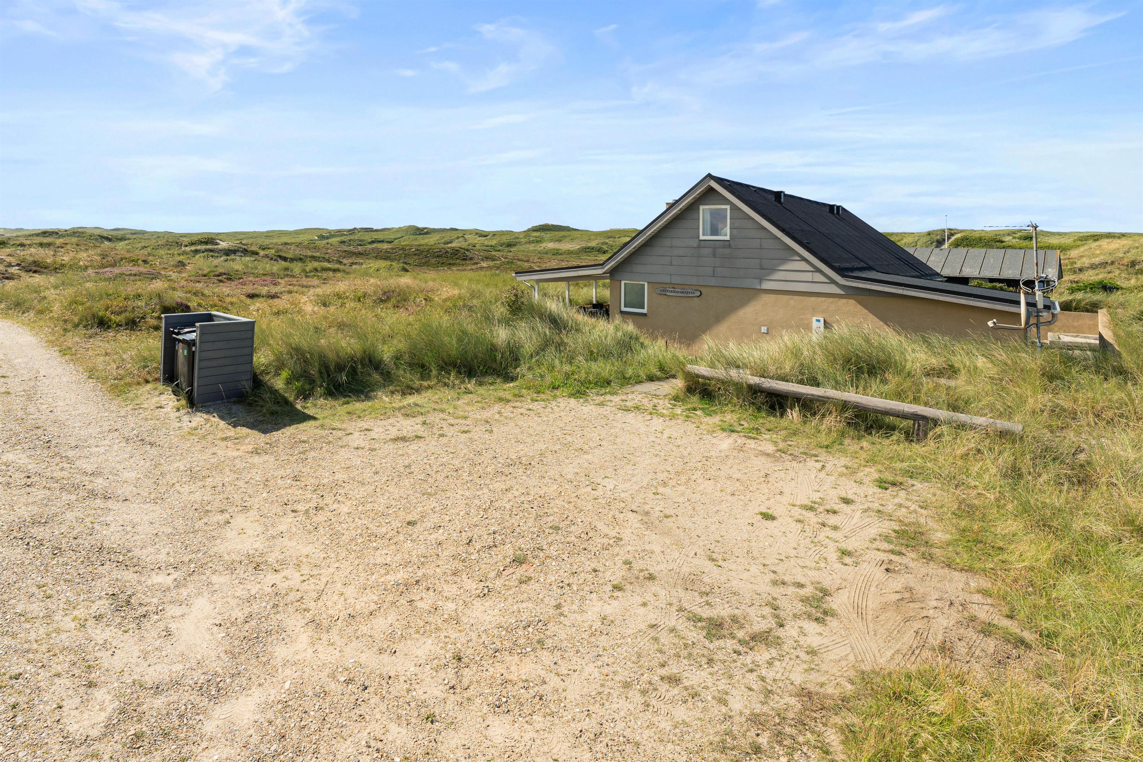 Fra sommerhusets terrasse har I en skøn udsigt til det naturskønne område, som består af hede- og klitlandskab.