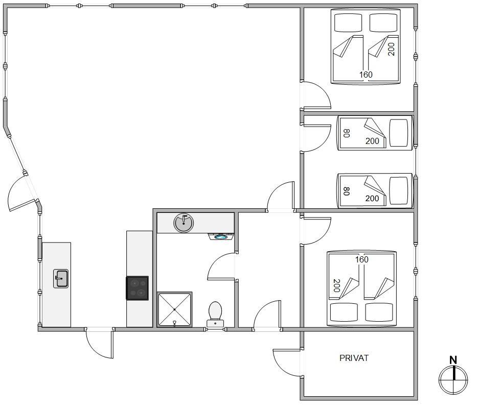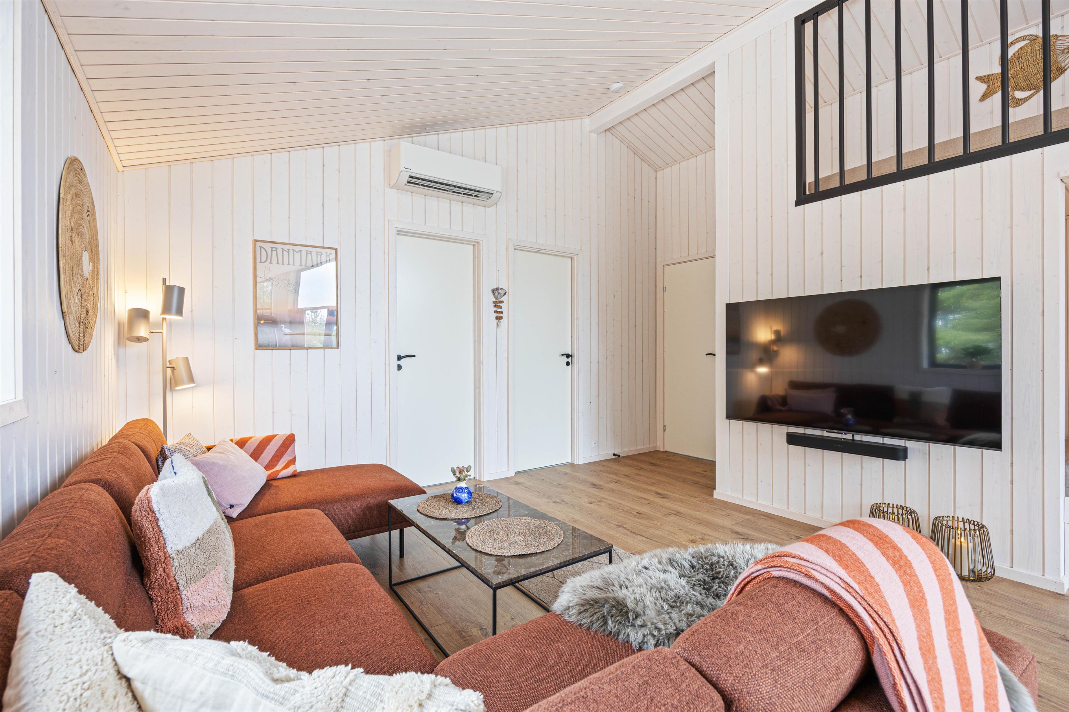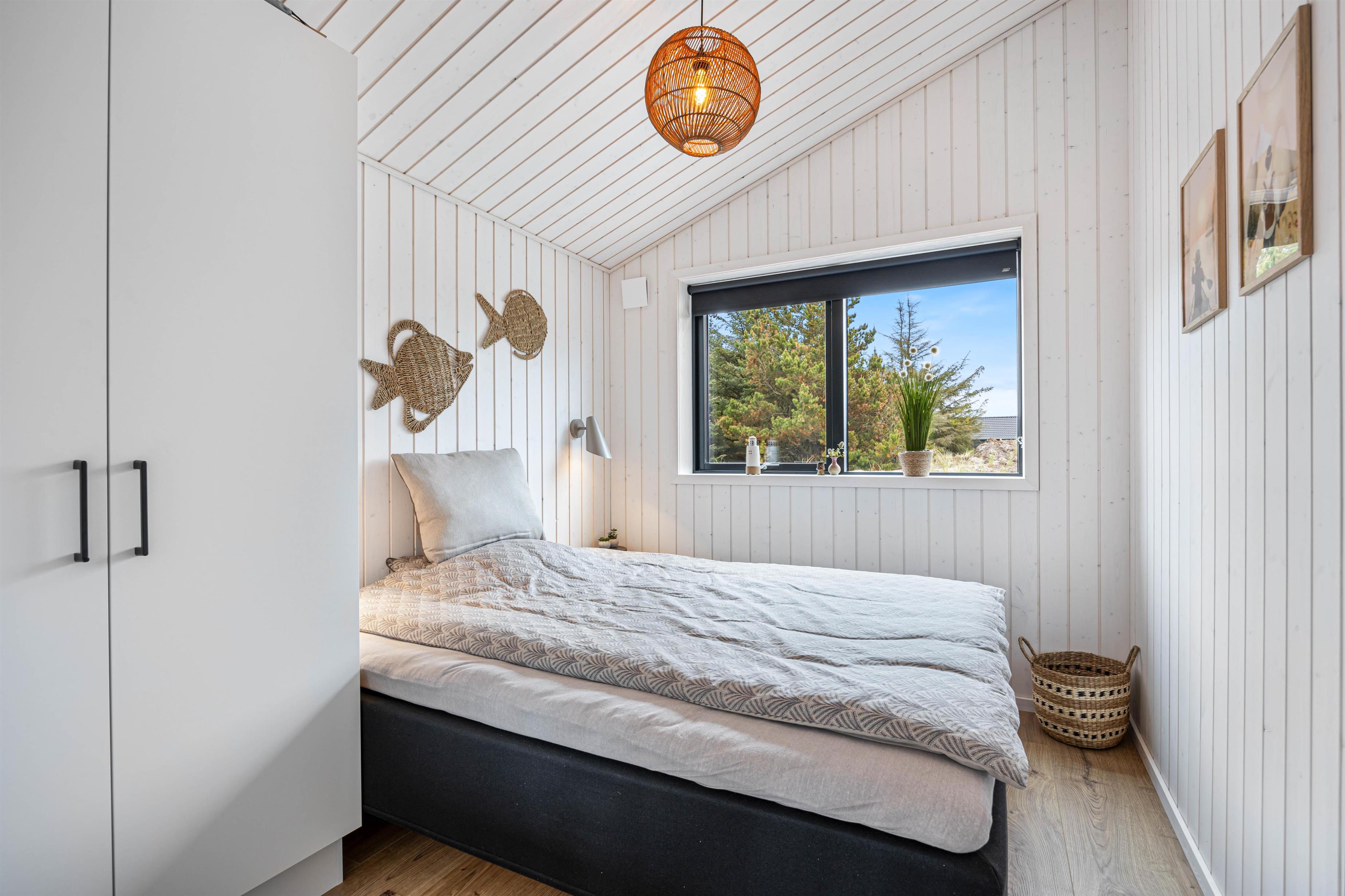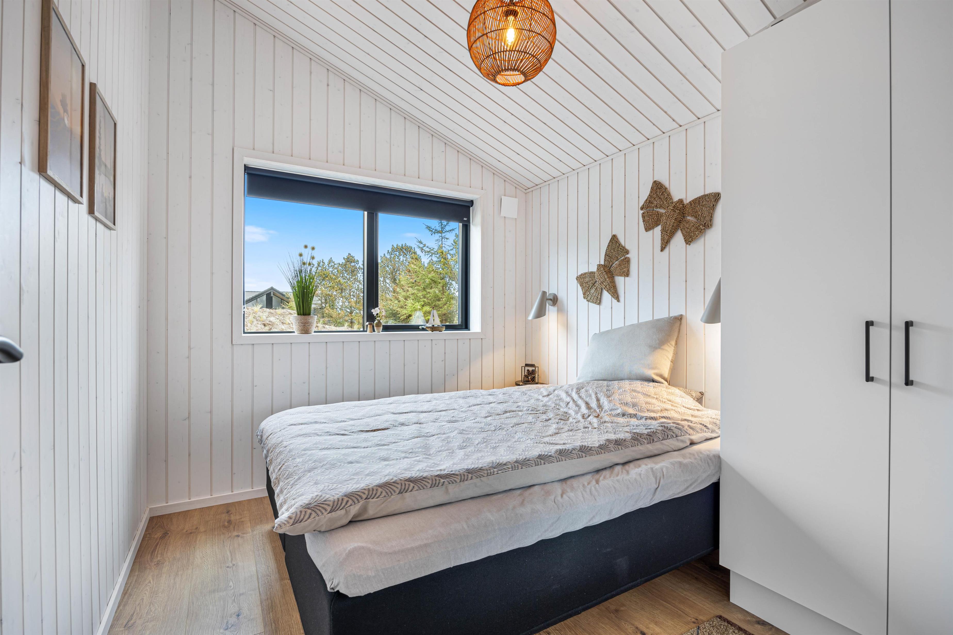 Indretningen er præget af skandinavisk stil med lyse farver og et dejligt lysindfald. Den åbne stue med store vinduer er sommerhusets naturlige samlingspunkt, hvor du kan slappe af i sofahjørnet med en god bog eller nyde måltiderne ved spisebordet. Køkkenet er fuldt udstyret og gør det nemt at klare feriens madlavning – og opvaskemaskinen hjælper gerne bagefter.
