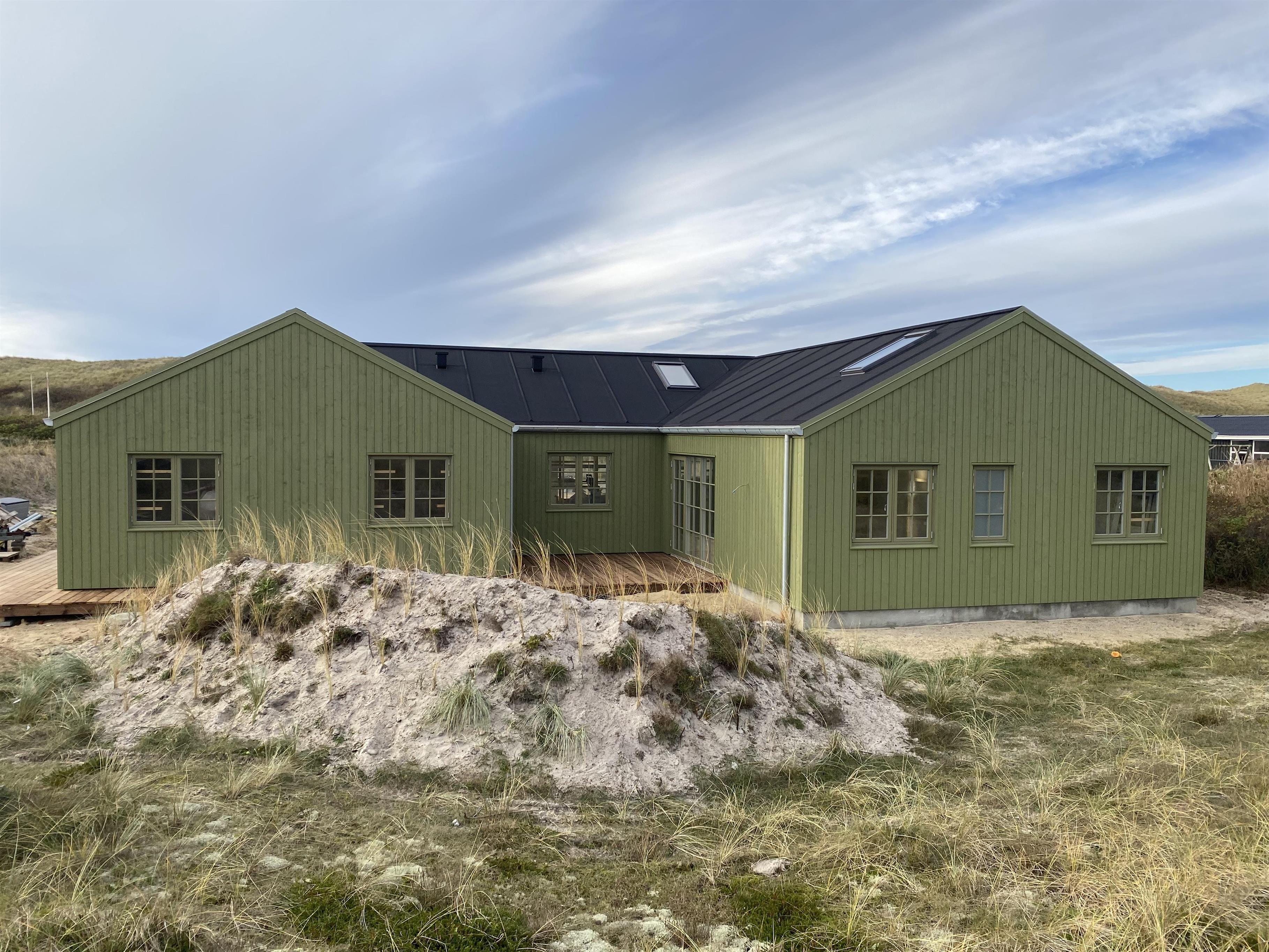 Velkommen til et moderne og indbydende sommerhus fra 2026 med alt, hvad I behøver for en afslappende og aktiv ferie ved Vesterhavet. Her kan op til 18 personer og 2 hunde nyde ferien blot 200 meter fra stranden. Med sin grønne facade falder sommerhuset i ét med det naturskønne område og skaber en harmonisk forbindelse til den omkringliggende natur. Sommerhuset er 240 m² stort og byder på luksuriøse faciliteter og fantastisk beliggenhed med kort afstand til indkøbsmulighed og natur.