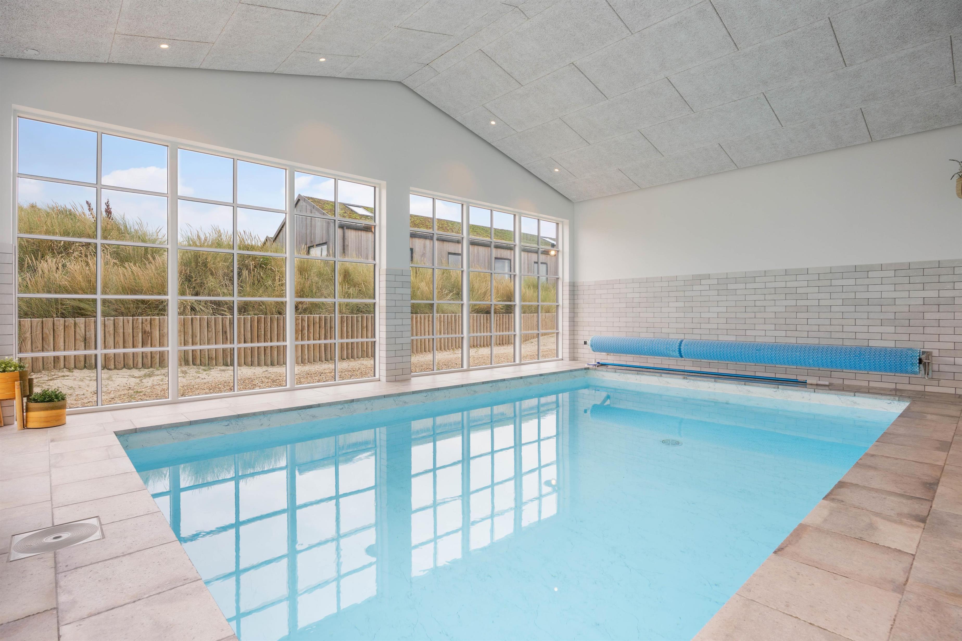 Et af sommerhusets samlingspunkter er det indendørs poolområde, hvor både børn og voksne kan boltre sig. Swimmingpoolen er udstyret med svømmetræner og har også et babybassin. Babybassinet er 40 cm dybt og udgør 4 m² af poolens i alt 17 m².