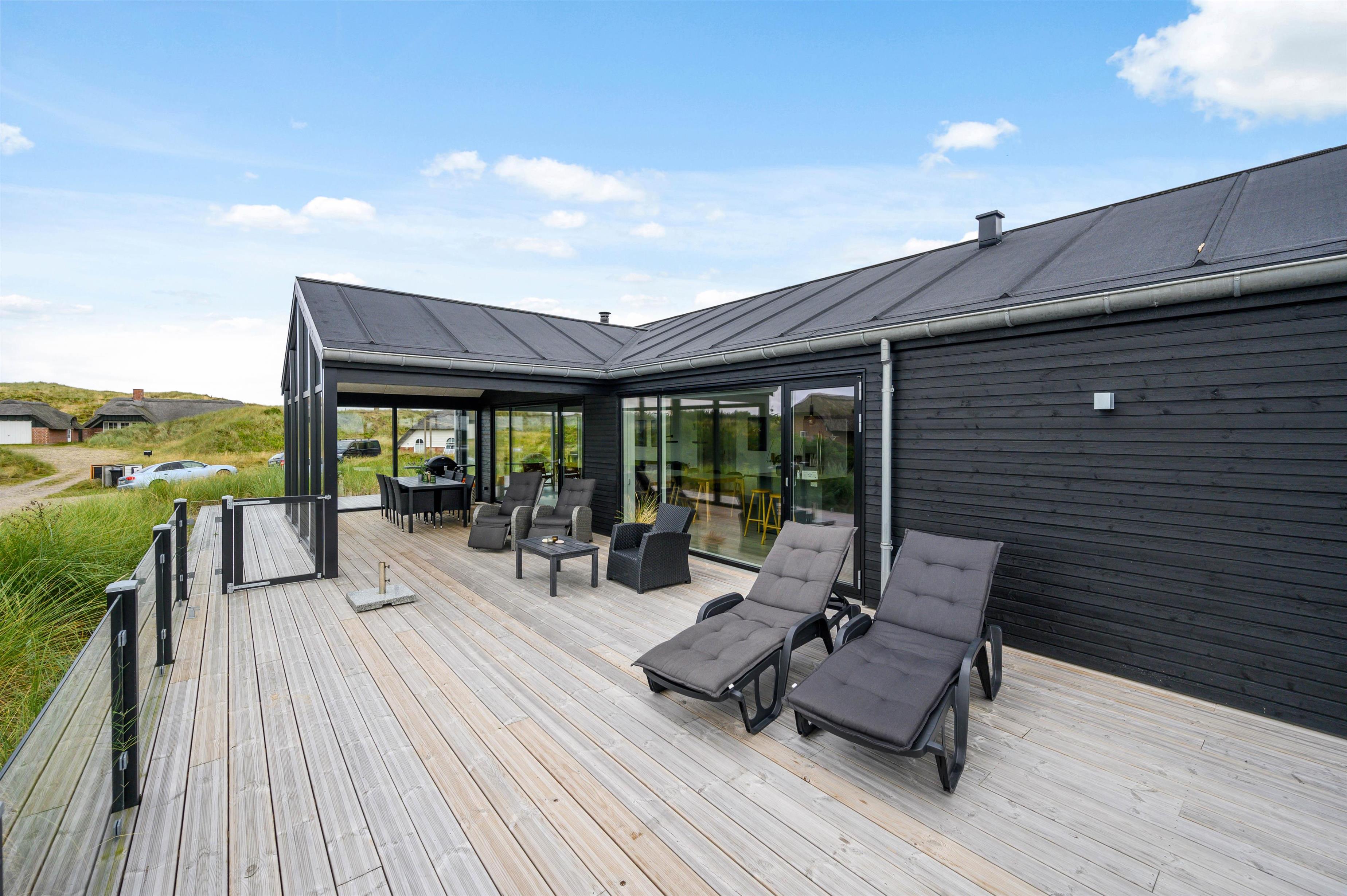 Også udvendigt får I de lækreste omgivelser. Bilbergsvej 79 byder på en skøn udestue, så I kan nyde den friske havluft og den fantastiske udsigt selv i regn og blæst, og der er selvfølgelig også sørget for gode havemøbler og liggestole til de varme sommerdage. Er I mere til en dukkert i Vesterhavet, er stranden kun i en afstand af 400 meter væk fra feriehuset.