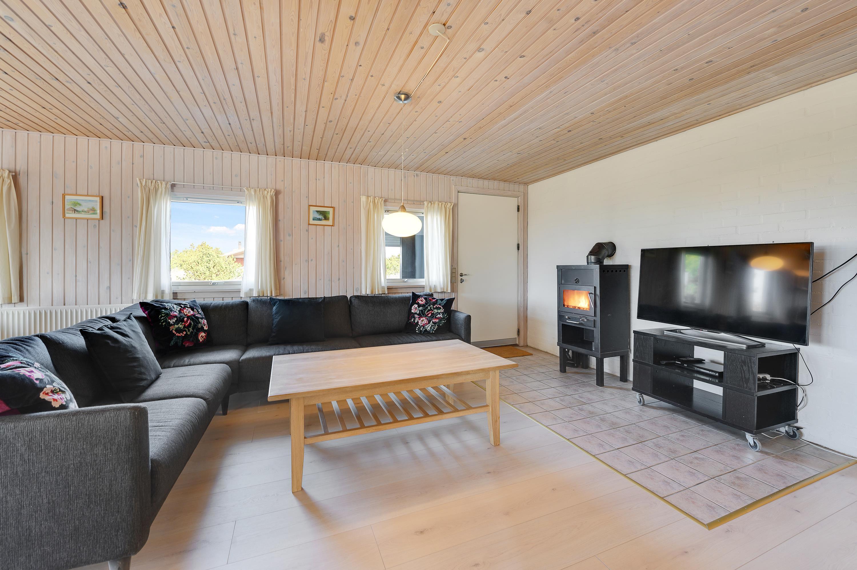 På de lidt køligere aftener giver sommerhusets brændeovn en dejlig varme og hyggelig atmosfære. Luft til vandvarmepumpen sørger desuden for en behagelig og energibesparende temperatur i feriehuset.