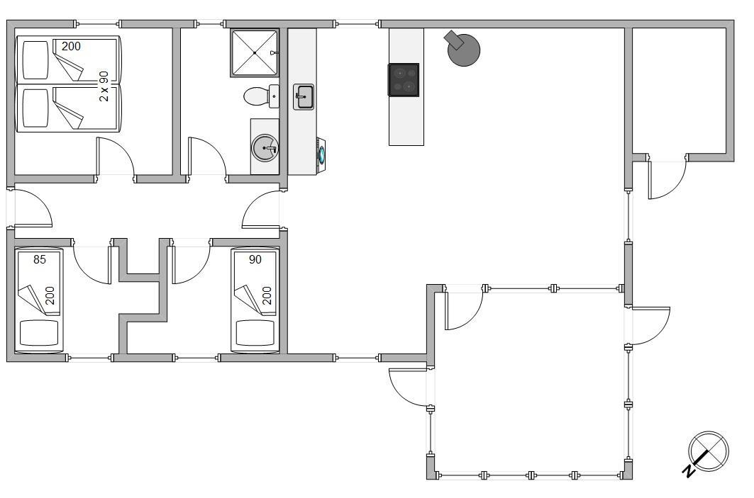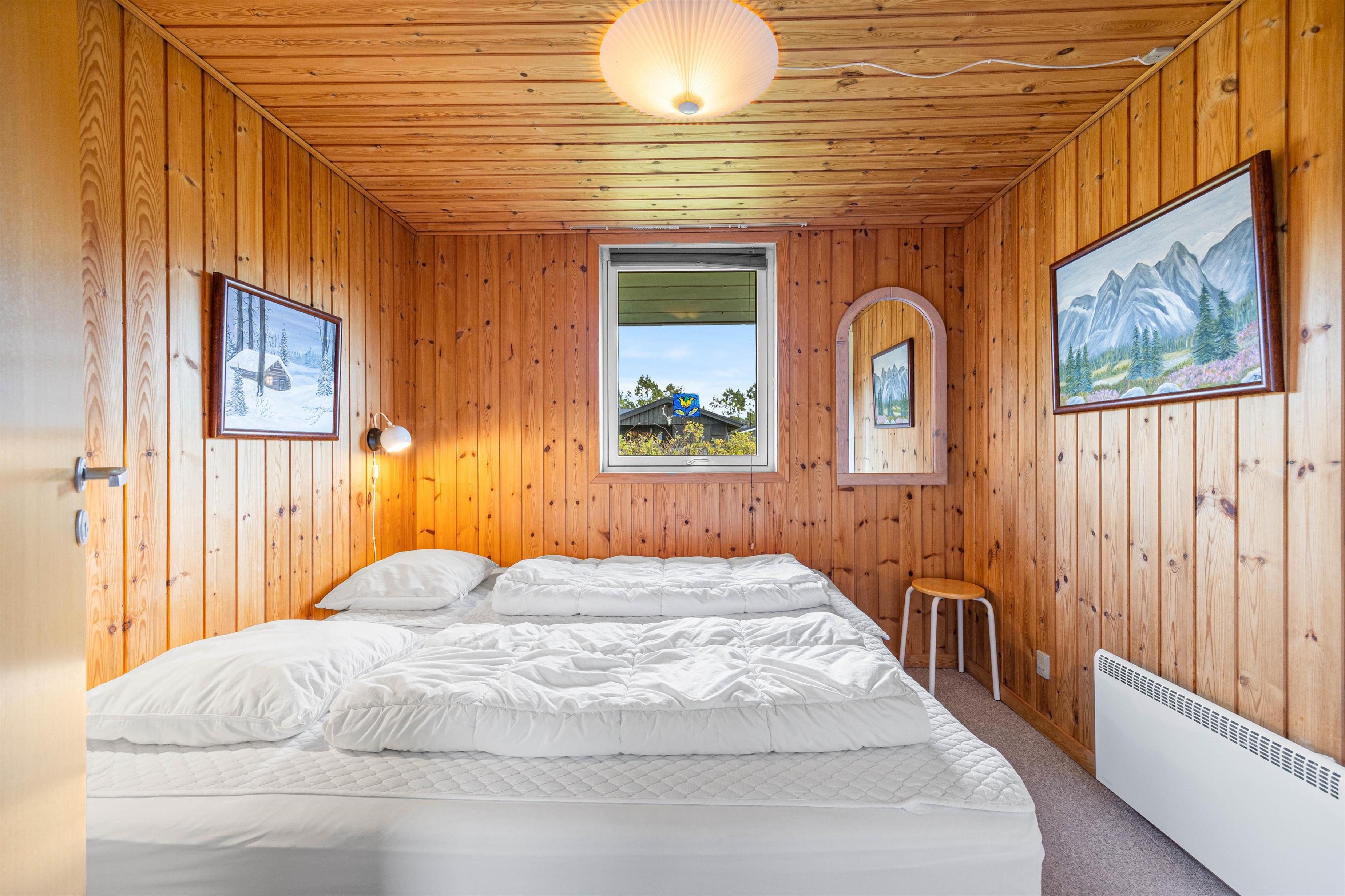 I sommerhuset kan I holde en dejlig ferie i rolige omgivelser. Feriehuset virker væsentligt større end de 68 m2, idet udestuen ikke tæller med i de oplyste m2. Trævæggene er lyse og får sommerhuset til at virke indbydende. De 3 værelser er indrettet med henholdsvis 1 dobbeltseng og 1 enkeltseng i hvert af de 2 sidste værelser.