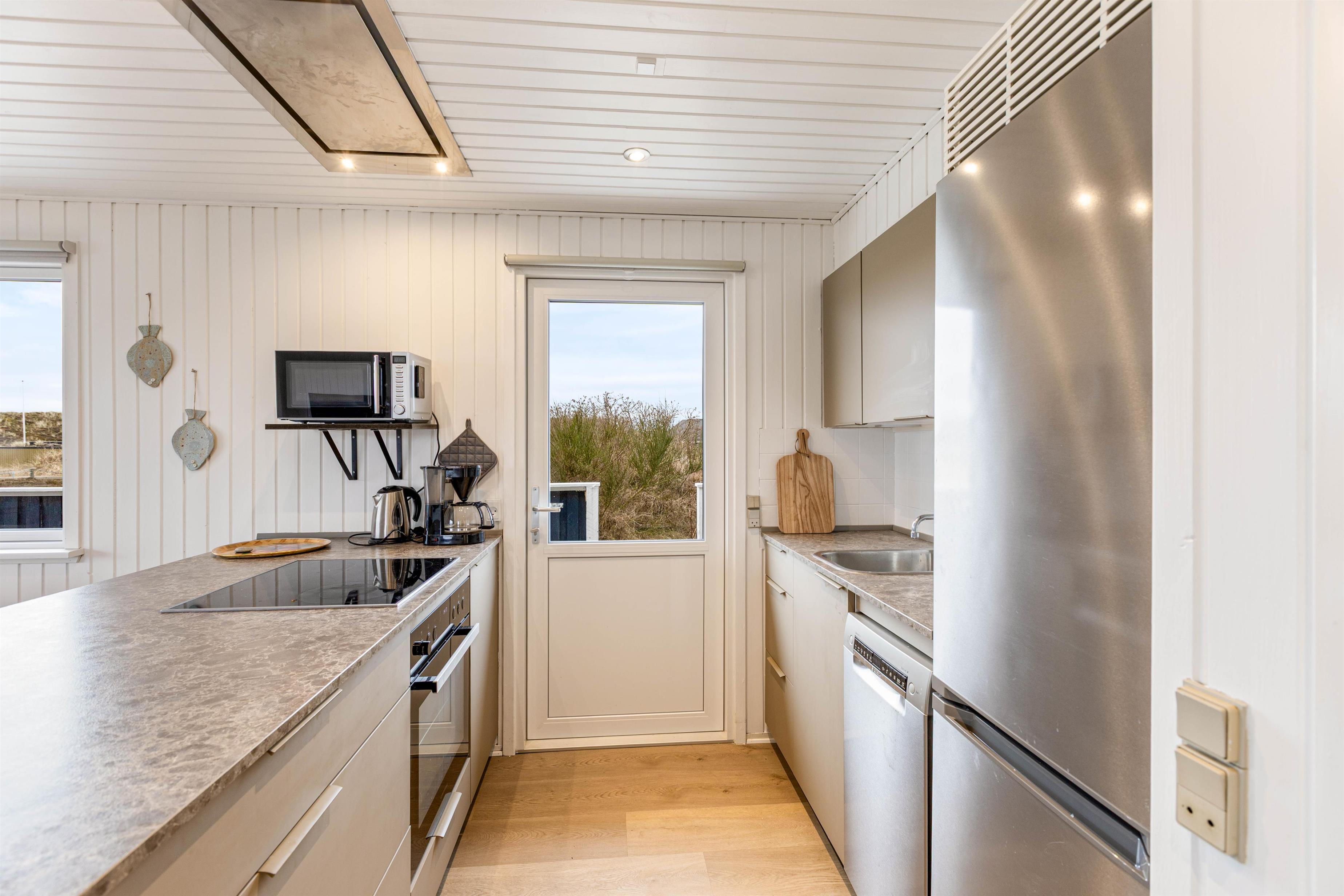 Det praktiske køkken har opvaskemaskine og induktionskomfur samt 60 liters fryser, som især vil glæde lystfiskere. Den energibesparende varmepumpe giver varme selv ved koldere temperaturer og kan bruges som supplement til pejsen. Meget bekvemt har dette feriehus også en vaskemaskine.