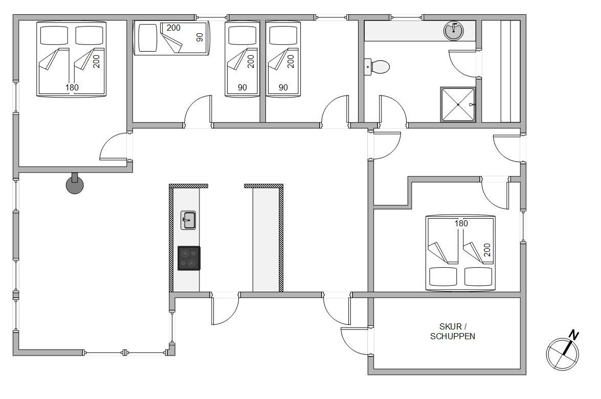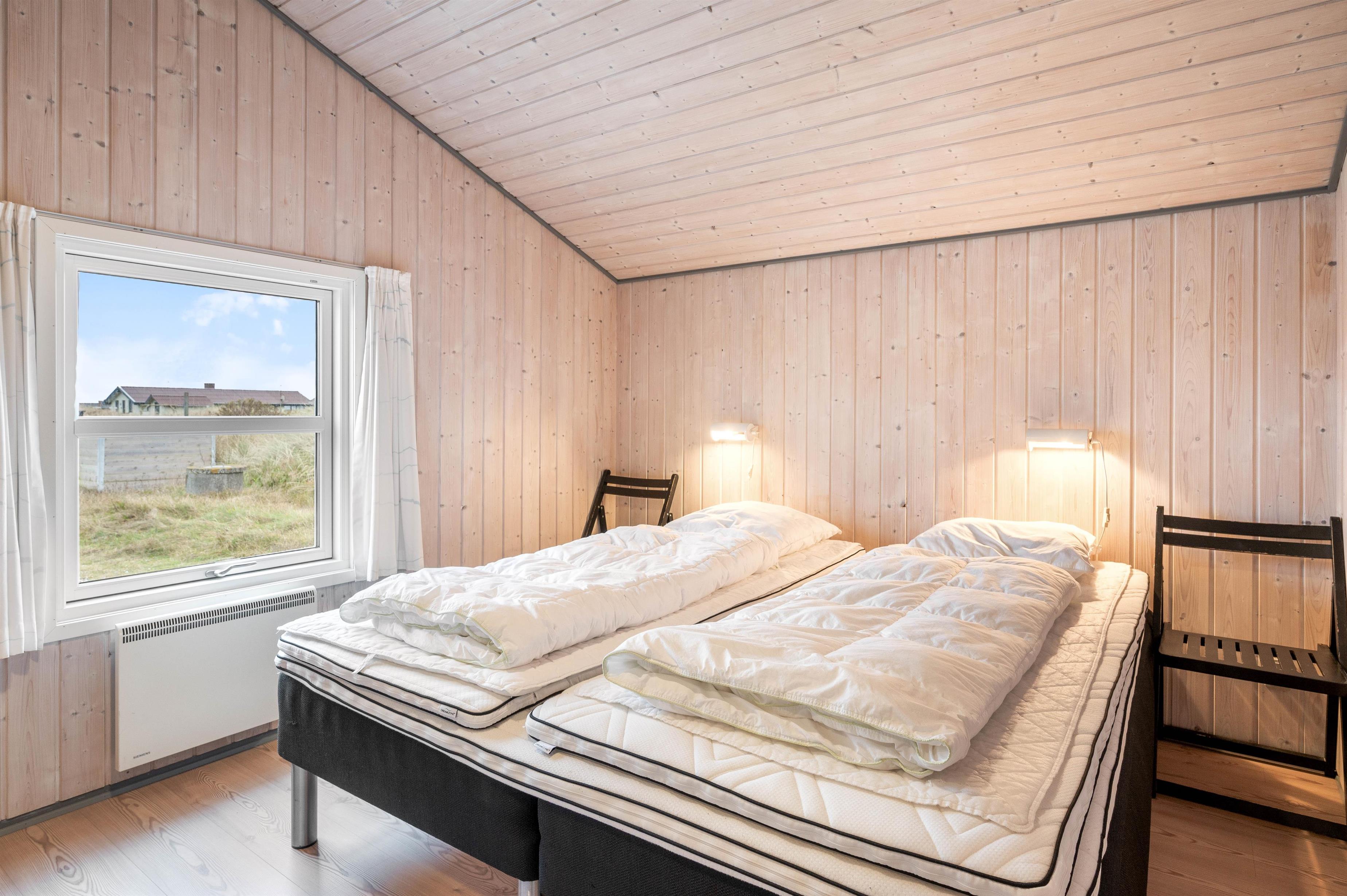 Her får I et rigtigt dejligt sommerhus med en hyggelig indretning og gode lyse rum. Feriehuset kan har plads til seks gæster, der kan fordele sig på de fire soveværelser. Alle værelserne er indrettet med gode senge, så I sikres en god nattesøvn. I det nordligste hjørne finder I et badeværelse, hvorfra I har adgang til saunaen. Her kan I for alvor få koblet af og få musklerne varmet igennem.