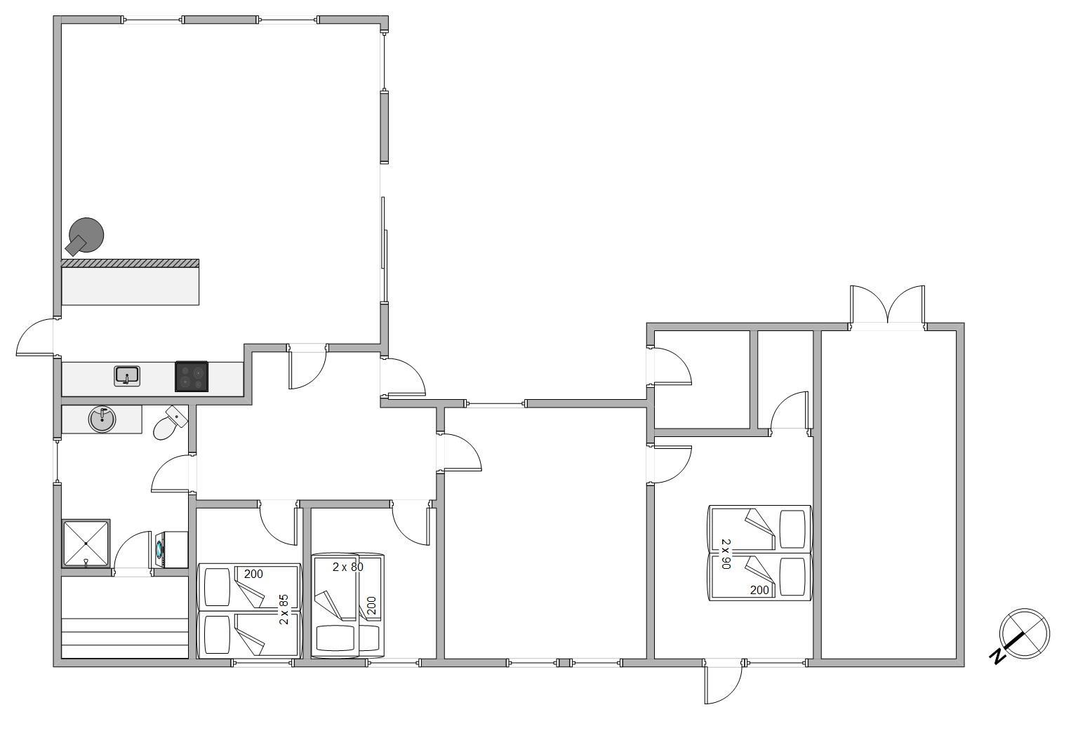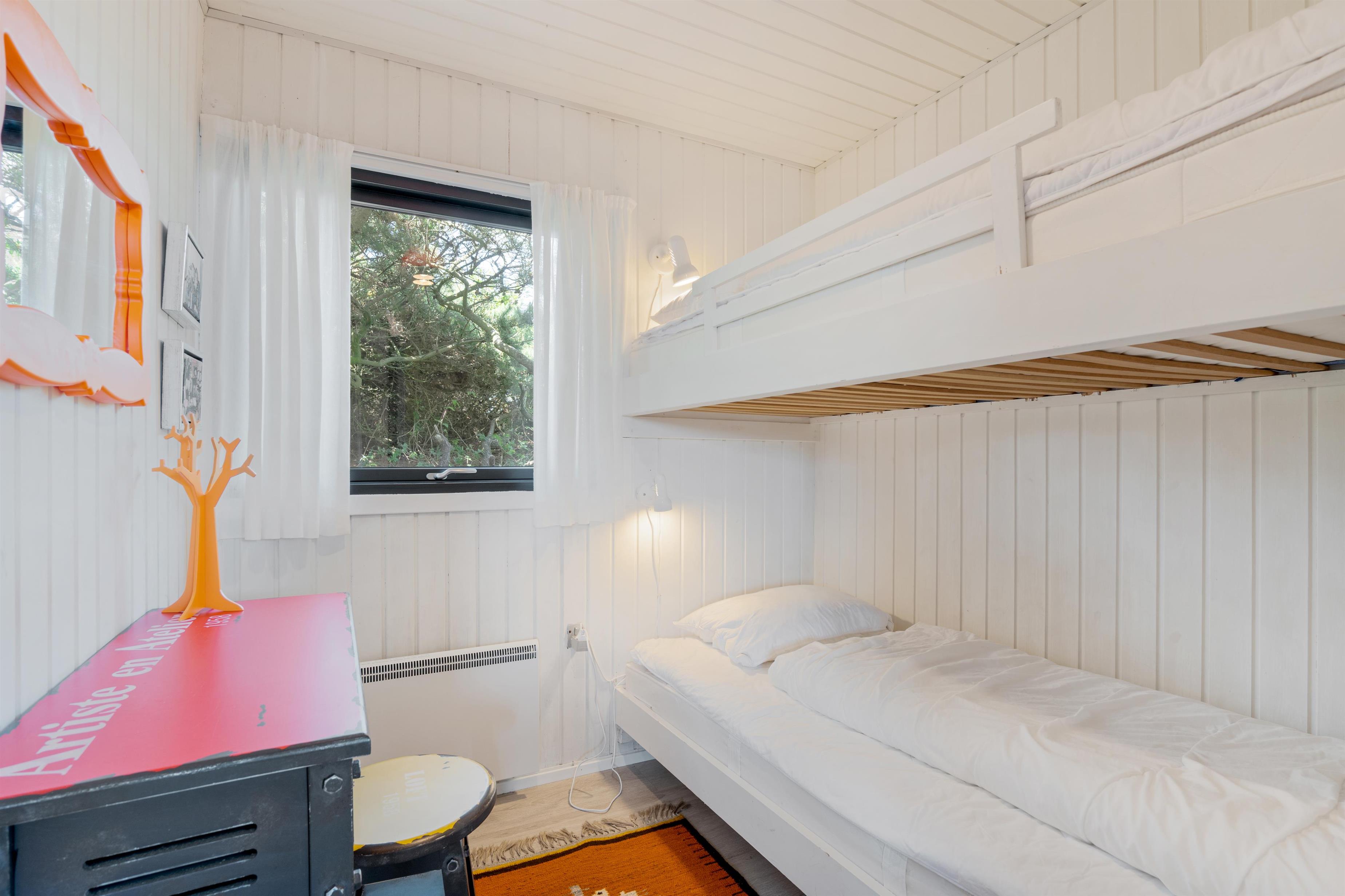 Sommerhuset har 3 gode soverum. To med dobbeltsenge og et med 2 etagesenge + børneseng. Her er desuden et ekstra opholdsrum med TV, hvor der kan spilles computerspil og ses DVD.