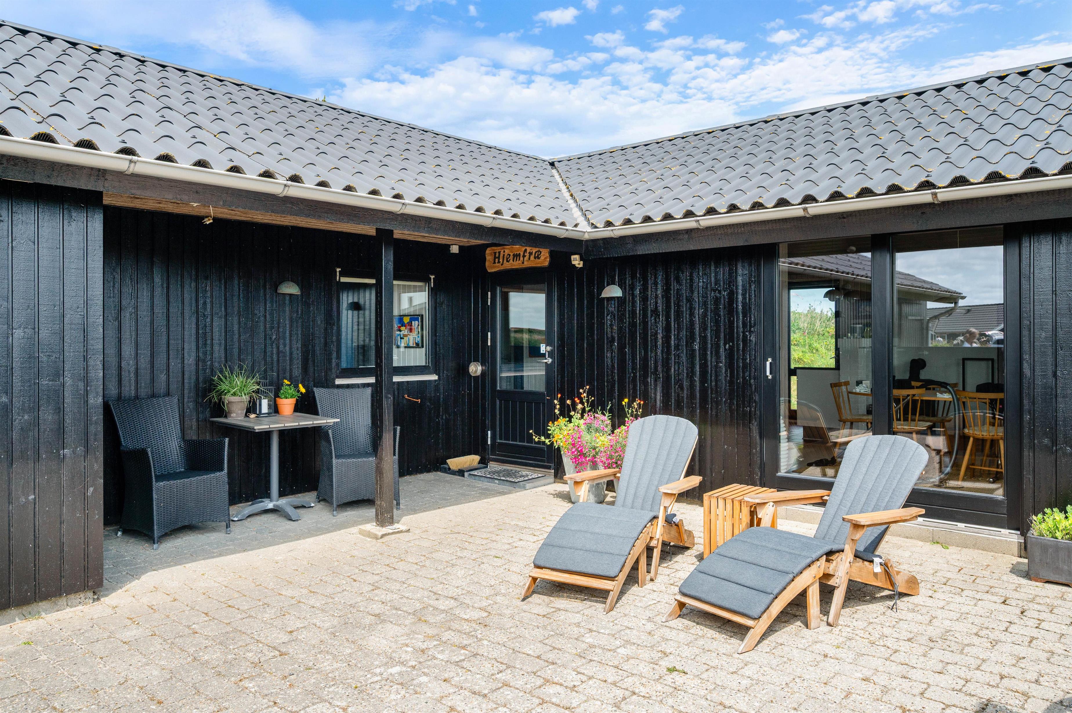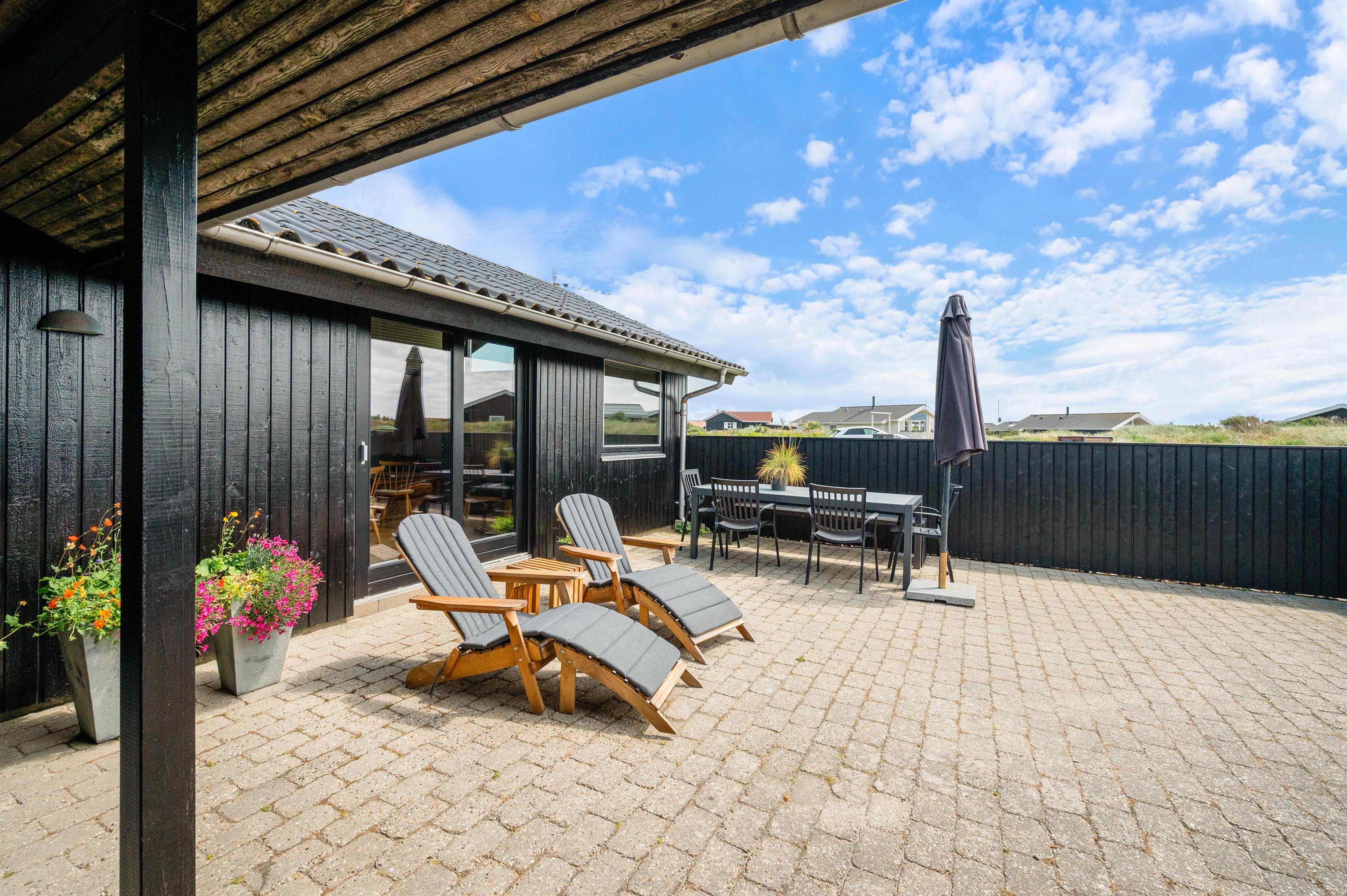 Her er det perfekte sommerhus tæt på stranden til familien med småbørn og hund. Feriehuset har en stor lukket solgård med komfortable havemøbler, grill og gode legeredskaber til de mindste. Der hører desuden en garage til dette veludstyrede feriehus.