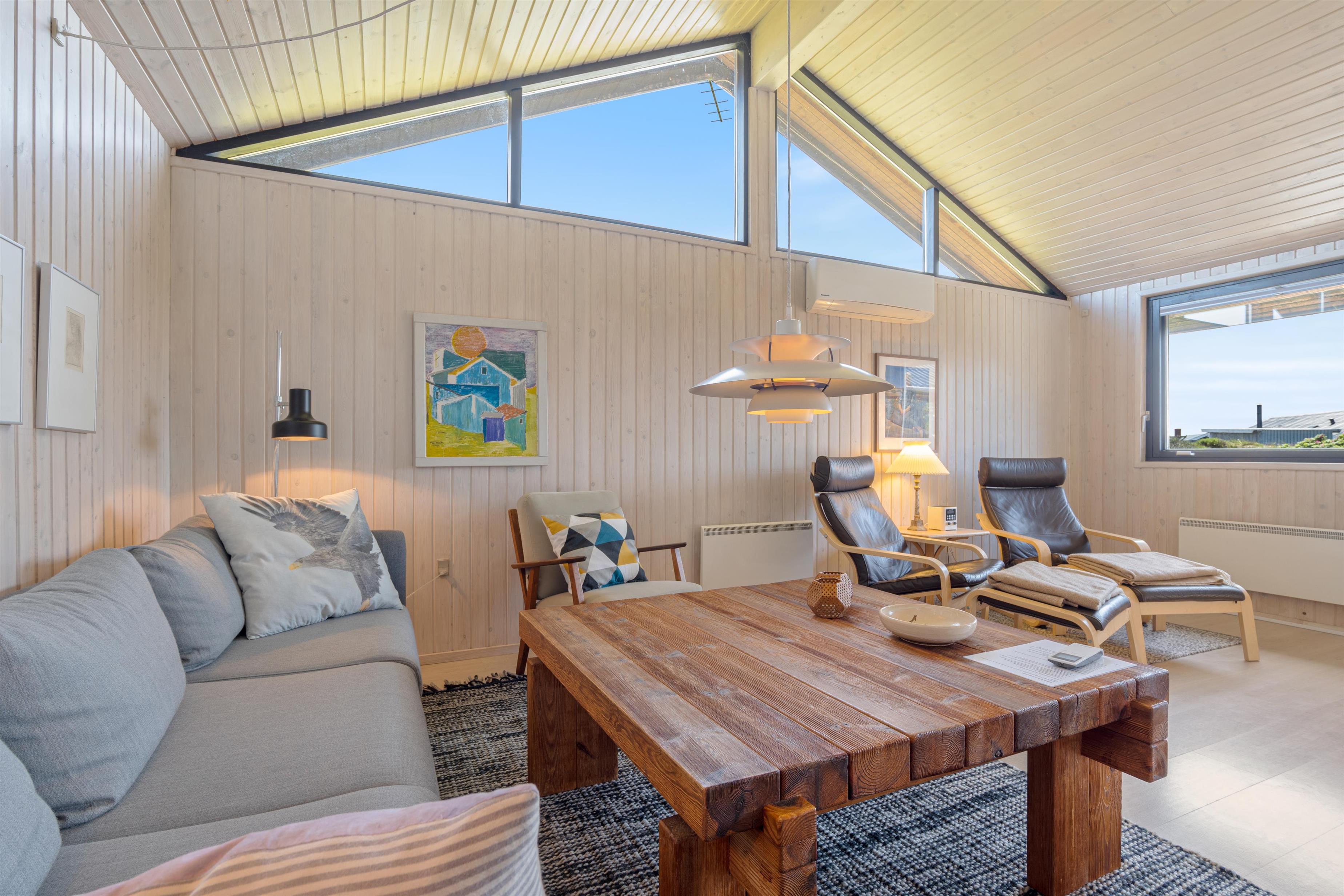 Fra hele sommerhuset har man udsigten til den storslåede natur i Bjerregaard, hvor der kun er få minutters gang til havet med den skønne badestrand, som indbyder til hyggelige stunder med familien på en varm sommerdag. Det brusende Vesterhav er dog et besøg værd året rundt, så hvis vejret ikke viser sig fra den bedste side, kan det alligevel klart anbefales at gå en tur til vandet.