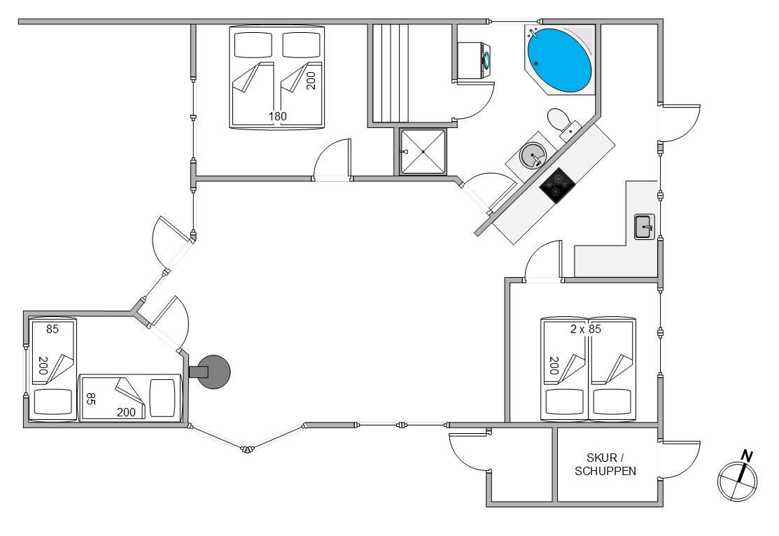 Huset er til 6 personer – fordelt på 3 dejlige soverum, hvoraf 2 værelser med dobbeltsenge og 1 værelser er med 2 enkeltsenge.