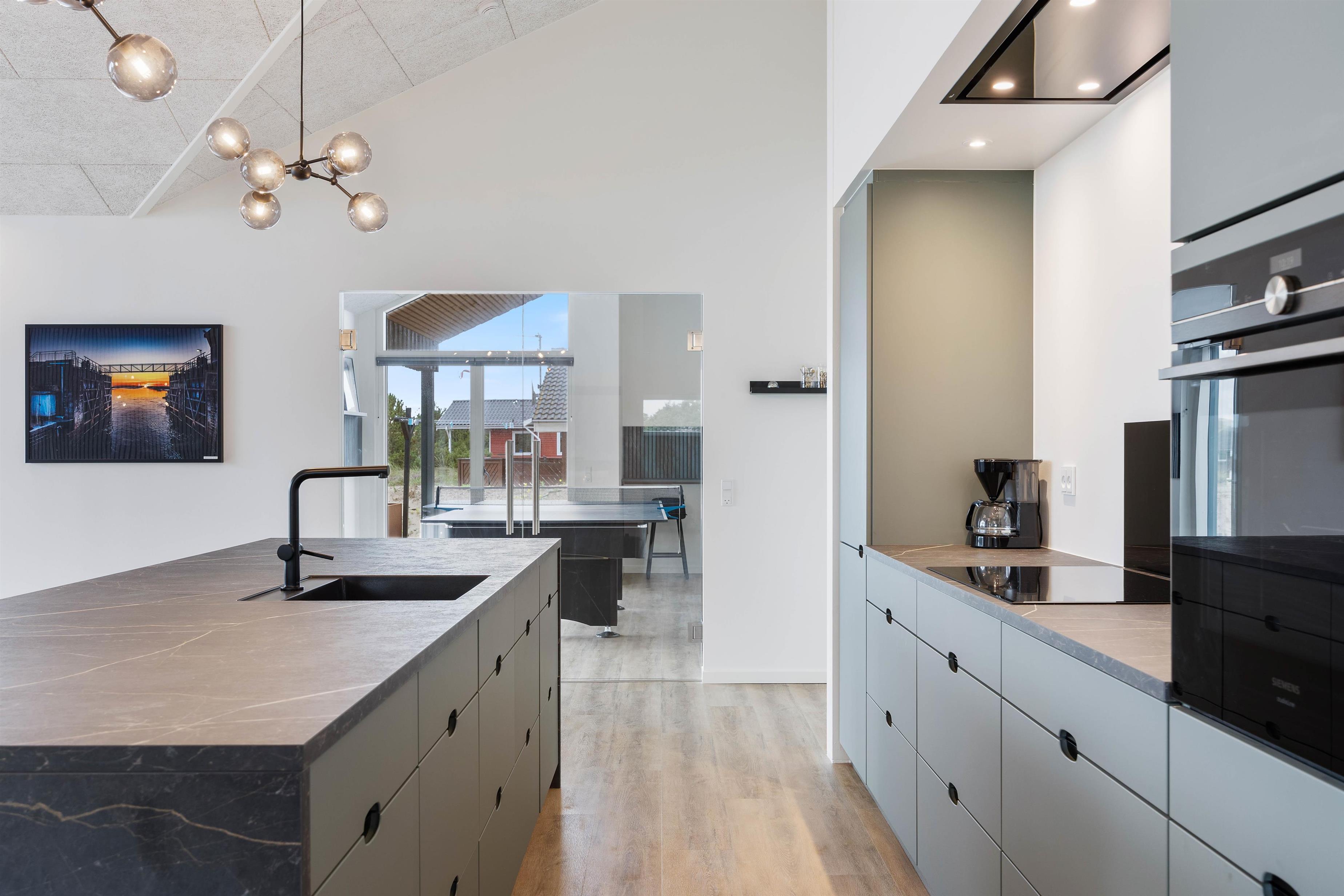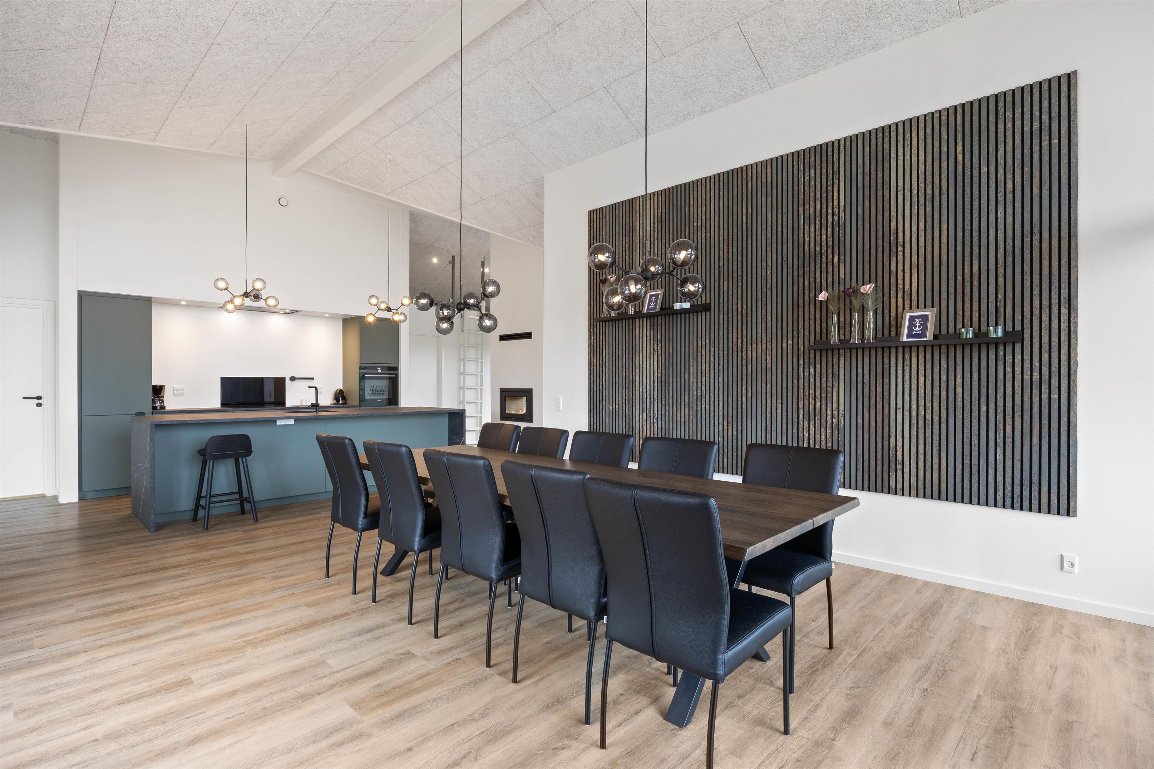 De store vinduespartier i køkkenalrummet giver et fantastisk lysindfald, hvilket skaber en lys og indbydende atmosfære, hvori I hurtigt vil føle jer godt tilpasse.