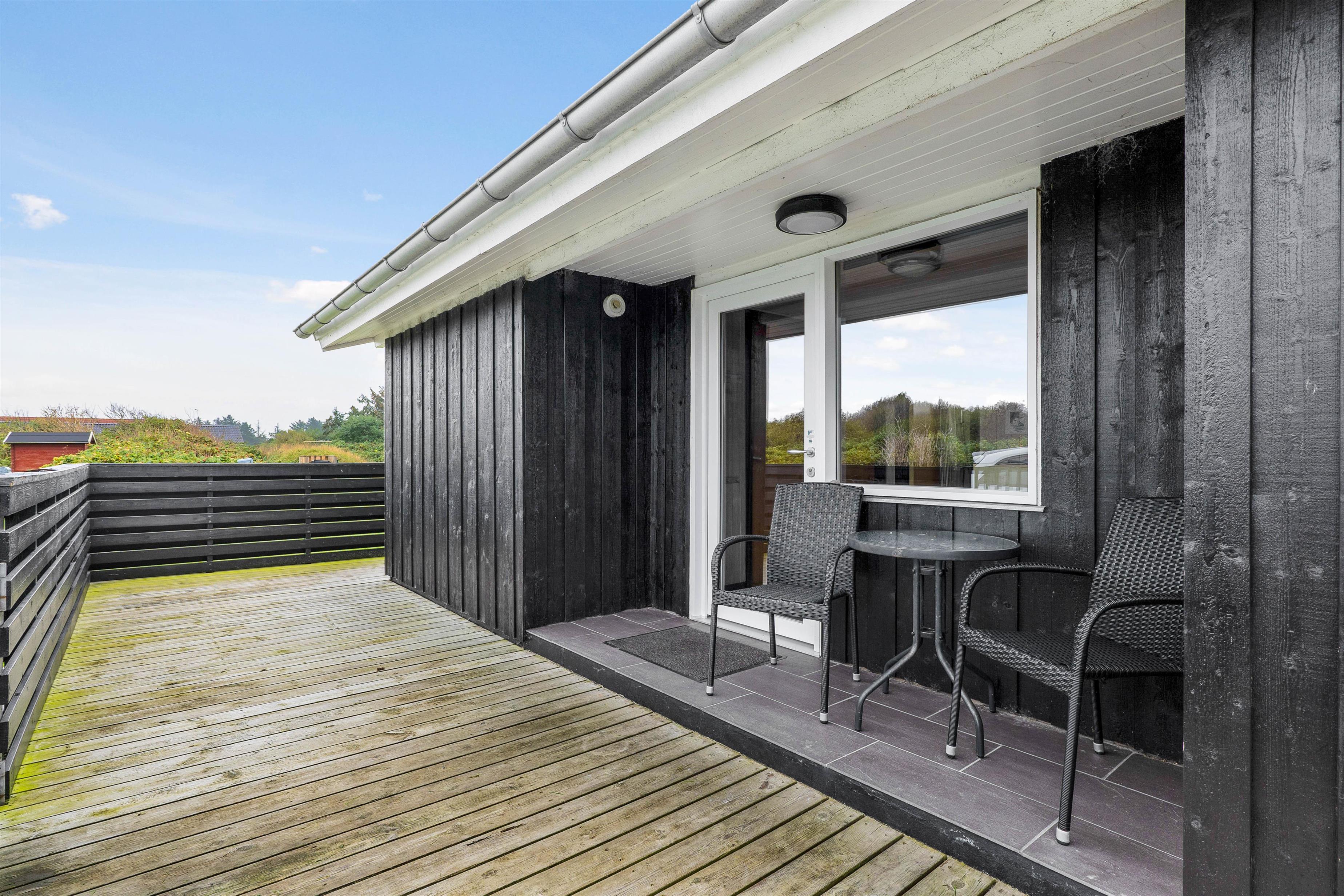 Sommerhuset har en stor lukket terrasse, som er indrettet med havemøbler, liggestole samt en grill, så I kan afslutte en god feriedag med en lækker bøf og et køligt glas vin. På den store naturgrund er der god tumleplads til børnene. Ikke langt fra sommerhuset ligger den lokale købmand og ligeledes en god legeplads.