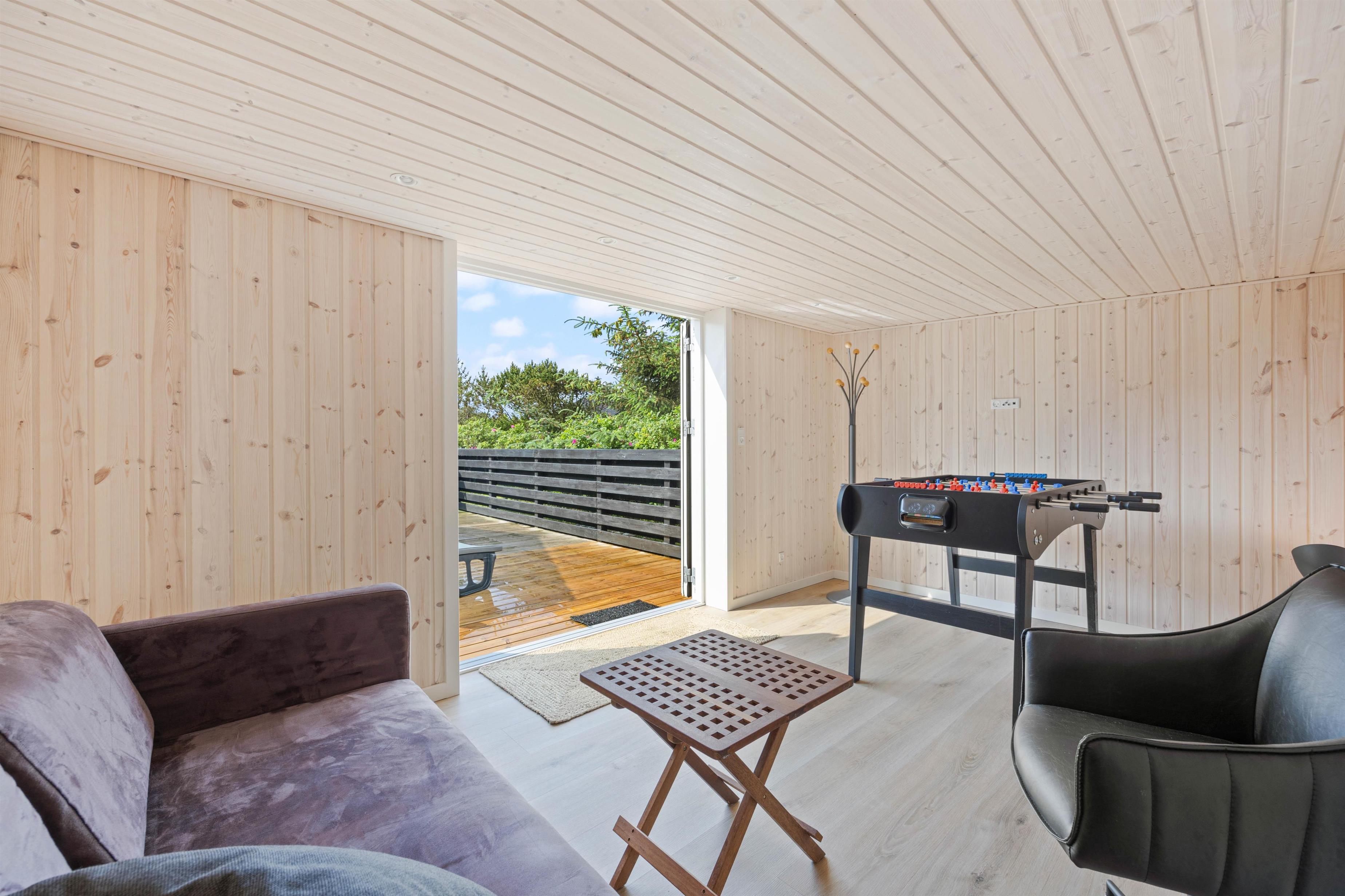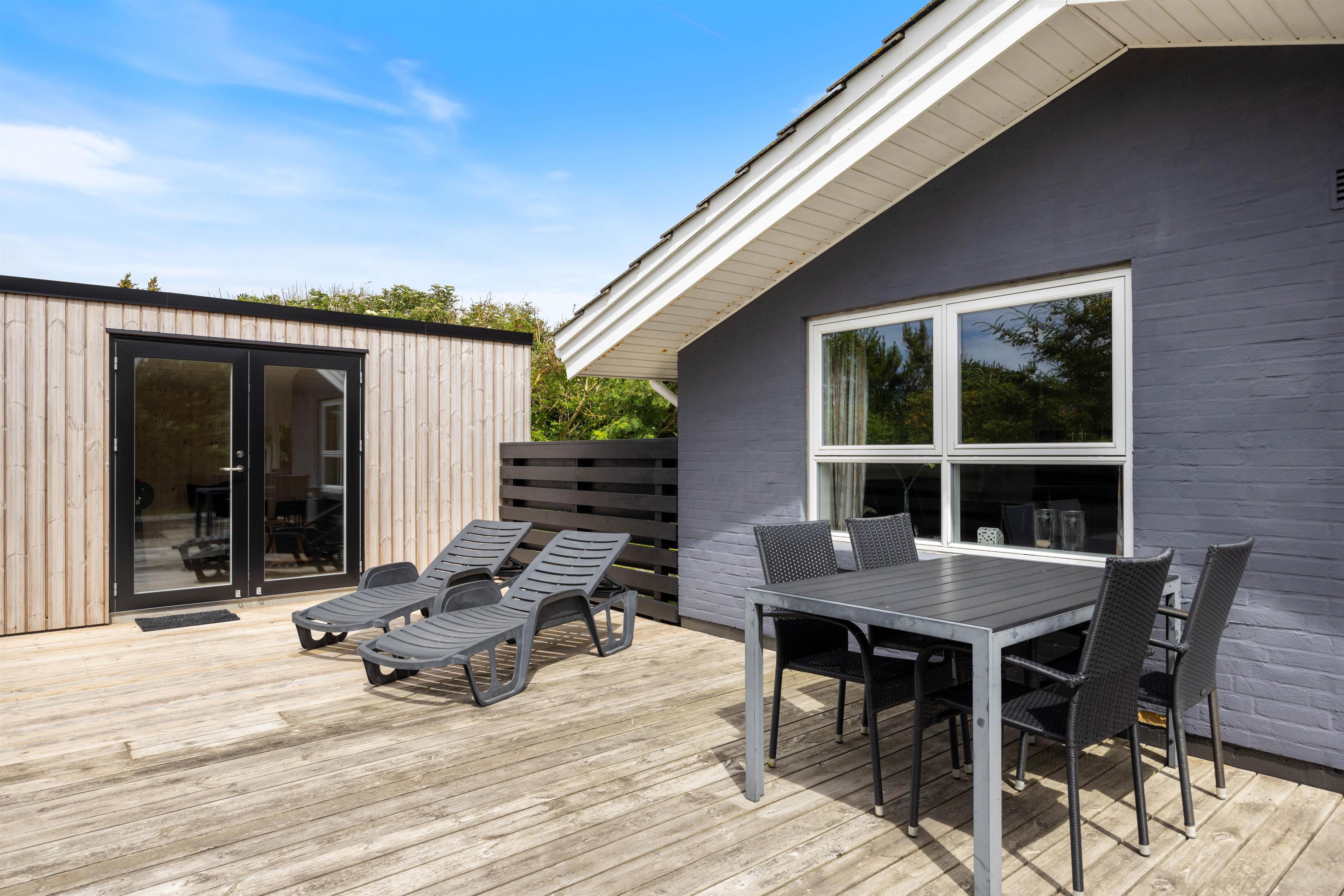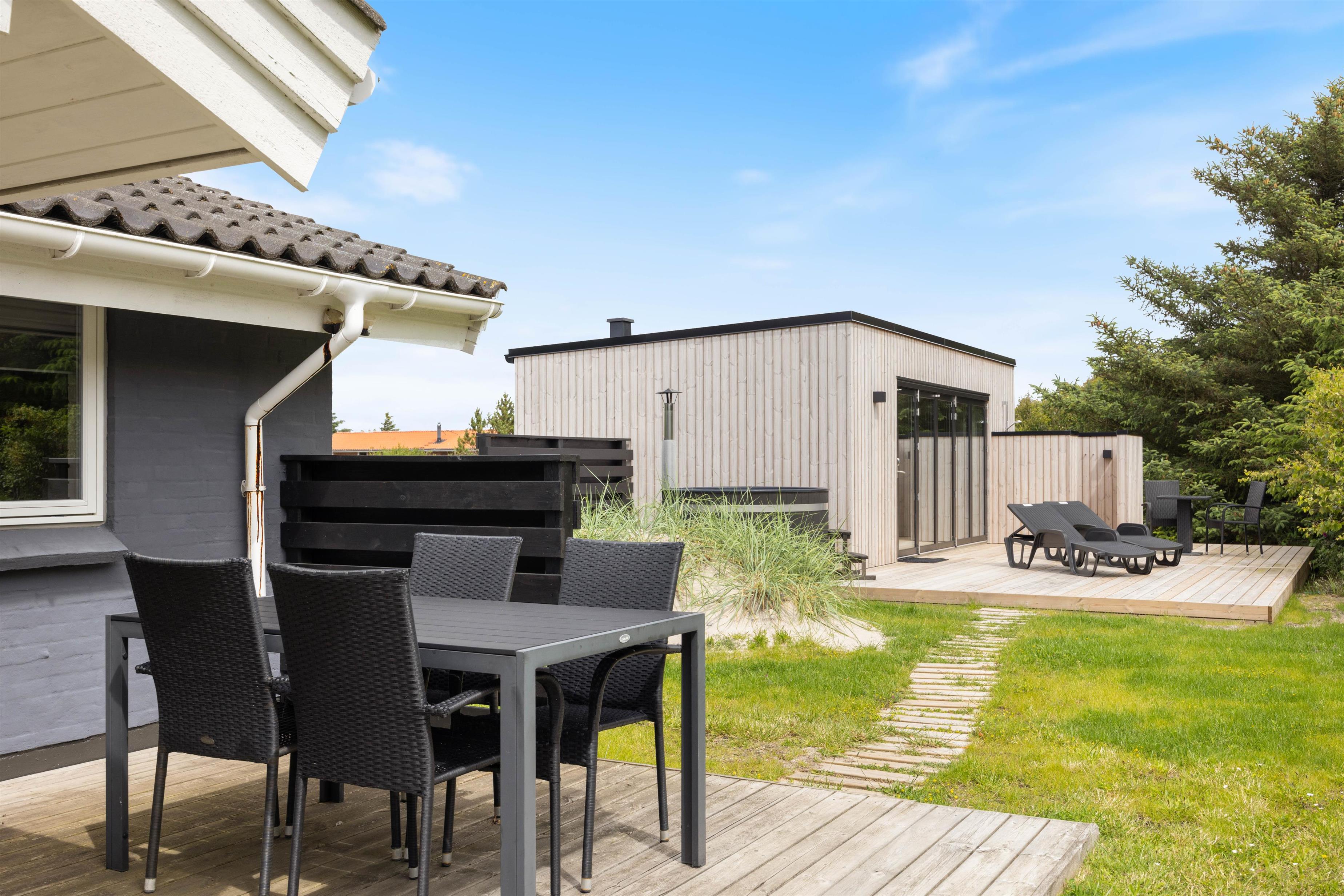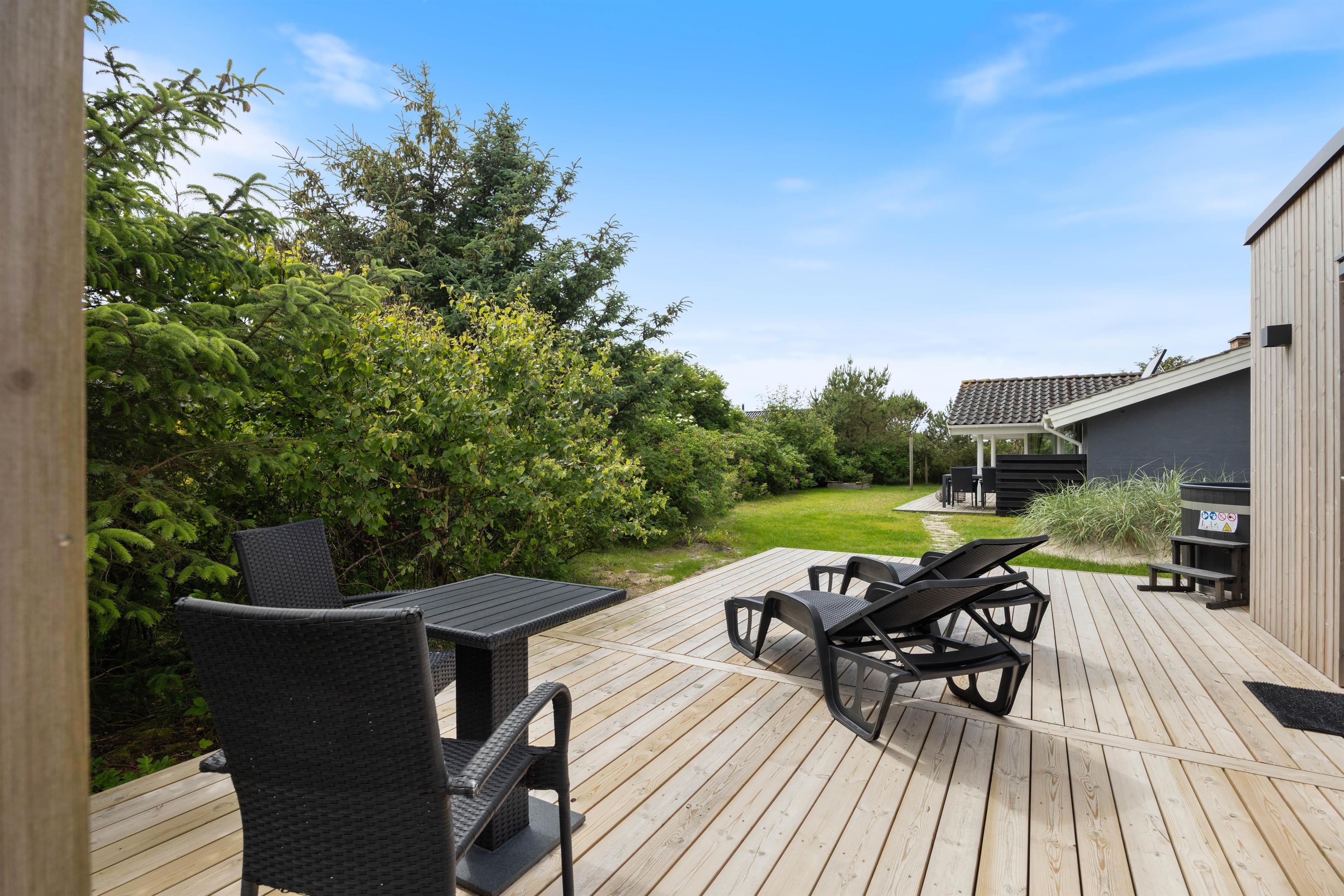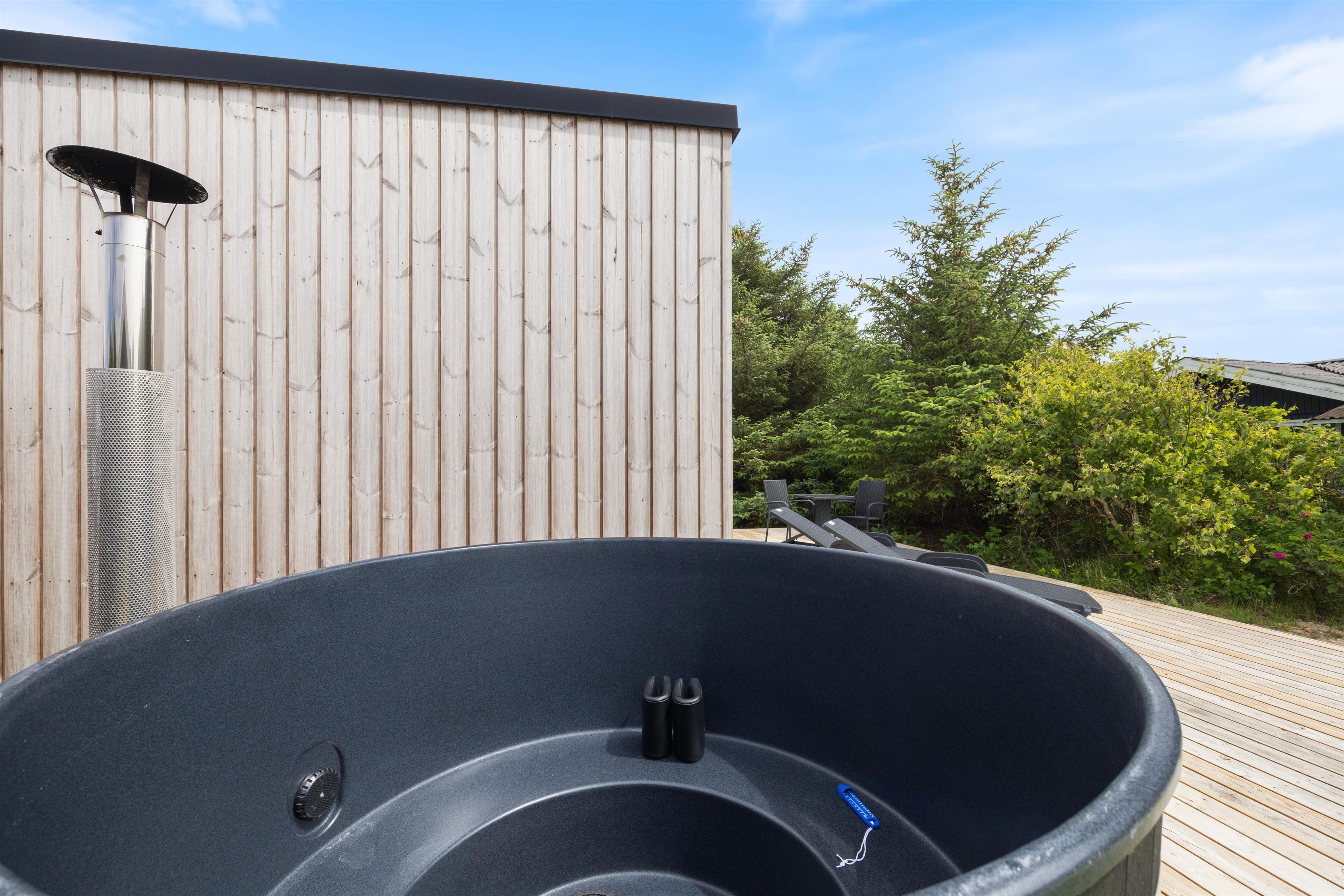 Et af sommerhusets højdepunkter er vildmarksbadet på den skønne terrasse, der også har flere gode lækroge til hyggelige stunder. Fra sommerhuset er der kort afstand til sandstranden og Vesterhavet, der ligger 700 meter herfra.