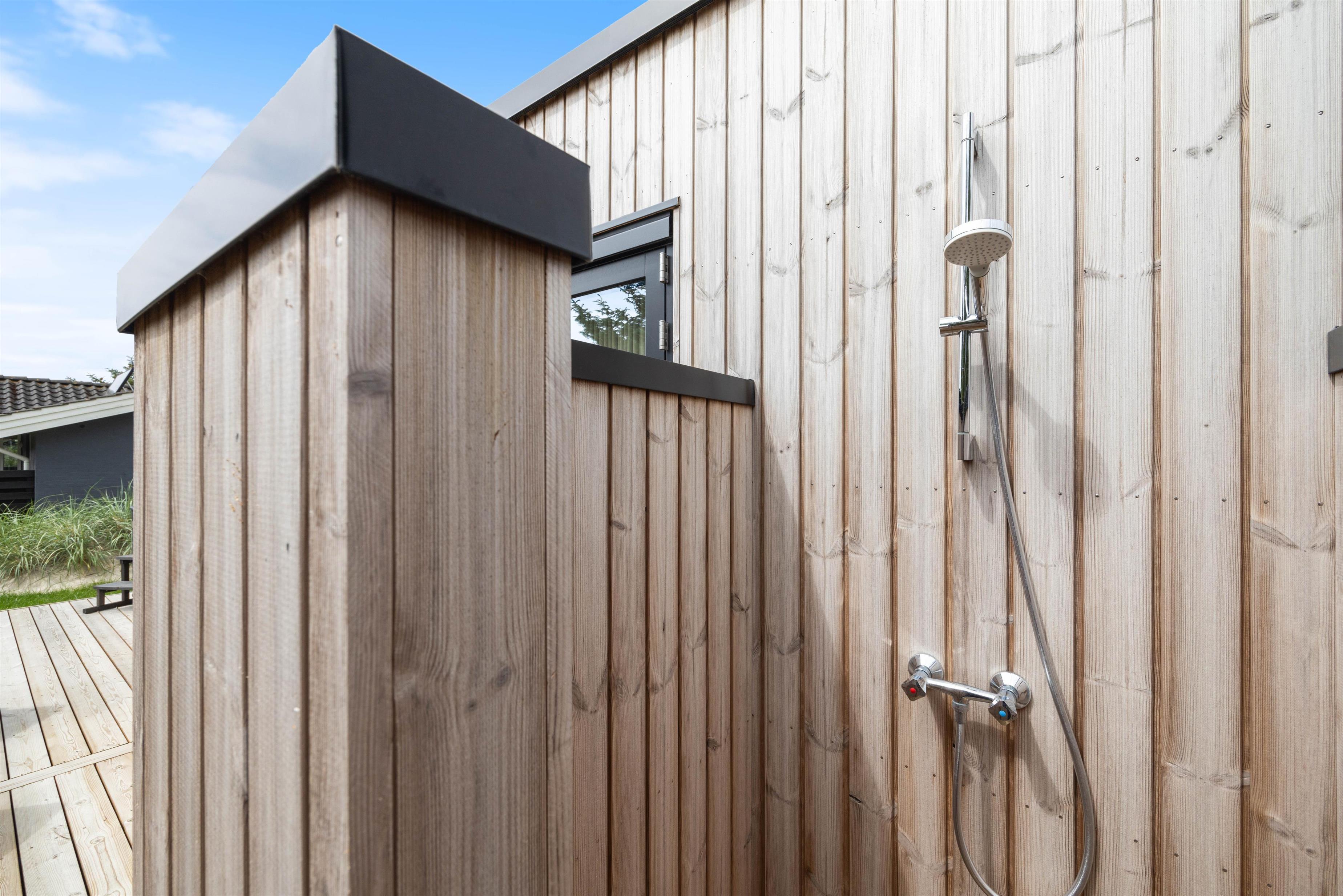 Det dejlige sommerhus ligger på en 1400 m² stor naturgrund, der giver masser af plads til afslapning og aktiviteter. På den afskærmede og velmøblerede terrasse er det altid let at finde en lækrog, hvor I kan nyde den storslåede natur, solen og den friske havluft. Børnene vil sikkert nyde sandkassen og legemulighederne på græsplænerne. En grill står til jeres rådighed til hyggelige aftener med friskgrillet kød og fisk. Et særligt højdepunkt er vildmarksbadet, hvor I kan slappe af under åben himmel. Efter en tur på stranden, kan I skylle sandet af jer under udebruseren, som er tilgængelig i de varme måneder fra april til november.