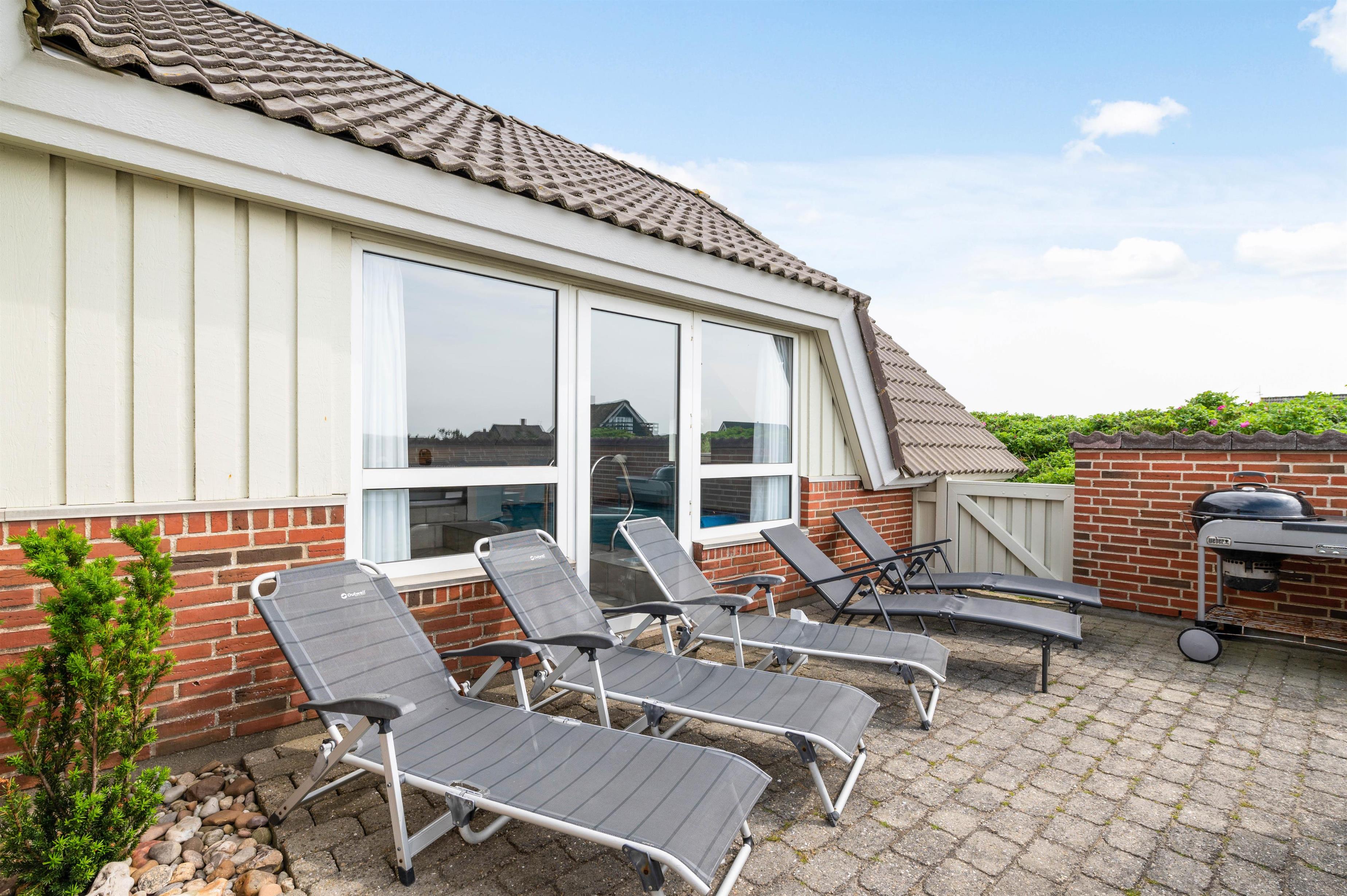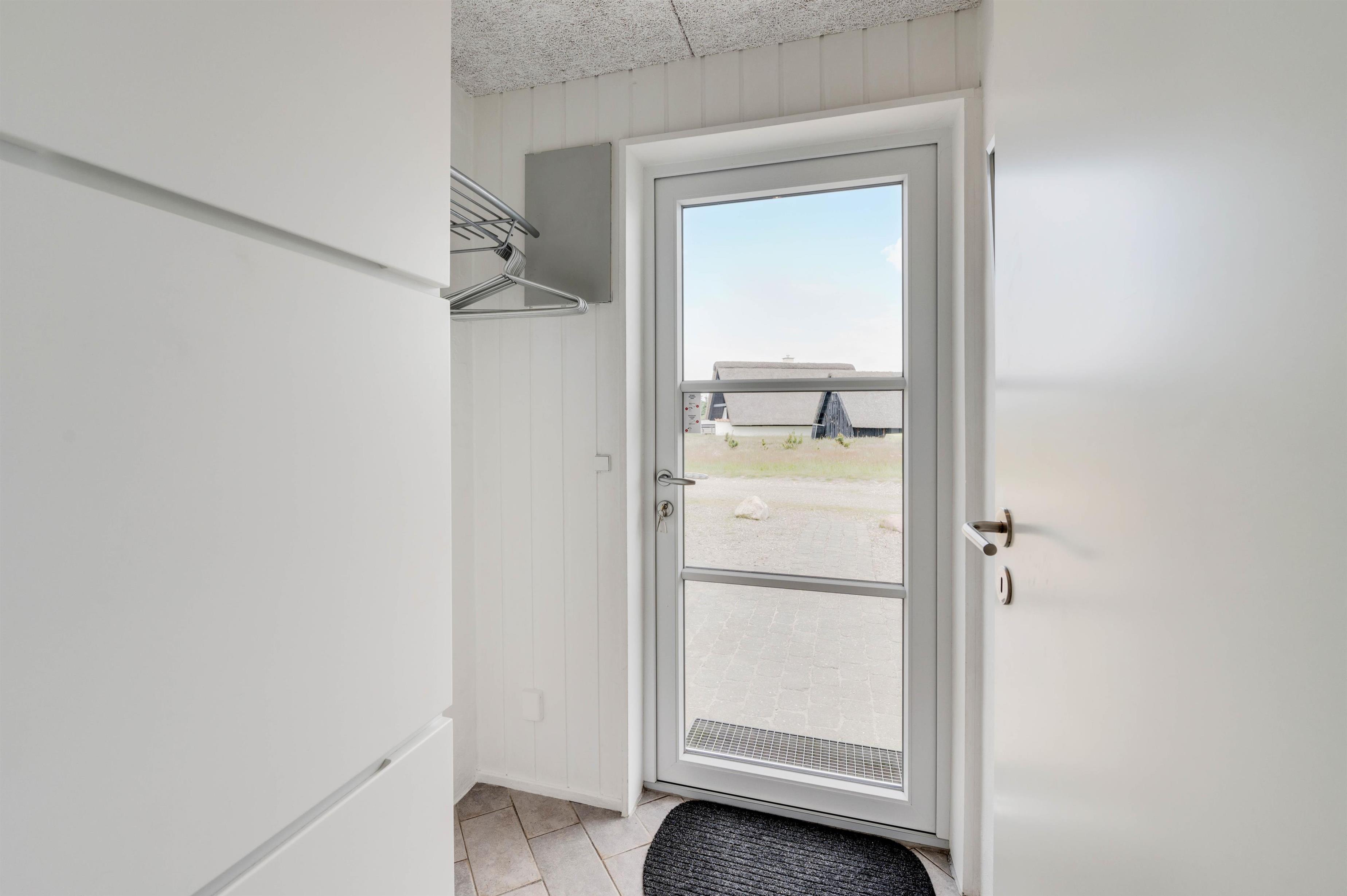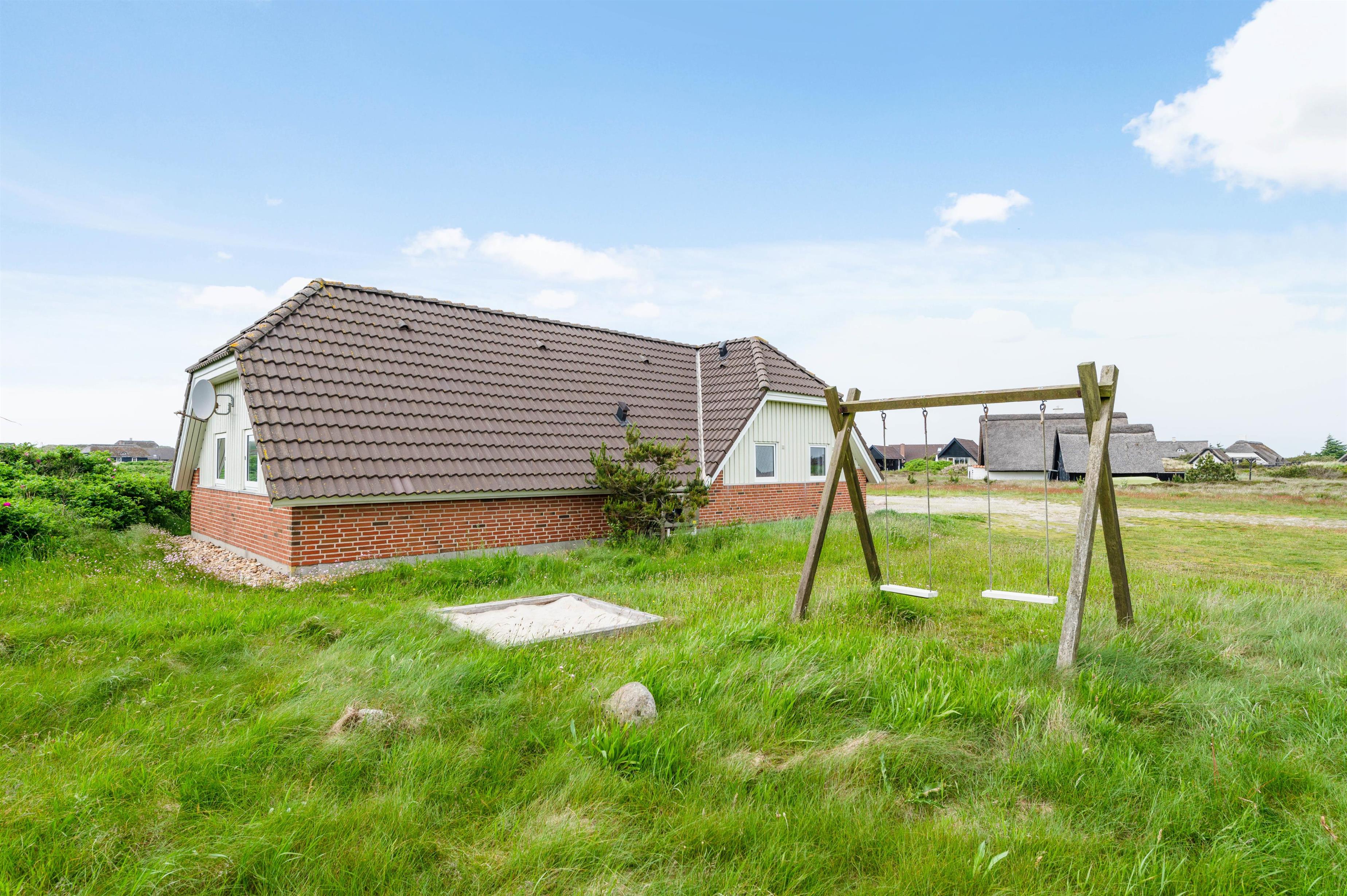 Sommerhuset ligger på en stor naturgrund kun 450 meter fra Vesterhavet. Den friske havluft kan også nydes på den sydvendte terrasse, som er lukket. Her kan hunden gå frit rundt, mens I spiser et lækkert grillmåltid i det gode vejr. Midt på dagen kan I også lægge jer til rette i liggestolene og læse en god bog.