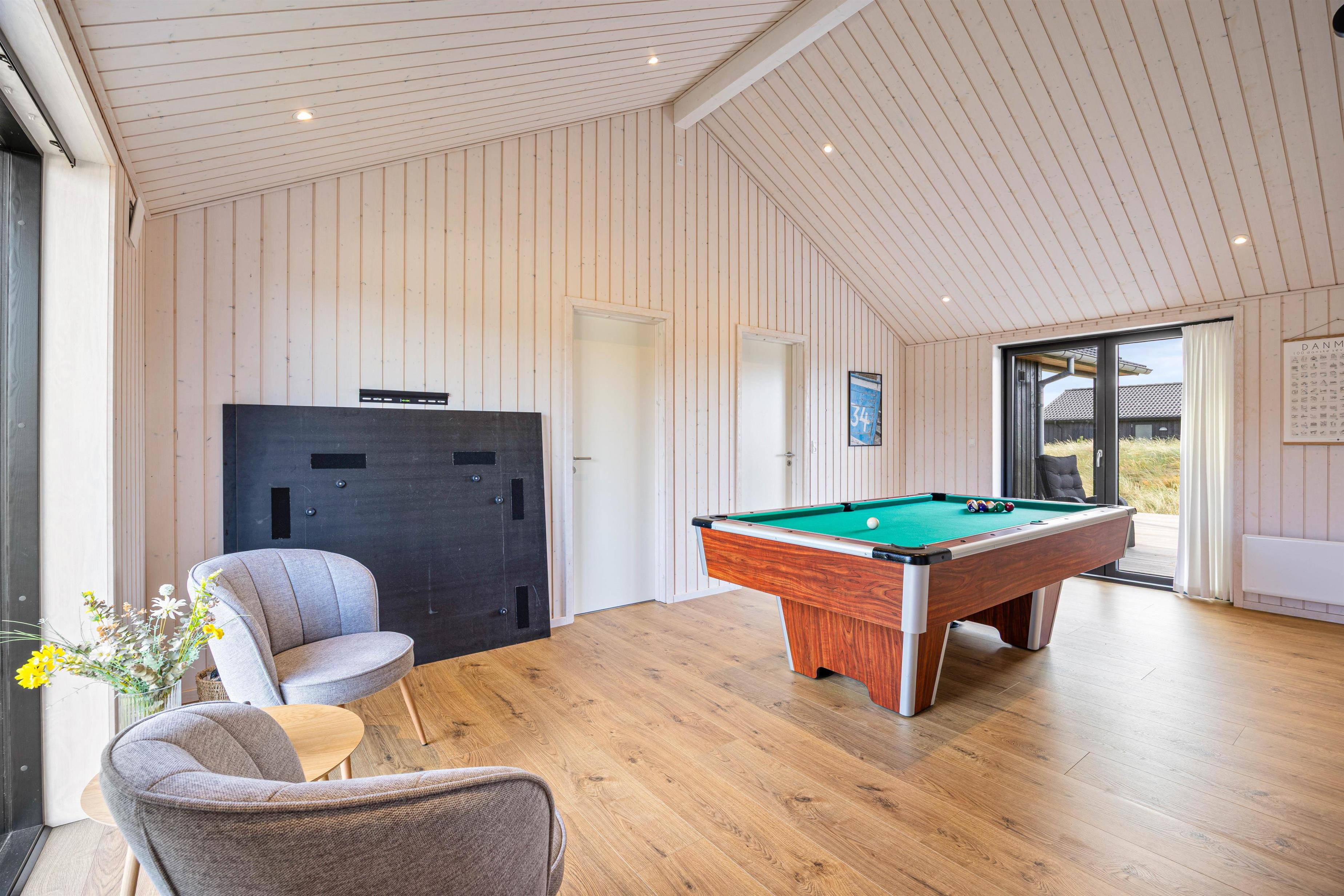 I aktivitetsrummet med billardbord kan I dyste året rundt. Der er tre soverum, to af dem med dobbeltsenge og et med to enkeltsenge, hvilket gør huset ideelt for både familier og vennegrupper. Praktisk er her to moderne badeværelser, hvoraf det ene er udstyret med en sauna. Her kan I slappe af efter en dag fyldt med aktiviteter eller en lang gåtur ved Vesterhavet. Gulvene i huset er belagt med trælaminat, hvilket giver en varm fornemmelse, mens badeværelserne har praktiske klinkegulve.