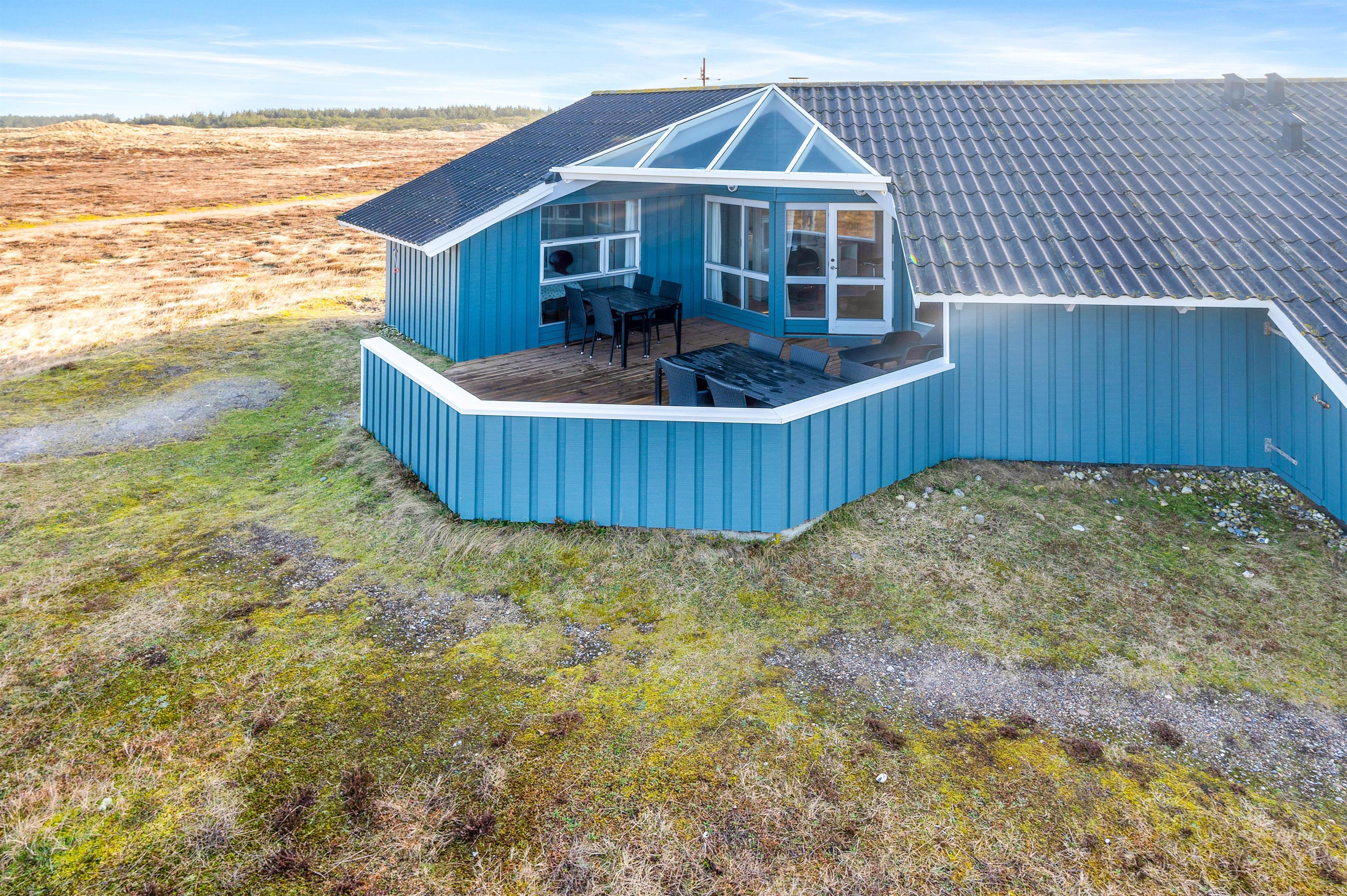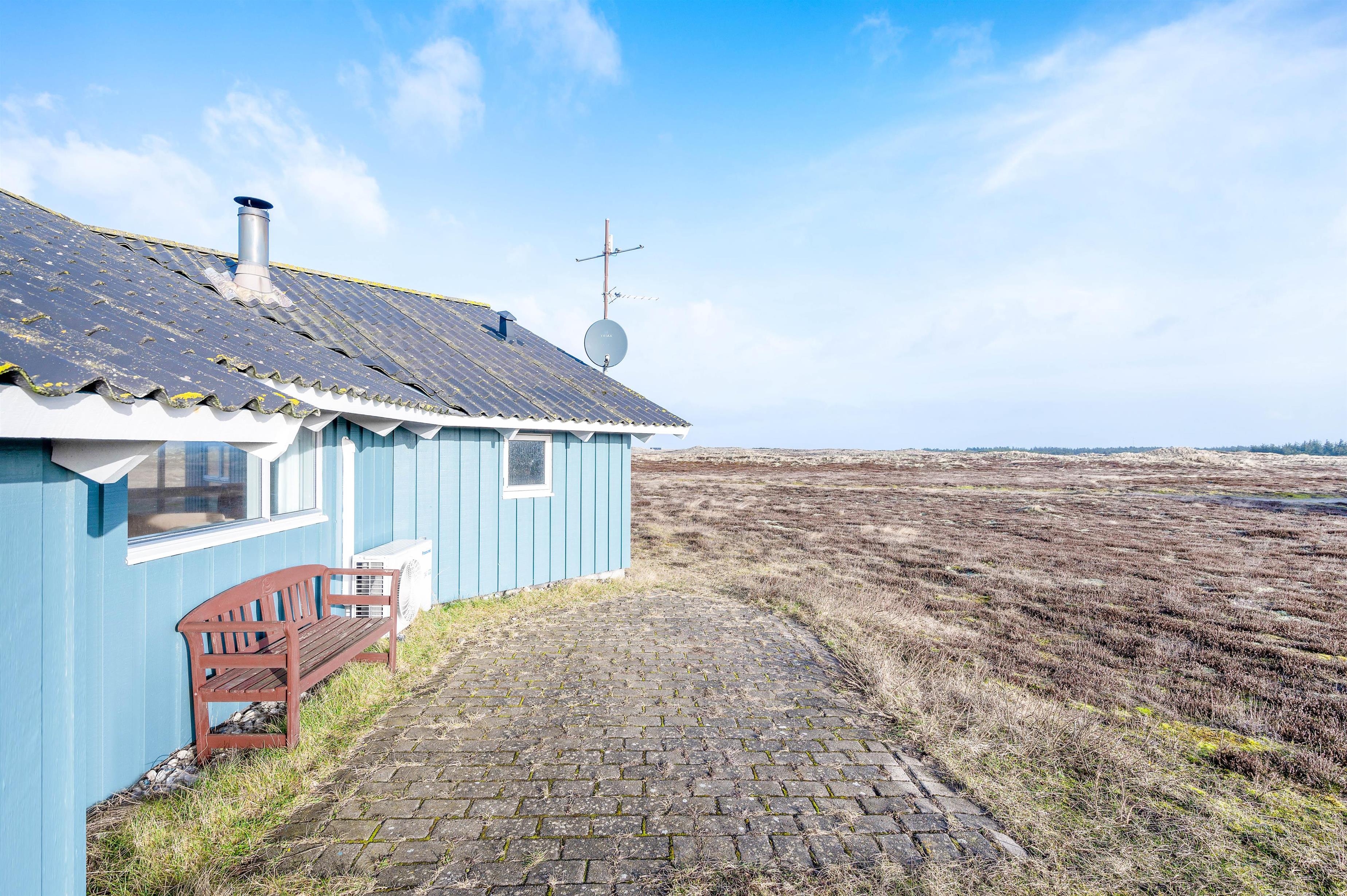 Med hede og klitter som nærmeste nabo ligger dette hyggelige sommerhus perfekt for dig, der elsker vestjysk natur og åbne vidder. Sommerhuset har en dejlig terrasse med en helt unik udsigt, og her vil du med garanti komme til at tilbringe en stor del af ferien. Feriehuset har plads til 7 feriegæster samt 1 hund, som kan nyde en afslappende ferie i de skønne omgivelser.