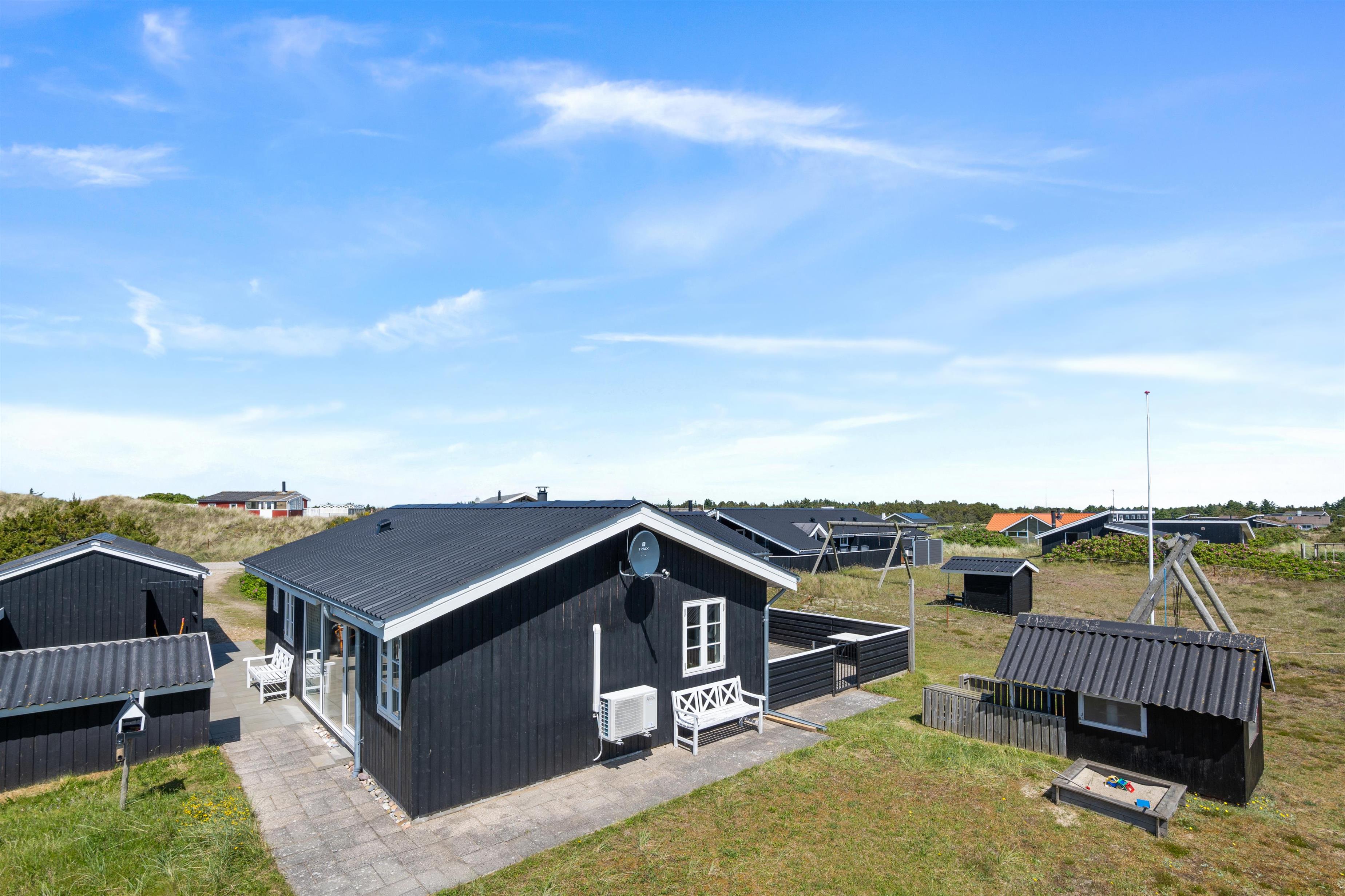 Sommerhuset på Julianevej 17 ligger i populære Bjerregård og kun 600 meter fra Vesterhavet. Området, der er forbundet af et godt stisystem, indbyder til lange gåture med familien i det smukke hede- og klitlandskab.