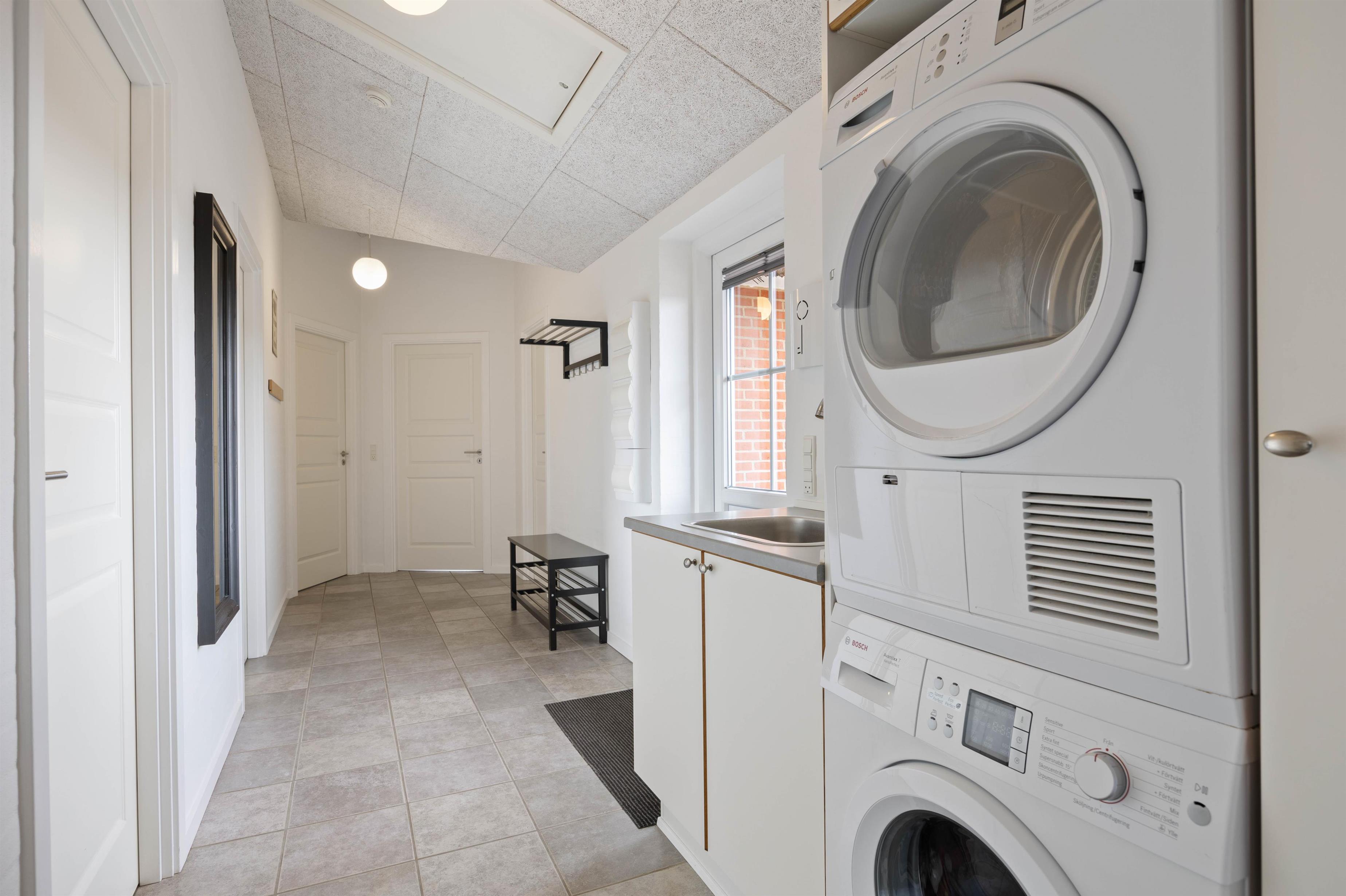 I entreen finder I vaskemaskine og tørretumbler, så her er også mulighed for at ordne lidt praktisk på ferien.