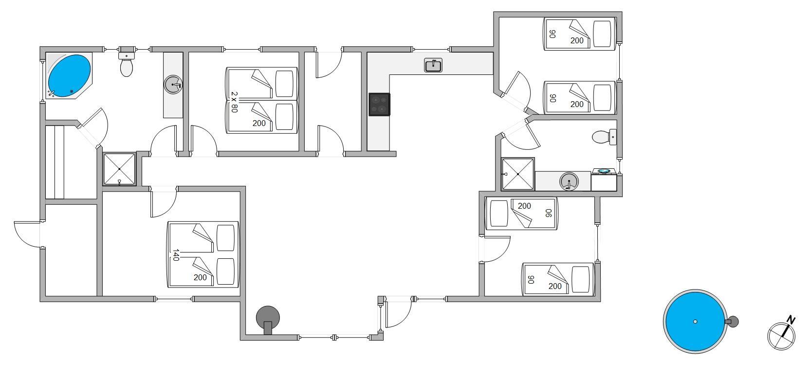 Derudover er der to gode badeværelser, hvilket især er praktisk, hvis du har en stor familie eller holder ferie med en gruppe venner. På det ene badeværelse er der også spabad og sauna, hvor du rigtig kan slappe af.