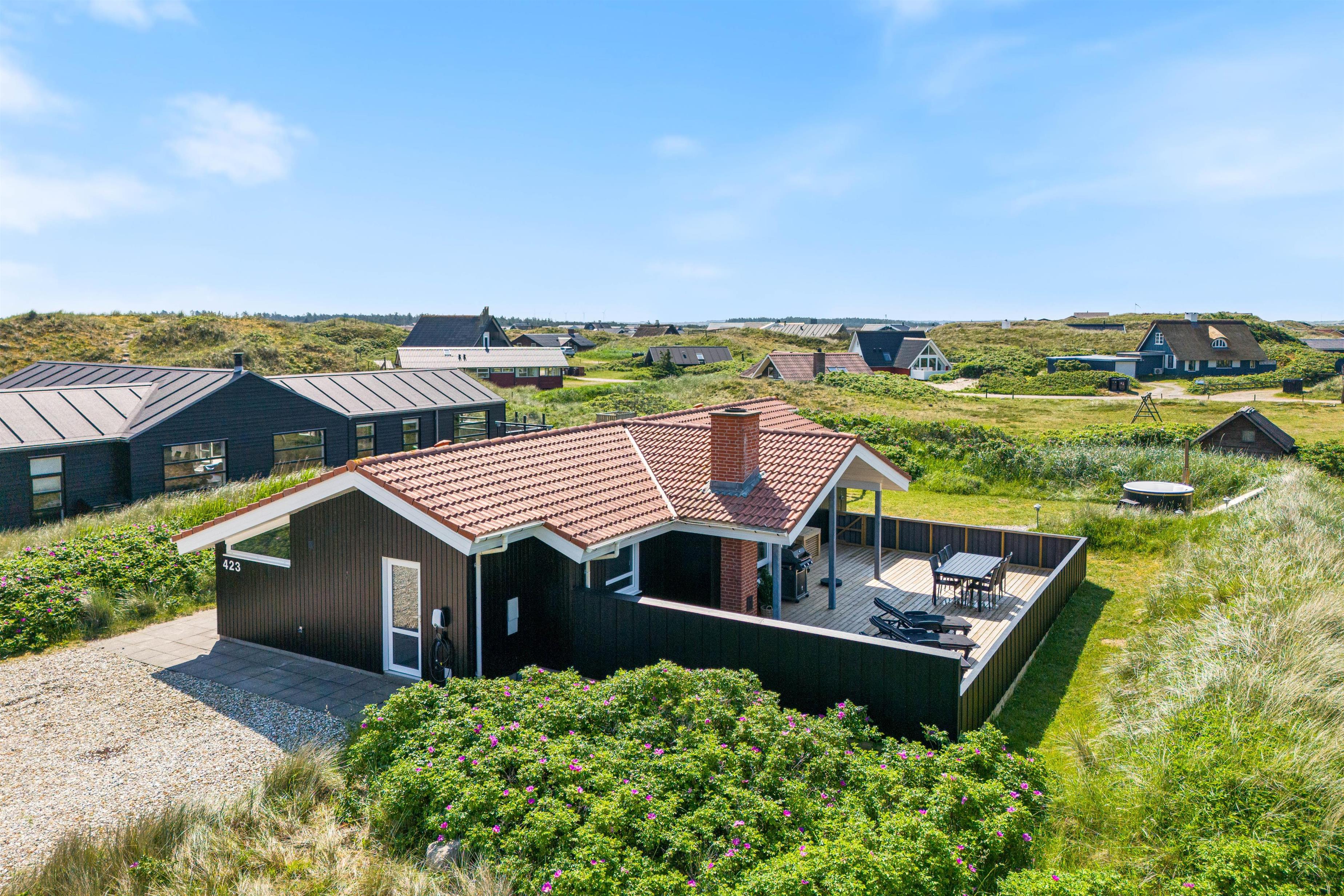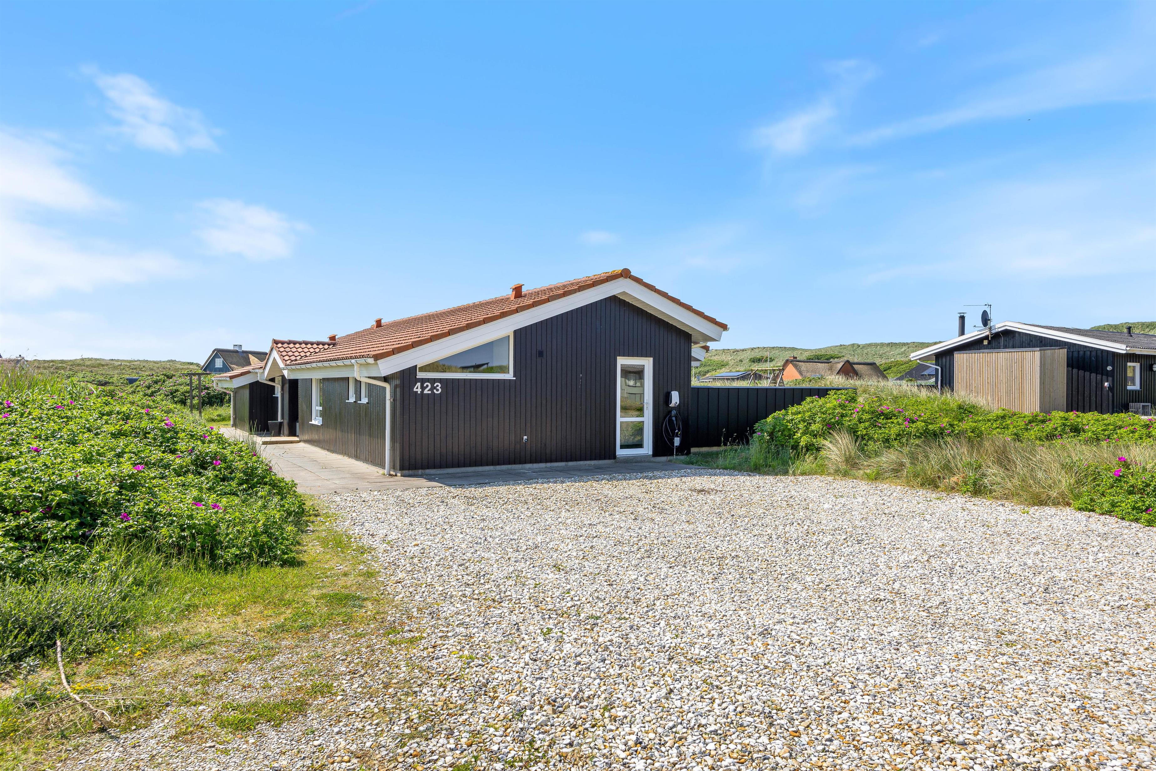 Virkelig lækkert og veludstyret feriehus på Bjerregårdsvej 423 med to badeværelser og en god indretning, så der er plads til 8 personer og 1 hund. Det har en førsteklasses beliggenhed på en naturgrund i et skønt område kun 150 meter fra Vesterhavet. Og terrassen er helt ideel til solbadning og grillhygge. Som et ekstra plus er der også et vildmarksbad ved sommerhuset.