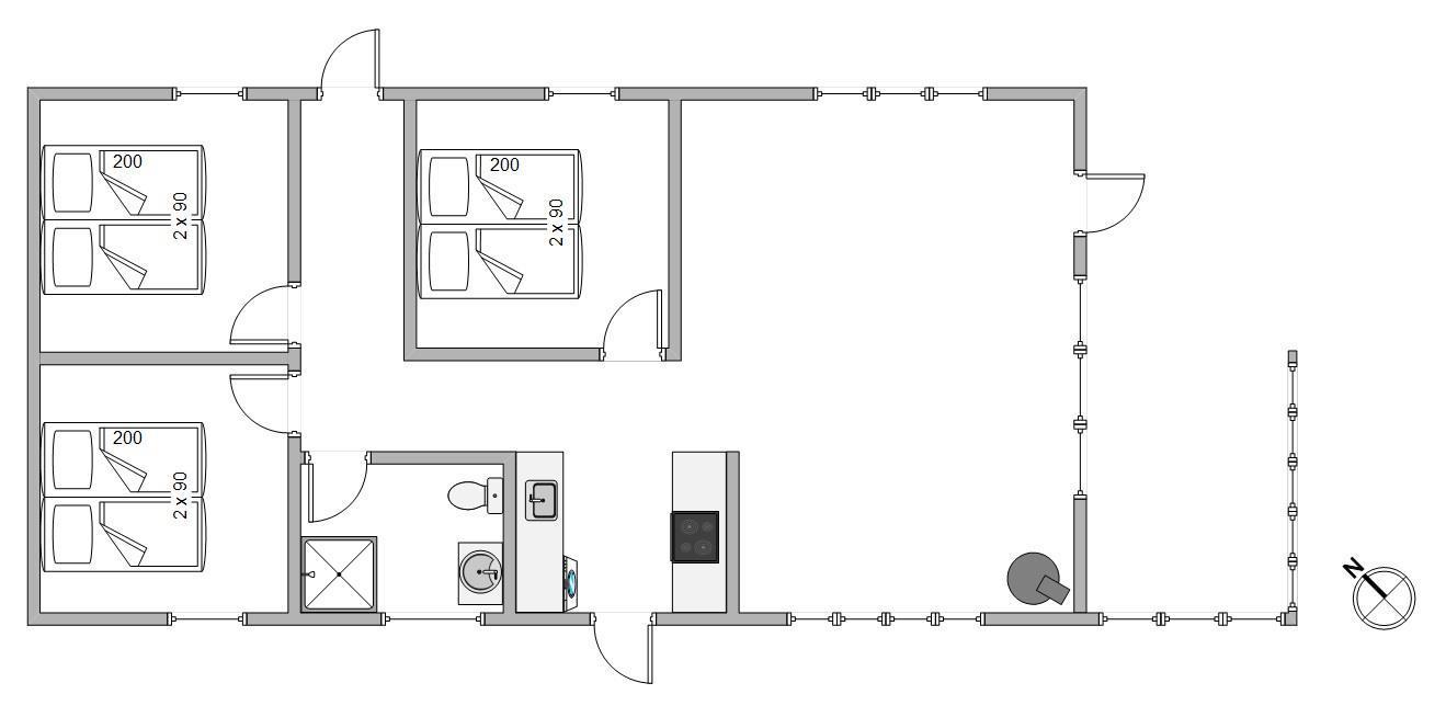 Køkkenet indeholder alt, hvad I har brug for til at frembringe lækre måltider, inklusive opvaskemaskine. Der er også vaskemaskine og en energibesparende varmepumpe i feirehuset. I badeværelset er der gulvvarme, og de 3 soveværelser indeholder hver en dobbeltseng, så 6 personer kan blive godt udhvilede i den friske vesterhavsluft.