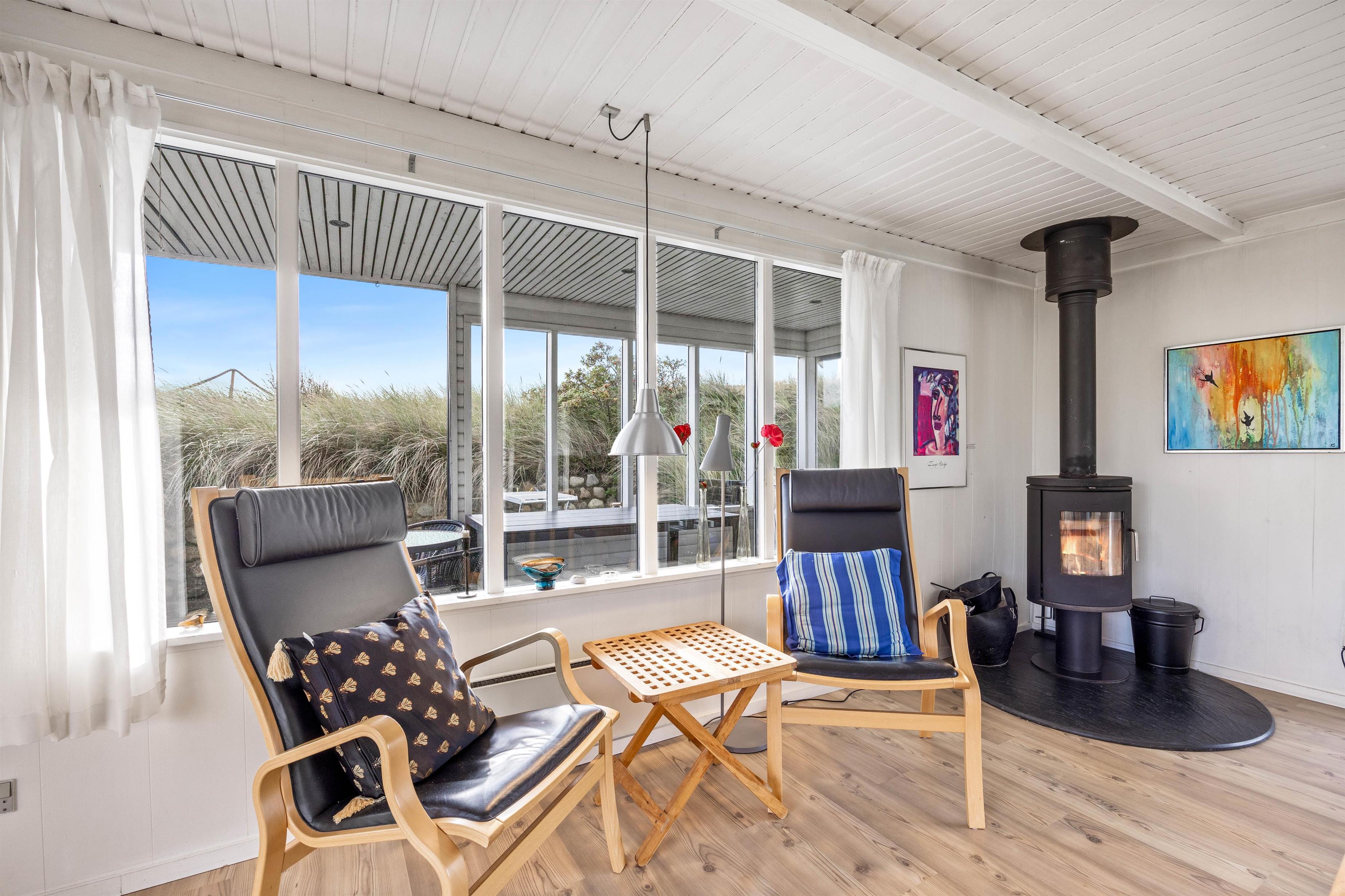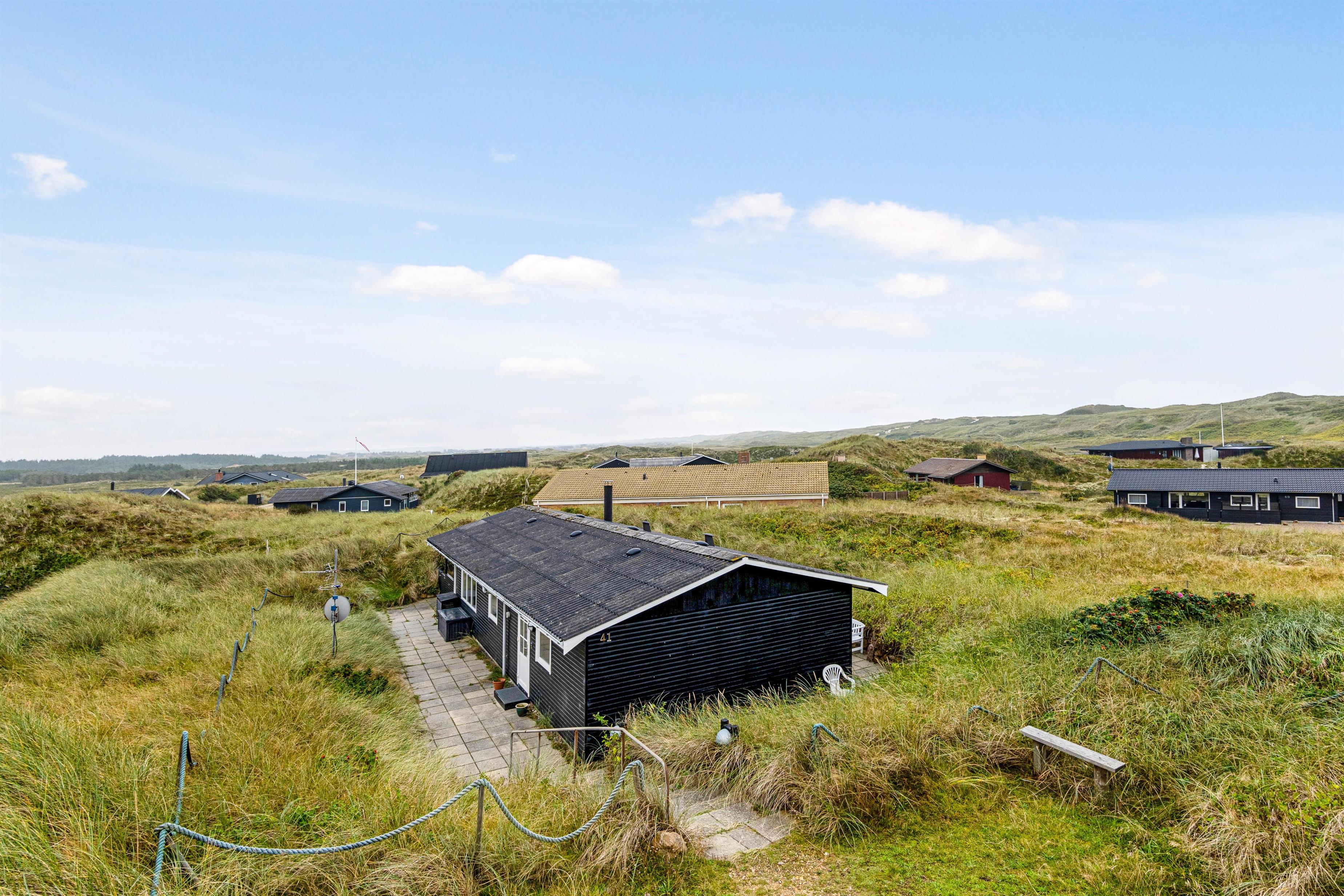 Feriehuset ligger højt placeret på en dejlig stor naturgrund med klitter og naturlig afskærmning. Her er helt ugeneret og mulighed for en skøn, fredfyldt ferie. Med base på klitgrunden er der alle muligheder for naturoplevelser, og med kun 200 m til Vesterhavet kan I tage en dukkert lige så ofte, I ønsker det. Eller gå en tur med hund eller børn, og samle sten og skaller.