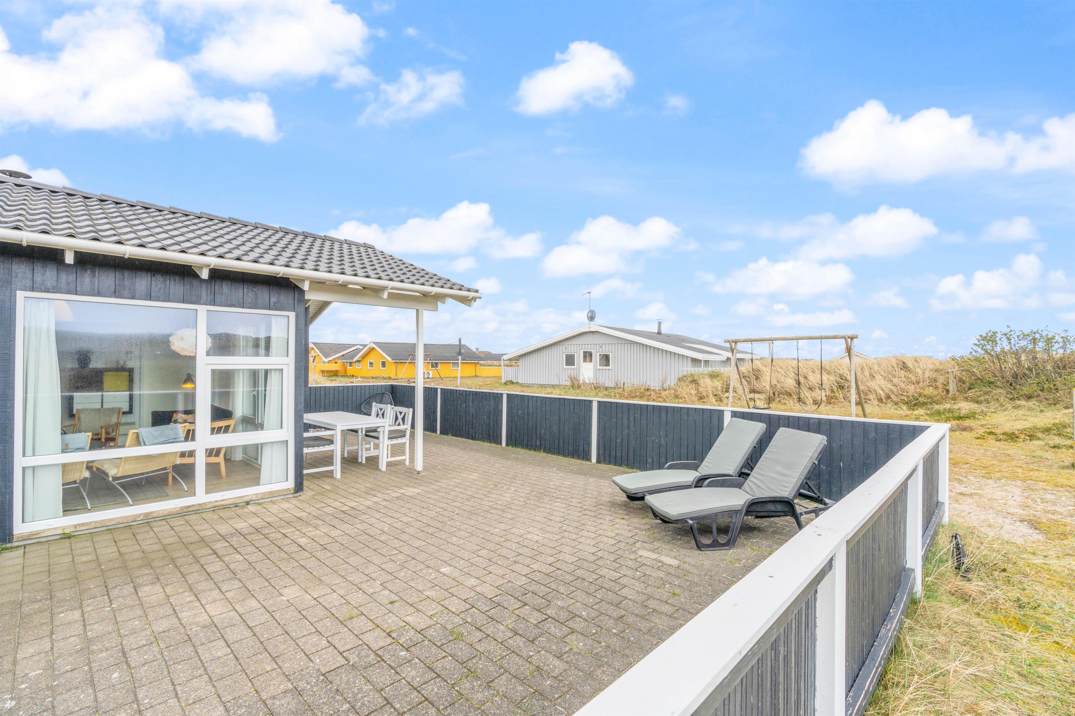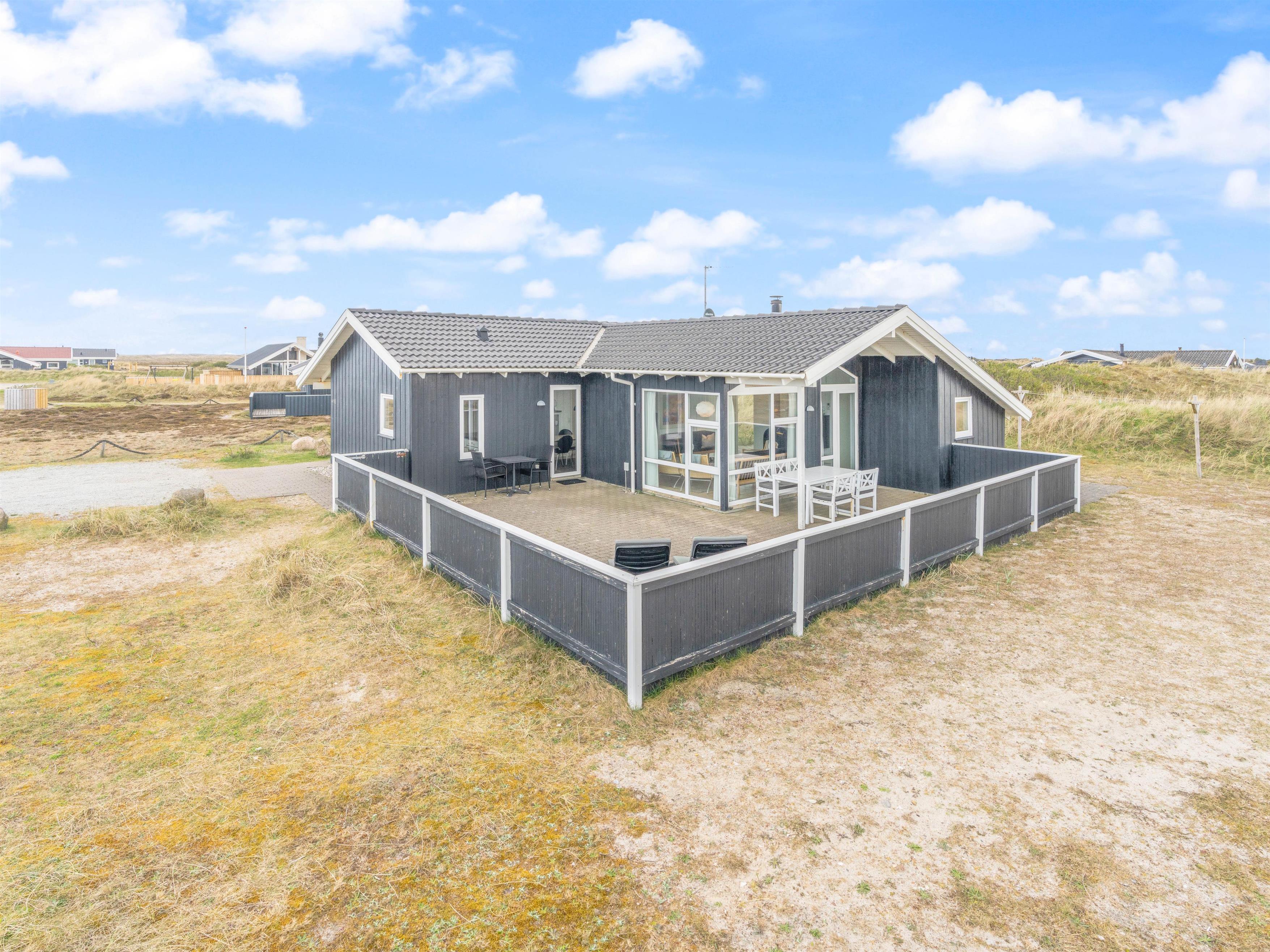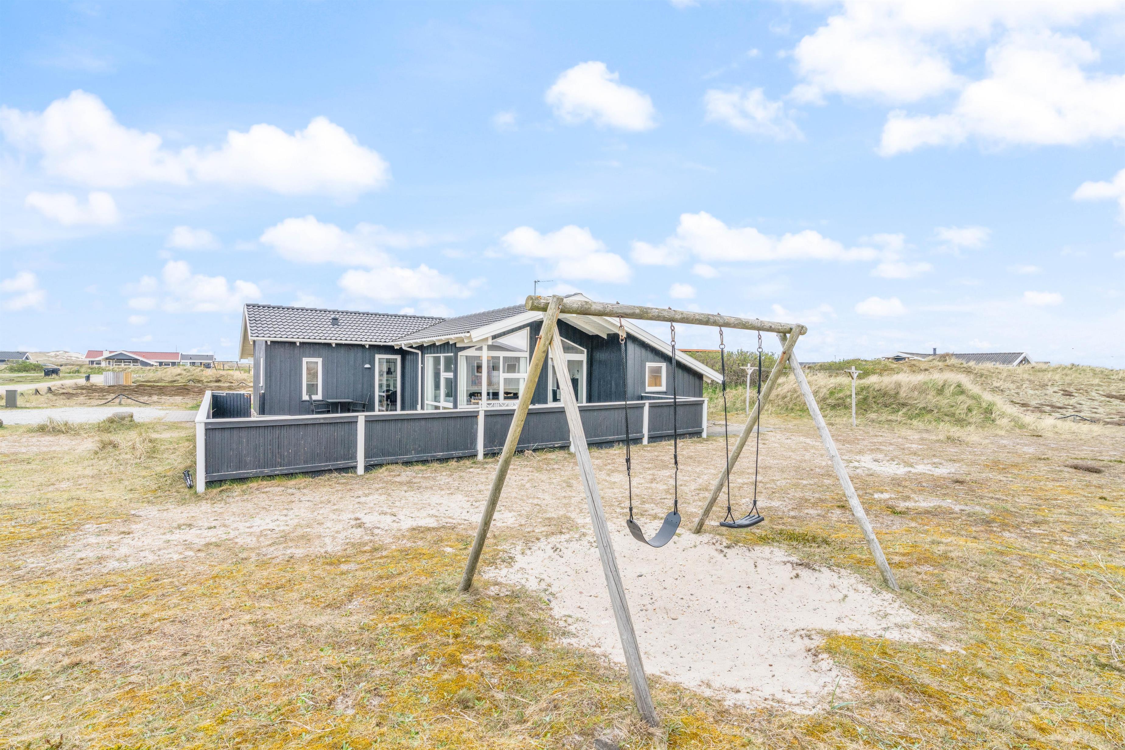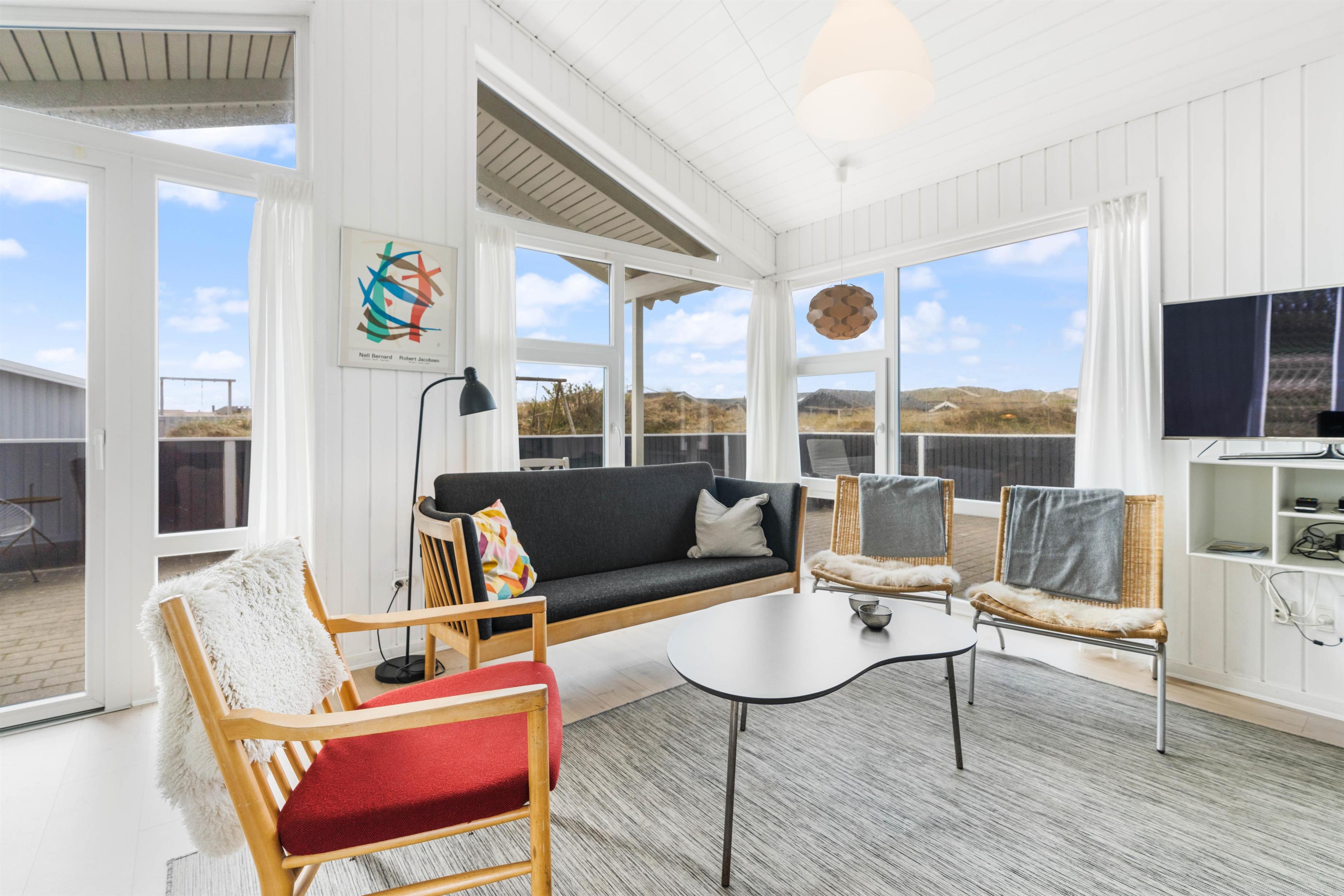 Feriehuset ligger på en flot naturgrund i meget kort gåafstand til det brusende vesterhav. Her finder i en af Danmarks smukkeste, hvide sandstrande. Her er højt til loftet og masser af frisk luft.
