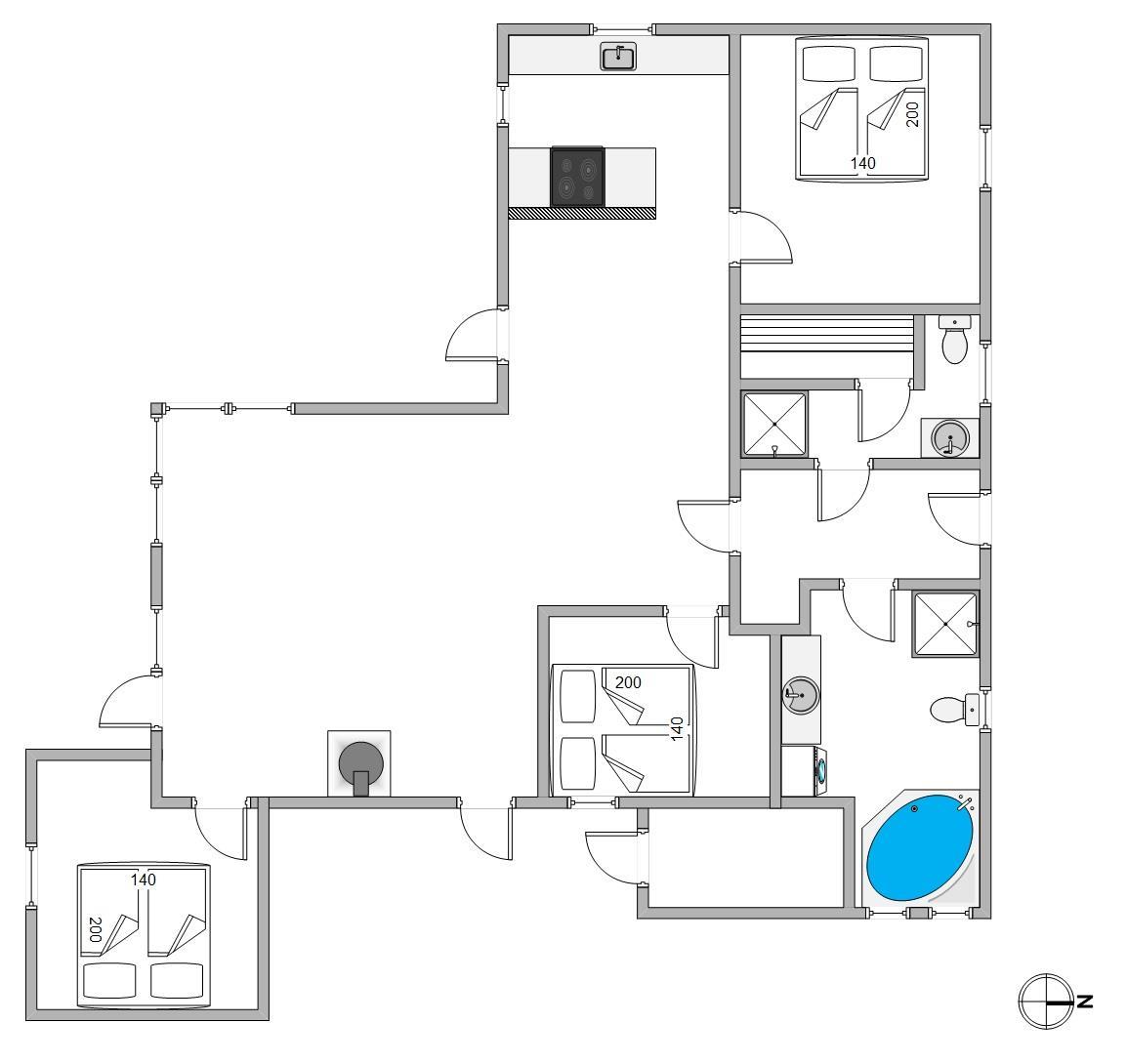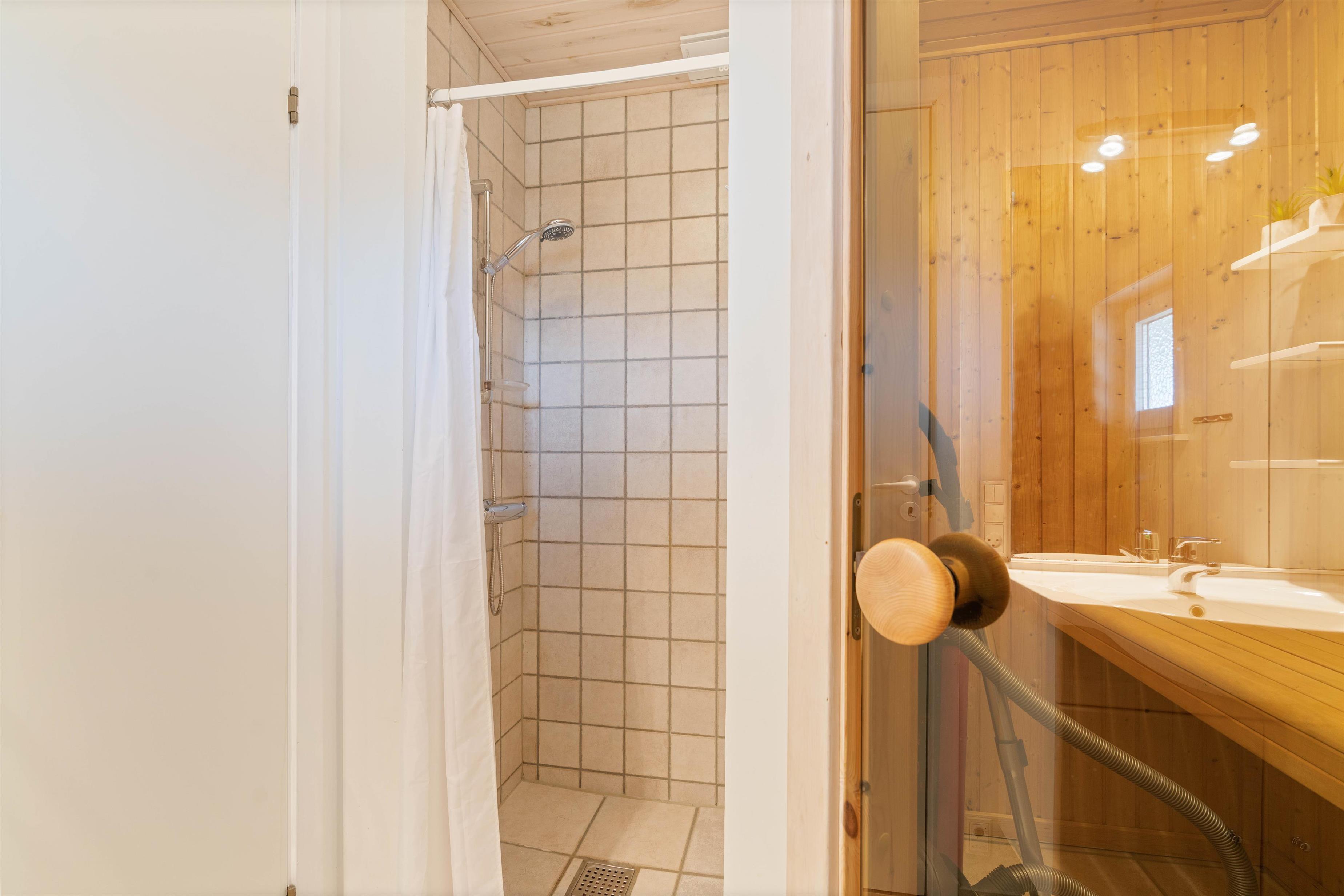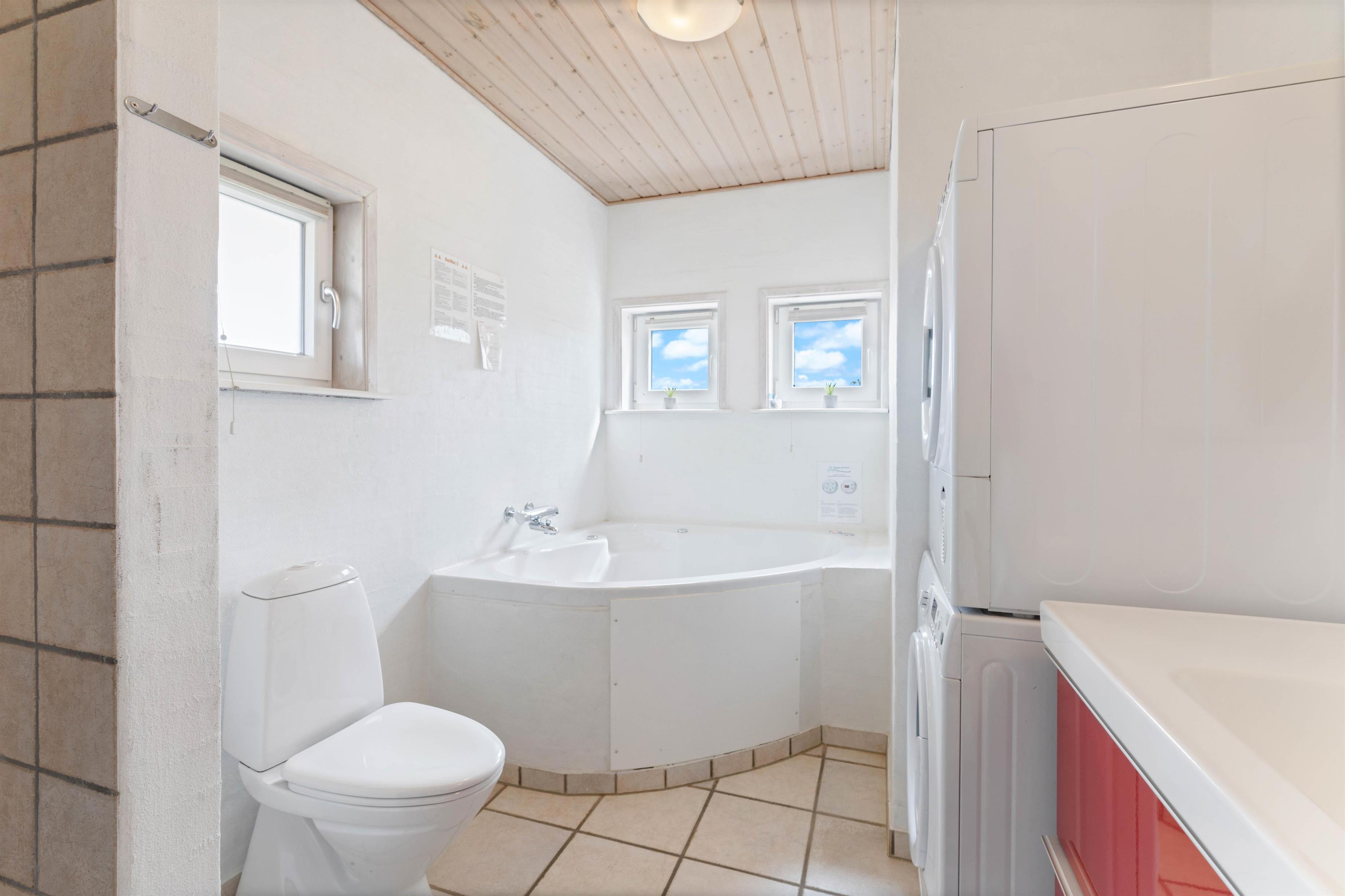 I feriehuset finder i to badeværelser. Det ene er med sauna og det andet med lækkert spa, vaskemaskine og tørretumbler. Efter en skøn dag på stranden, er det nemt at få rene og tørre håndklæder til næste dags strabadser.