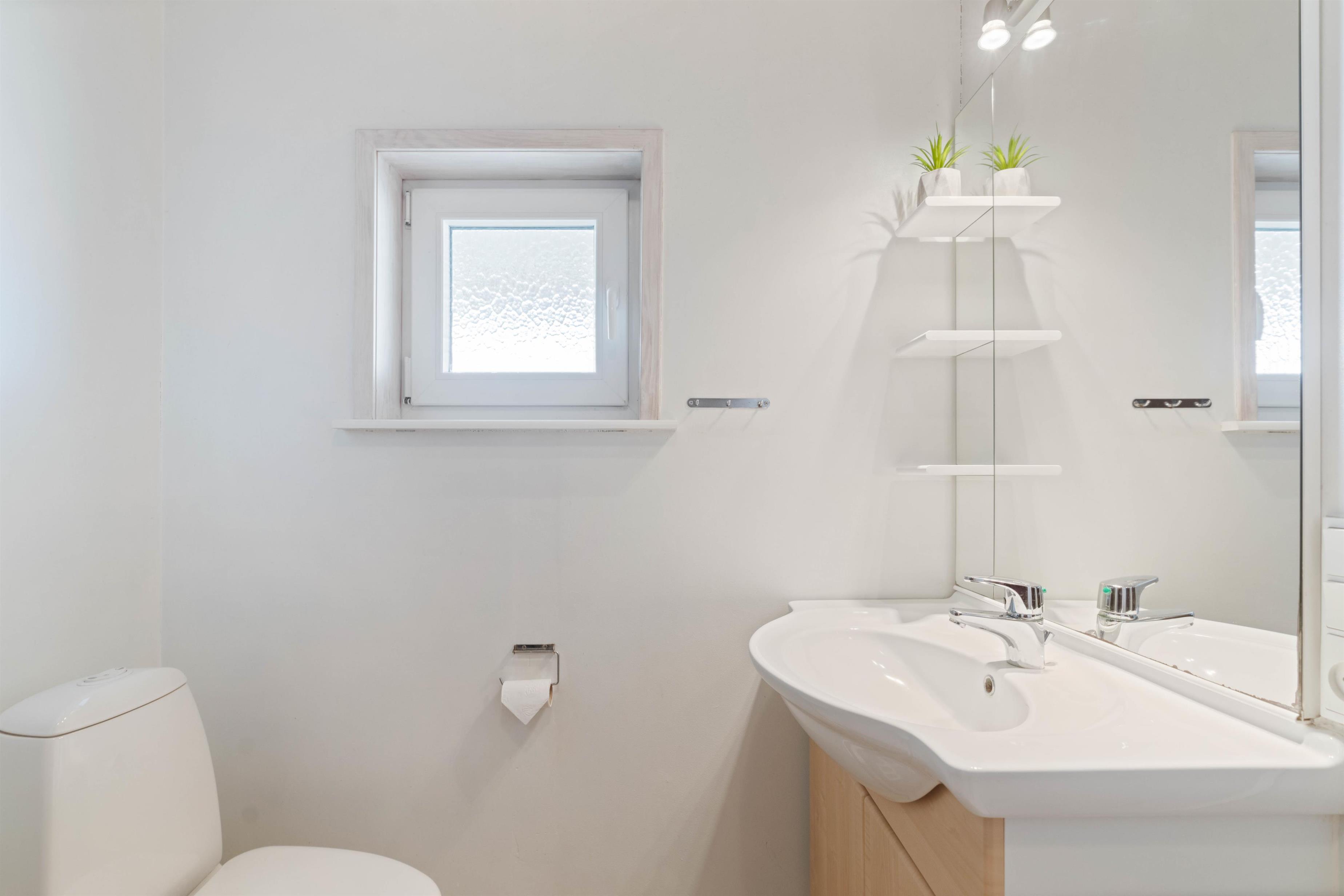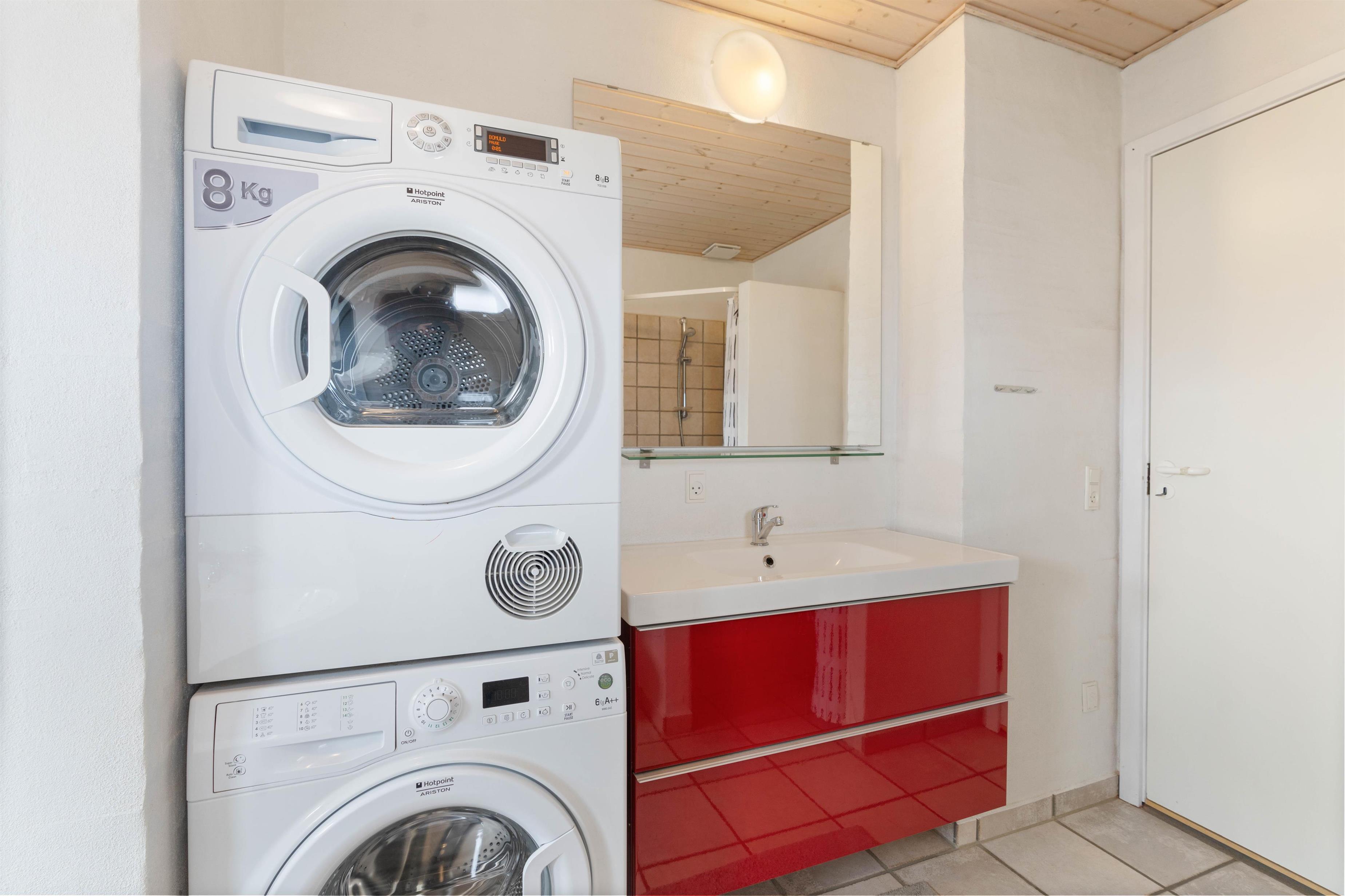 To badeværelser med vaskemaskine, tørretumbler samt spa og sauna
