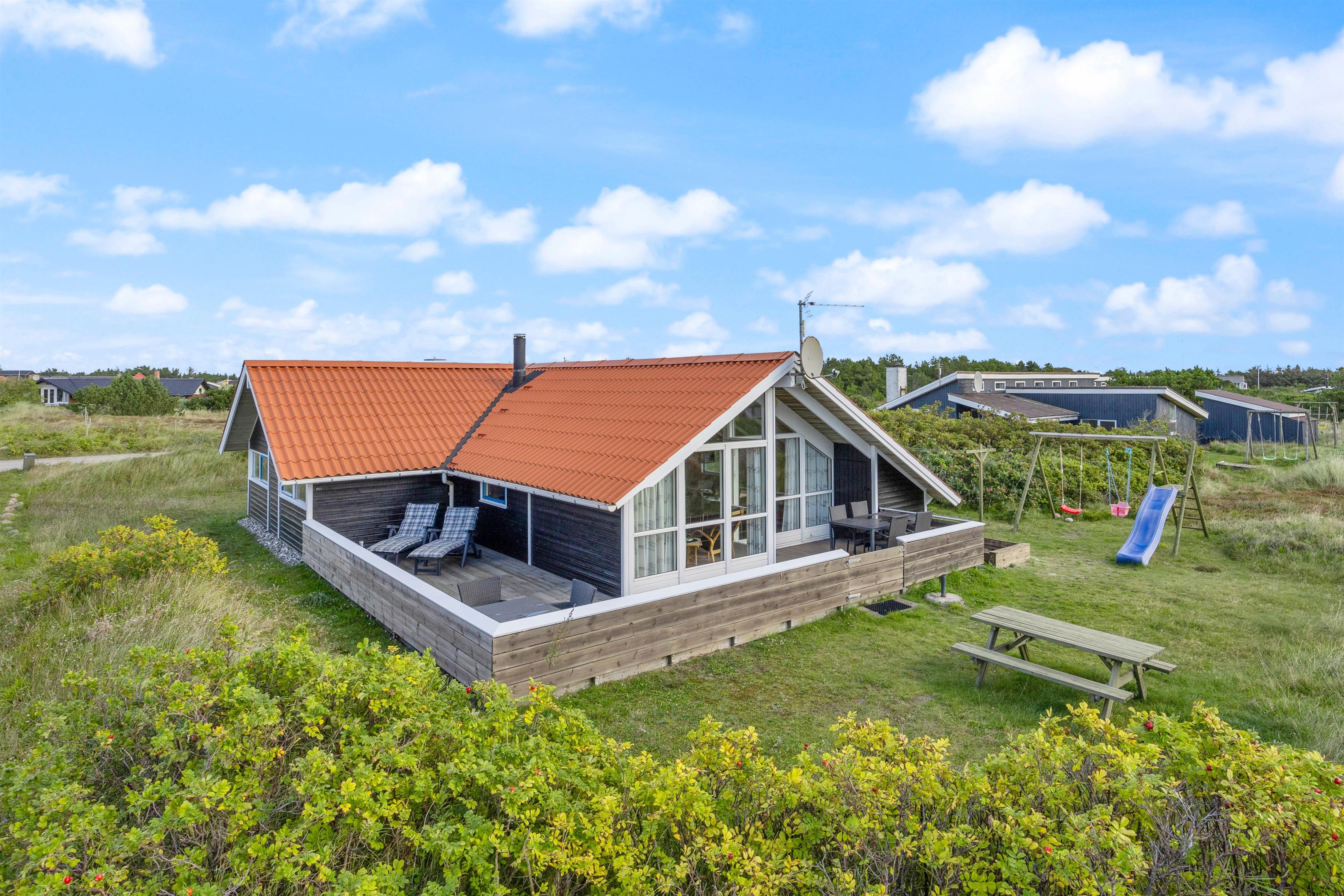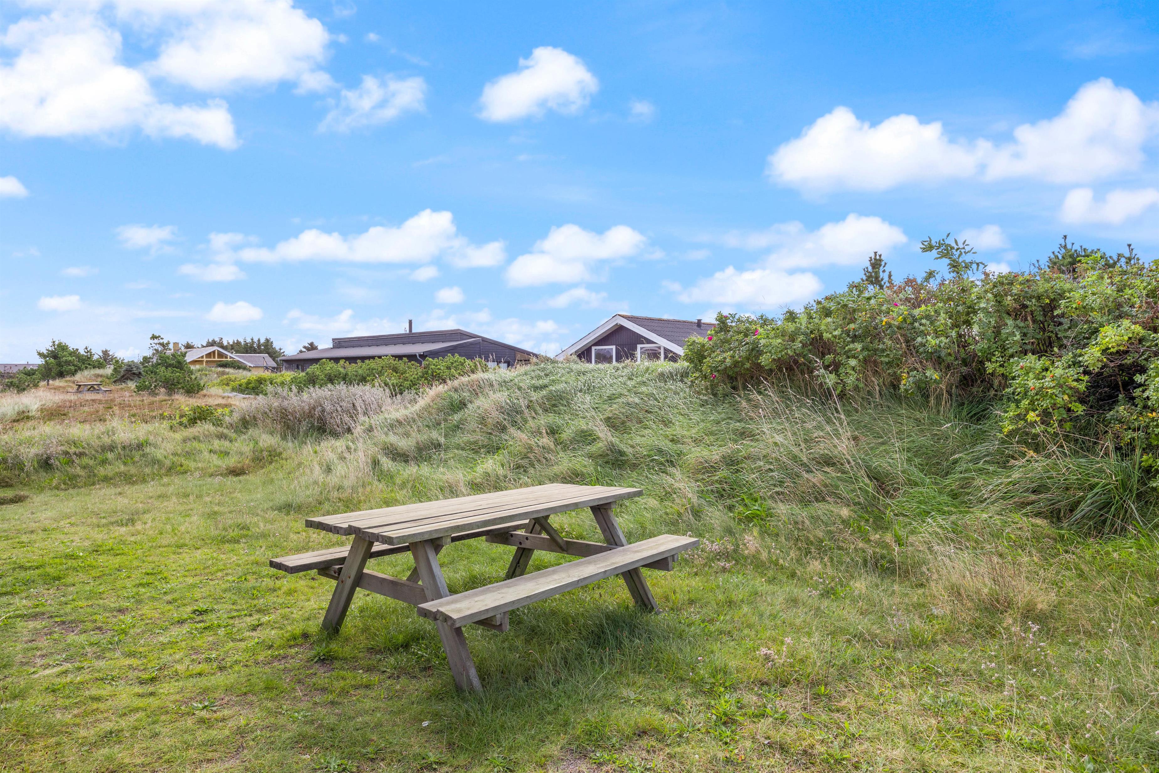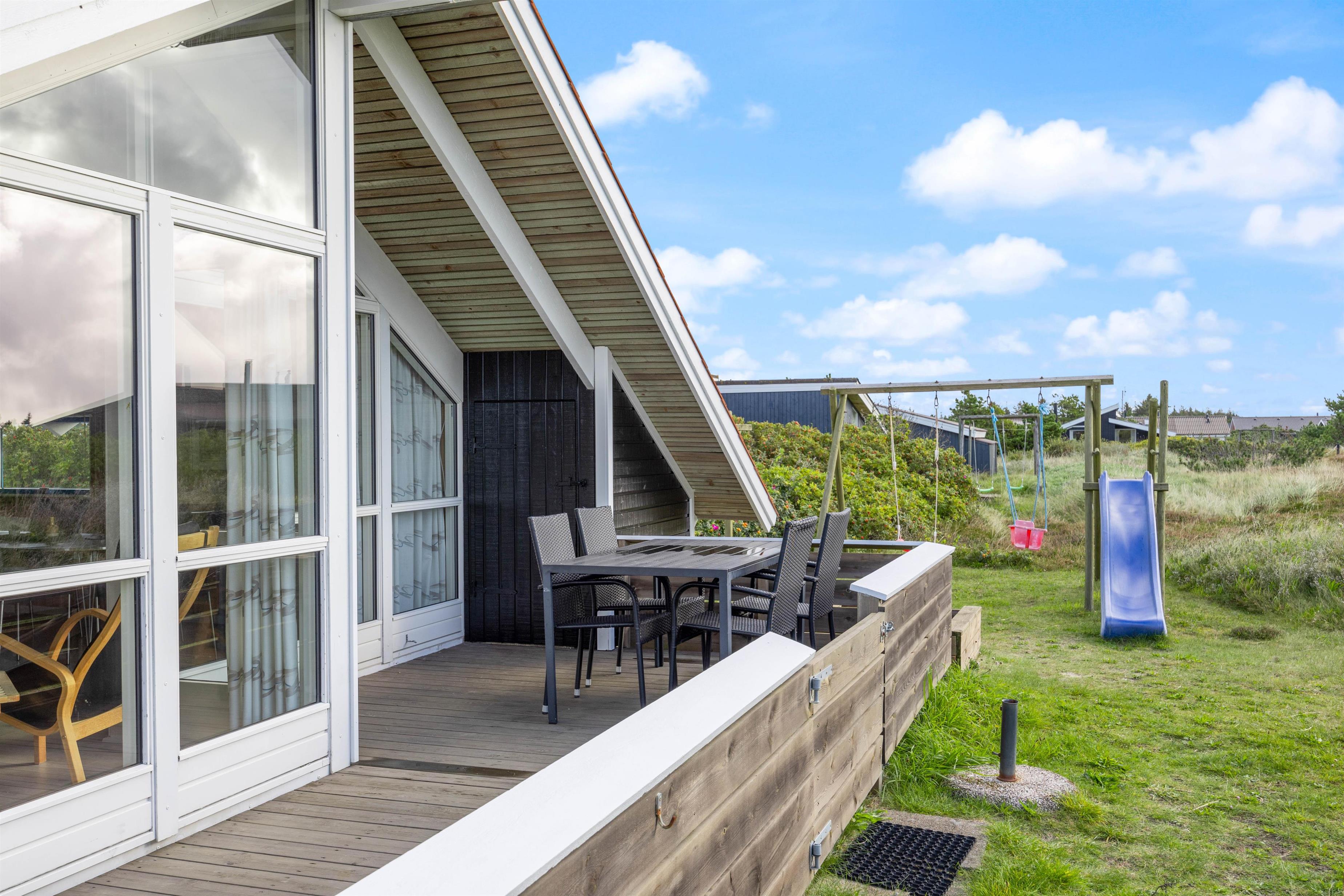 Til feriehuset hører en dejlig sydvestvendt vinkelterrasse, hvor I på de gode solskinsdage kan nyde solen det meste af dagen og helt til om aftenen, hvor den smukke solnedgang bag klitterne er en oplevelse helt i særklasse. På terrassen er der også indrettet en hyggekrog, hvor der er både ly og læ, så vejret ikke kan sætte en stopper for de hygggelige grillaftener.