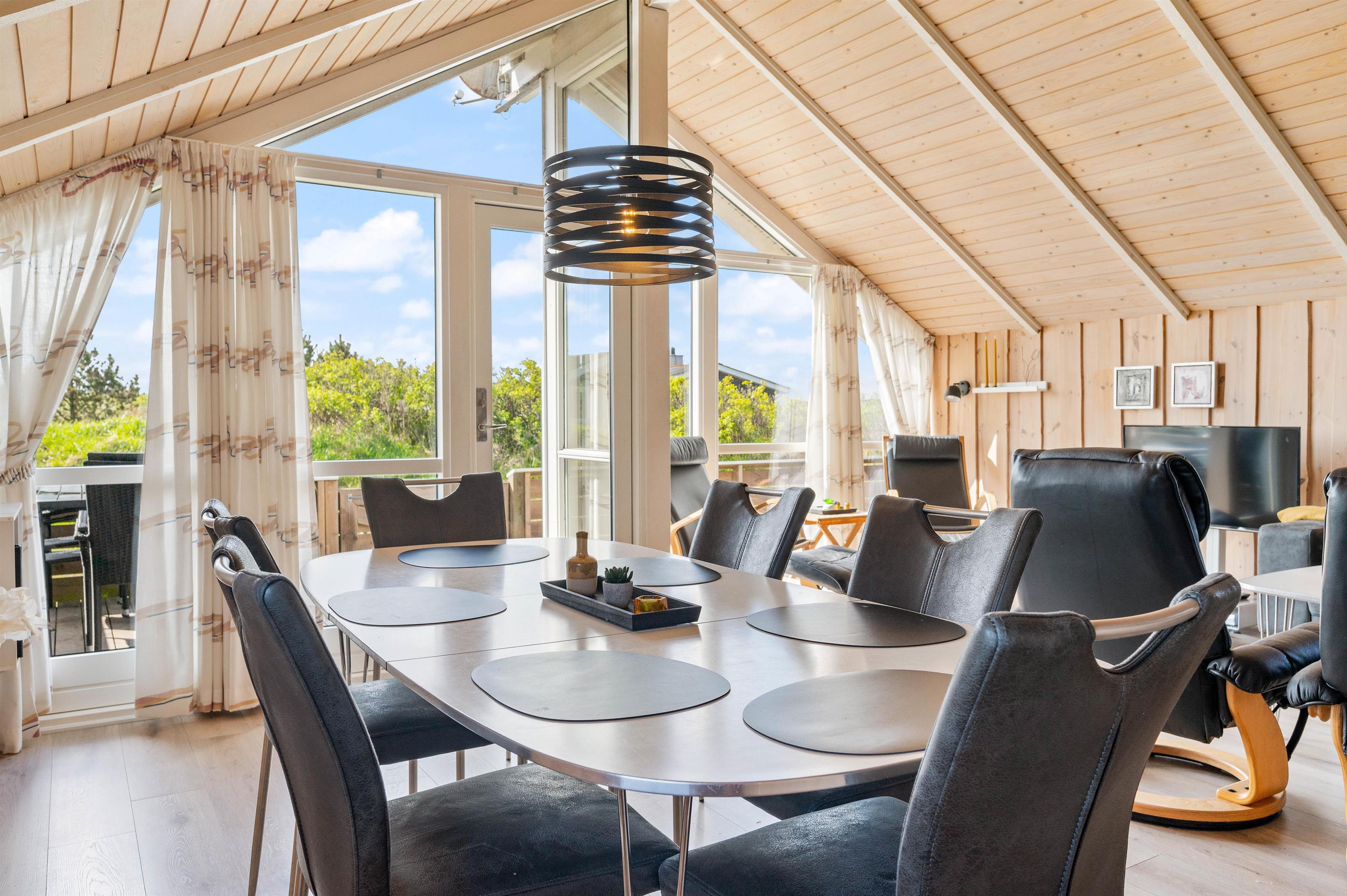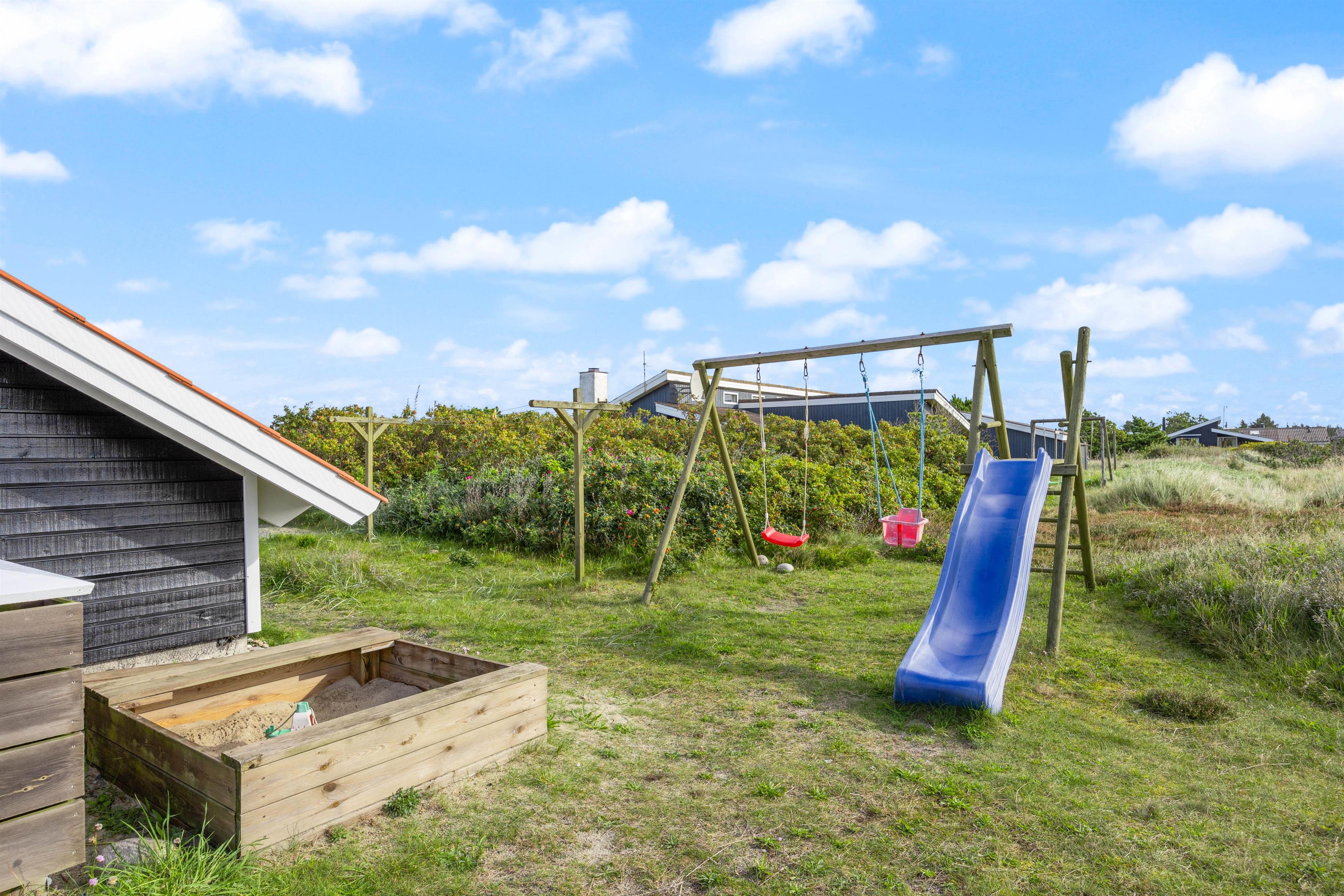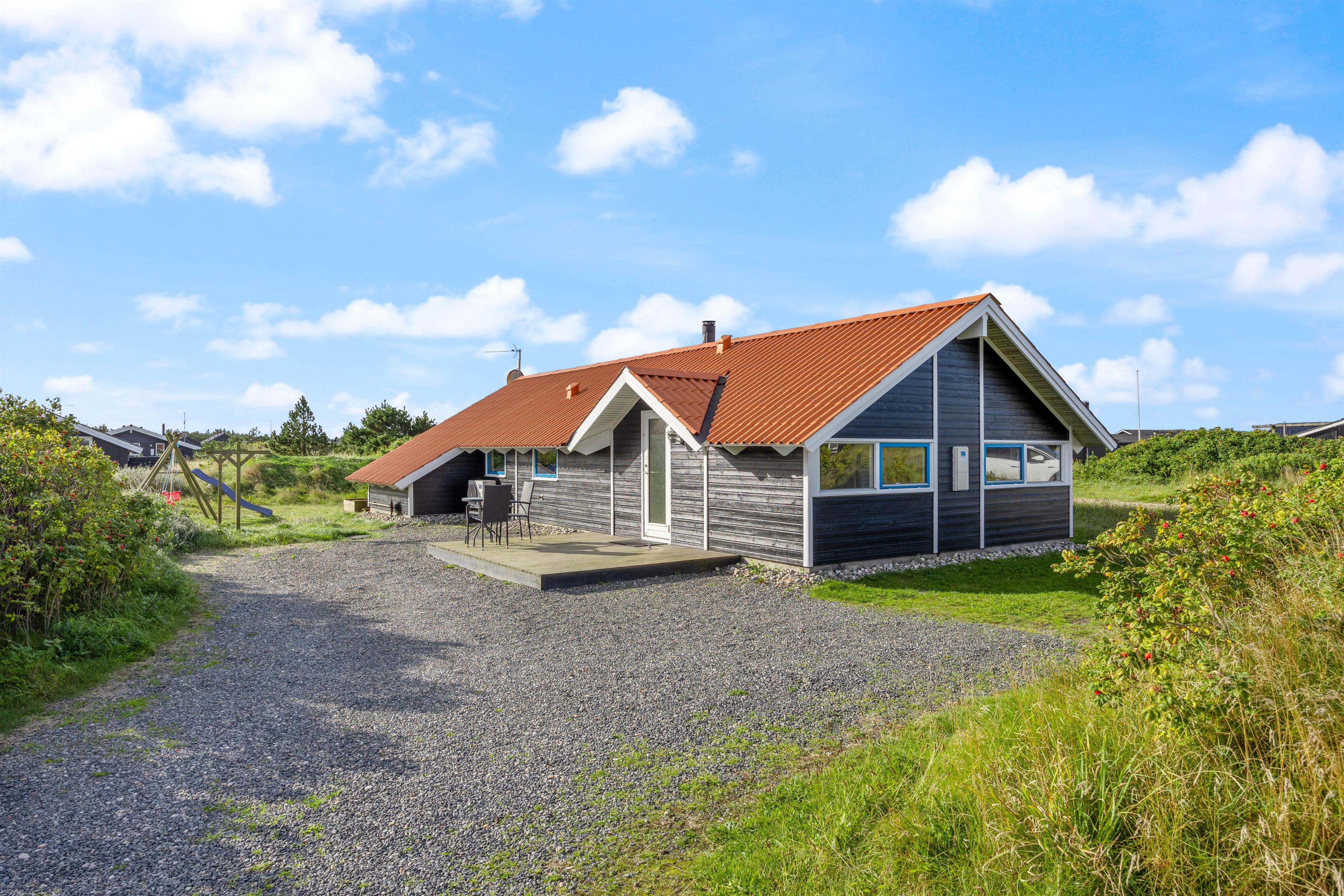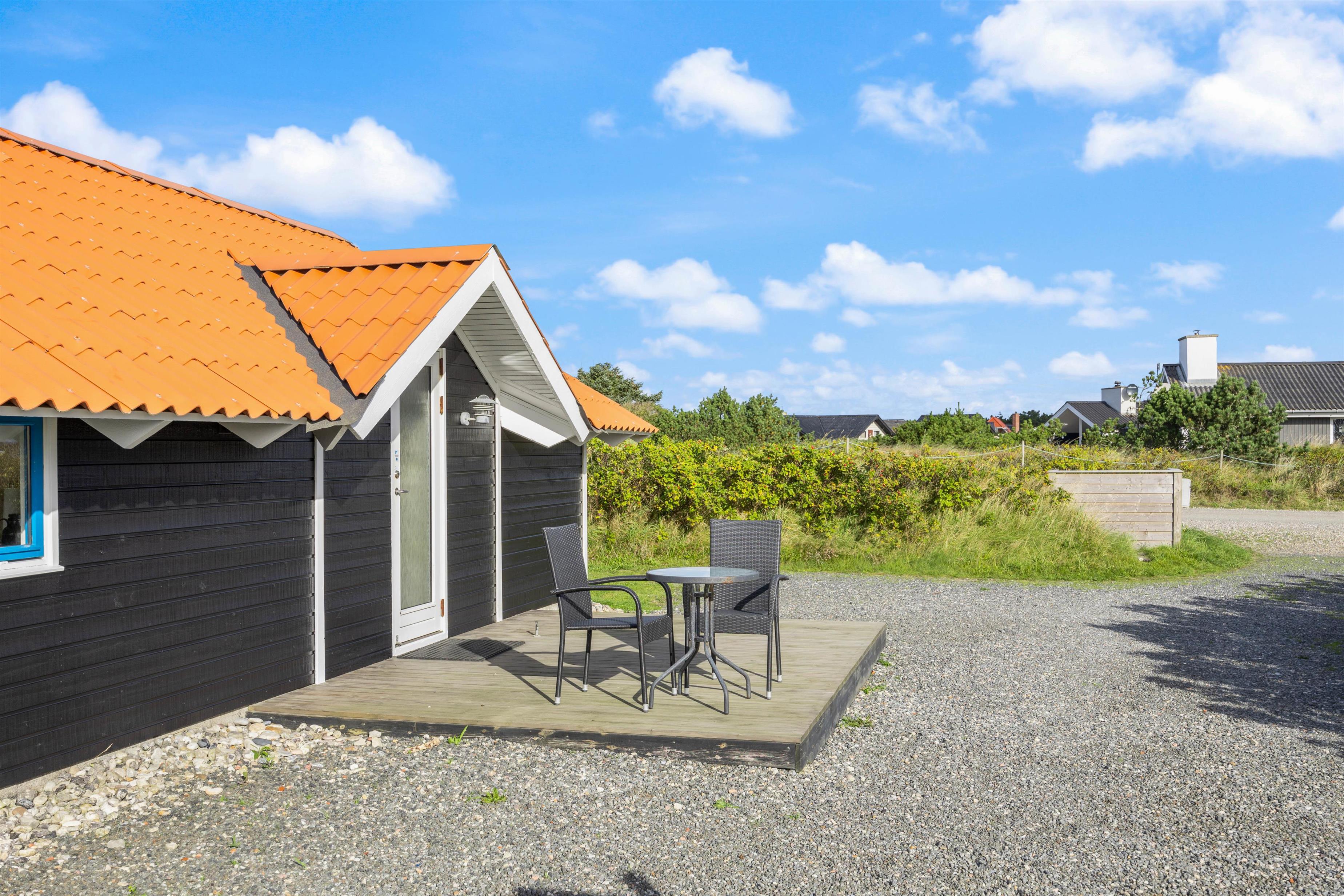 Til feriehuset hører en dejlig sydvestvendt vinkelterrasse, hvor I på de gode solskinsdage kan nyde solen det meste af dagen og helt til om aftenen, hvor den smukke solnedgang bag klitterne er en oplevelse helt i særklasse. På terrassen er der også indrettet en hyggekrog, hvor der er både ly og læ, så vejret ikke kan sætte en stopper for de hygggelige grillaftener.
