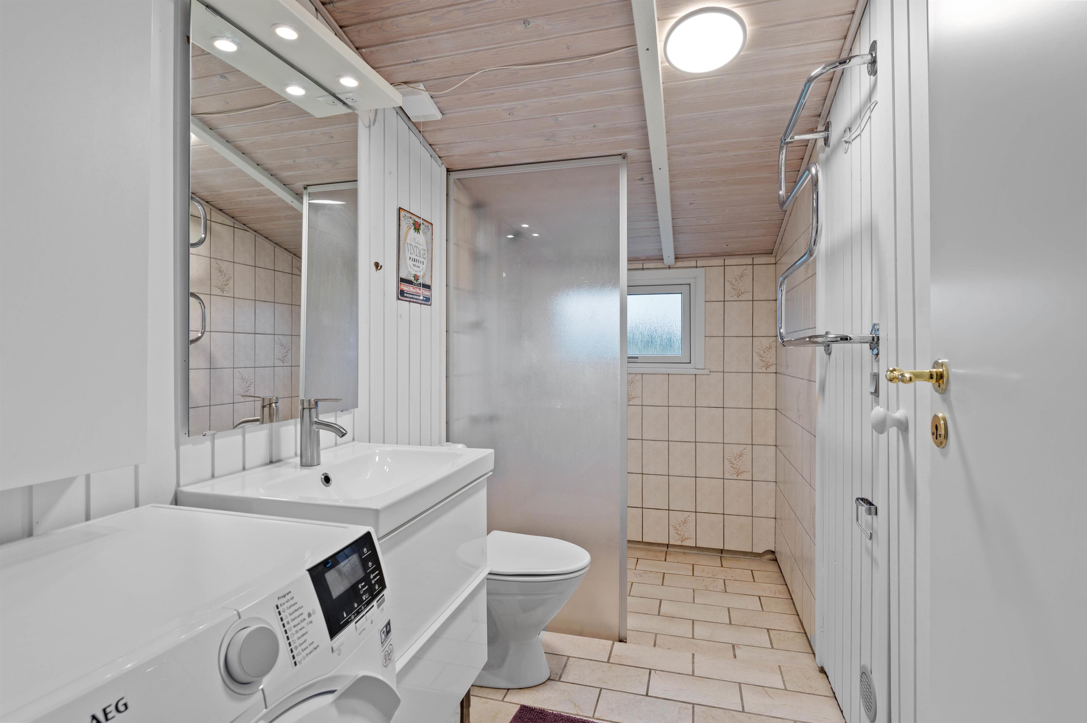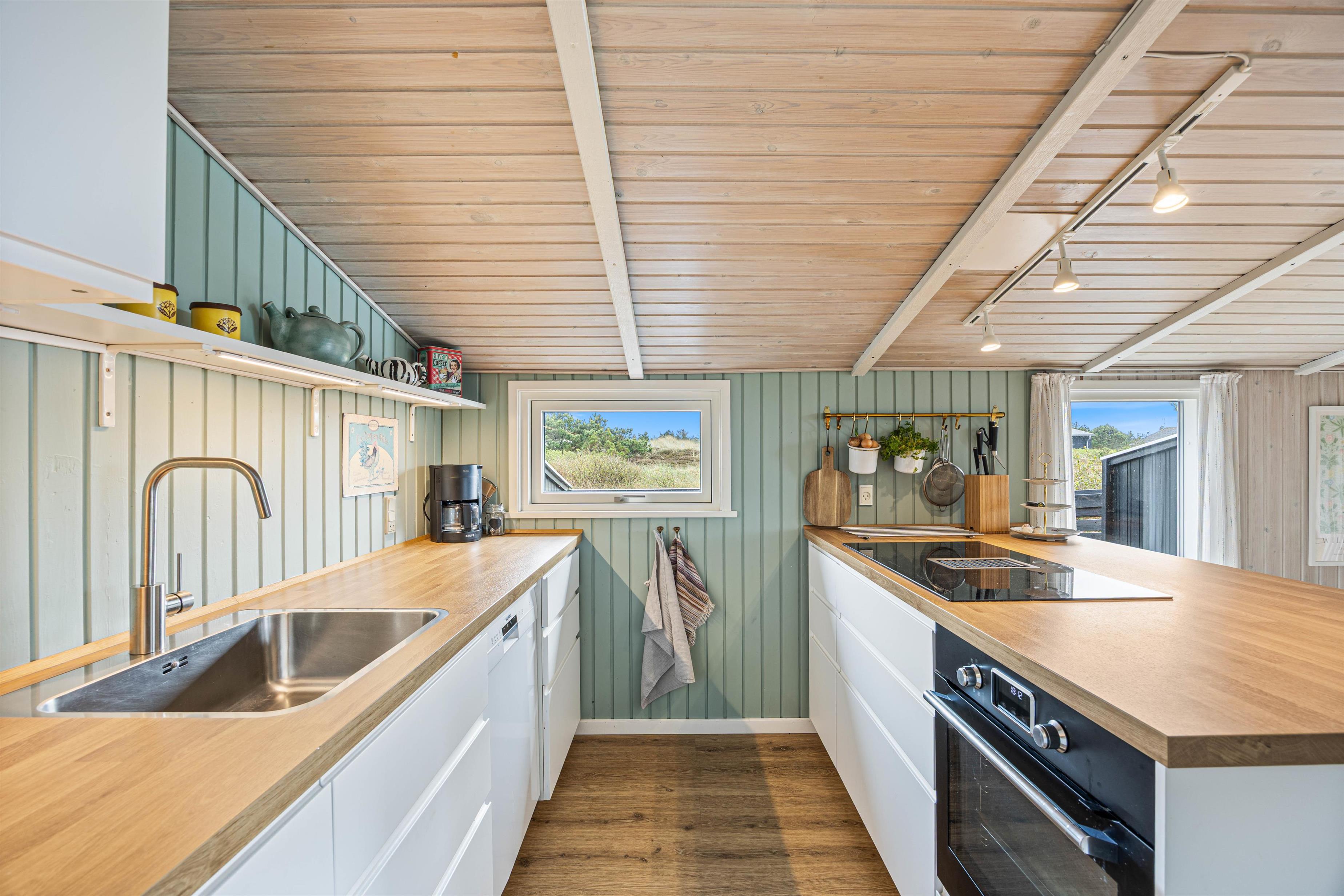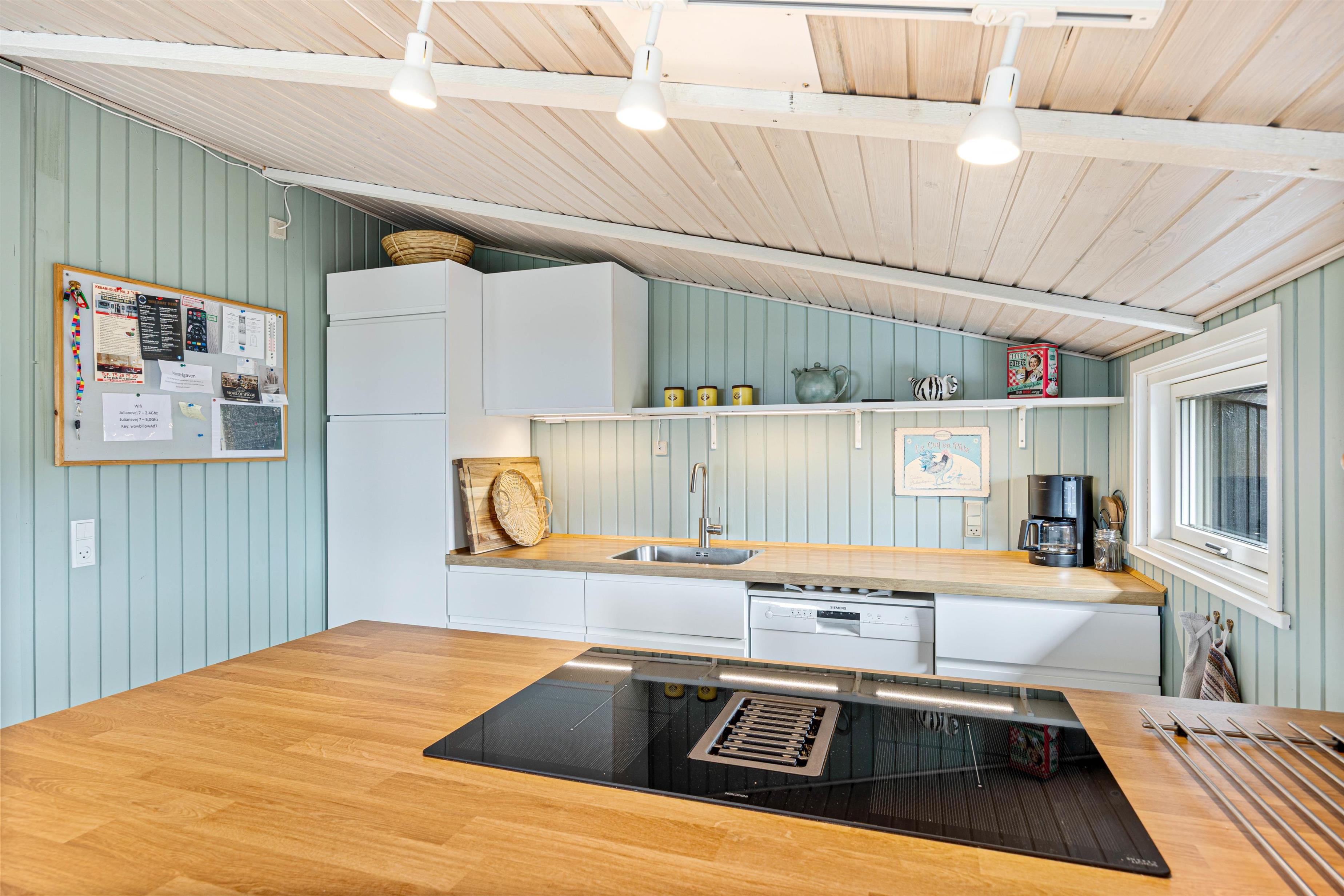 I det lyse og praktisk indrettede køkken finder du alt, hvad du behøver for at fremtrylle et lækkert måltid, og opvaskemaskinen tager sig af opvasken. I de kølige måneder kan sommerhuset hurtigt opvarmes med den energibesparende varmepumpe. Du kan ovenikøbet nyde en afslappende tur i saunaen, hvis du trænger til at blive grundigt gennemvarm.