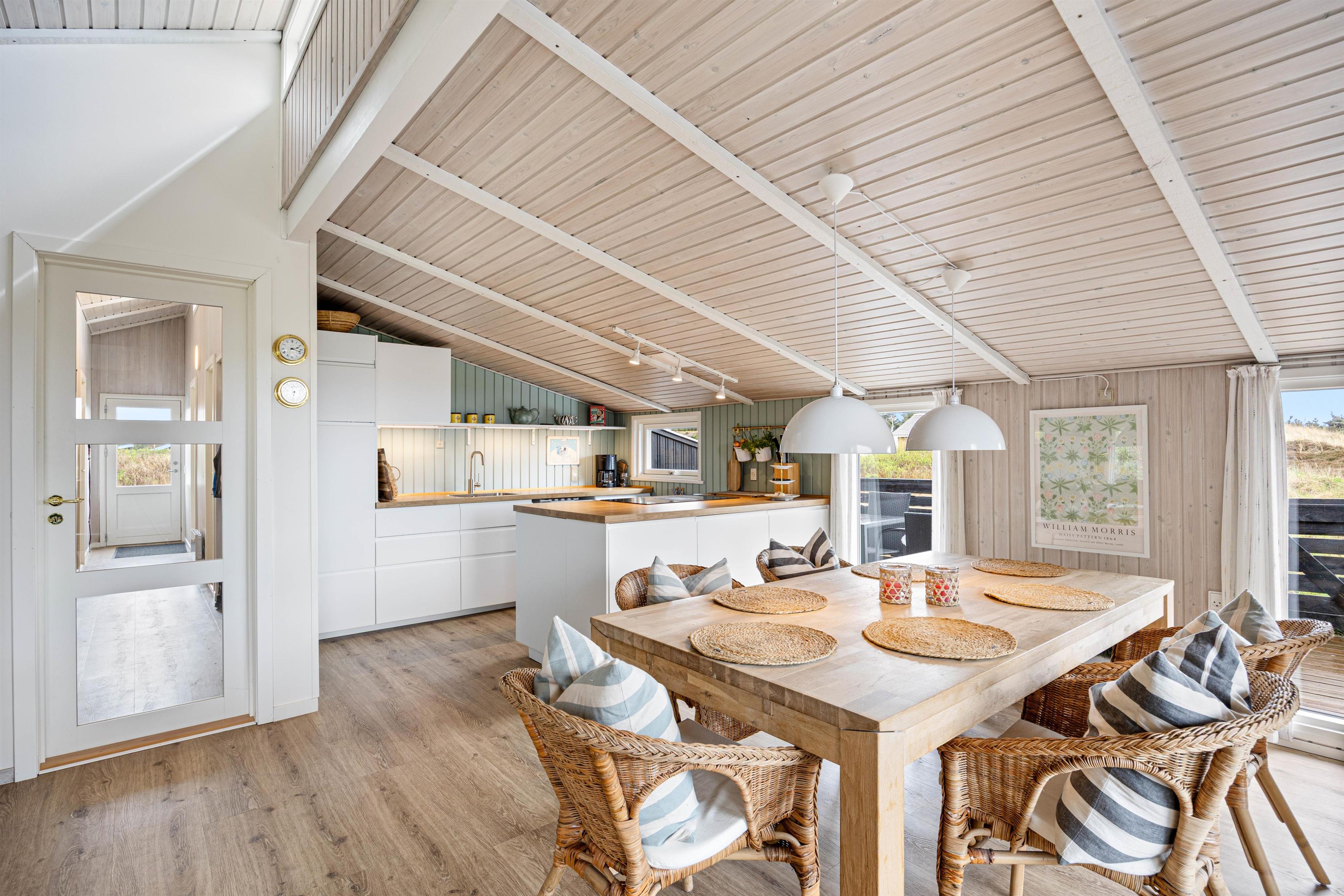 I dette lyse og indbydende sommerhus vil du straks føle dig hjemme, når du træder ind. Med en knitrende ild i brændeovnen kan I sammen arrangere en tv-aften. Et fladskærms-tv med Chromecast er tilgængeligt til dette formål. Eller hvad med en spilleaften med hele familien? Intet problem med plads ved det rummelige spisebord.
