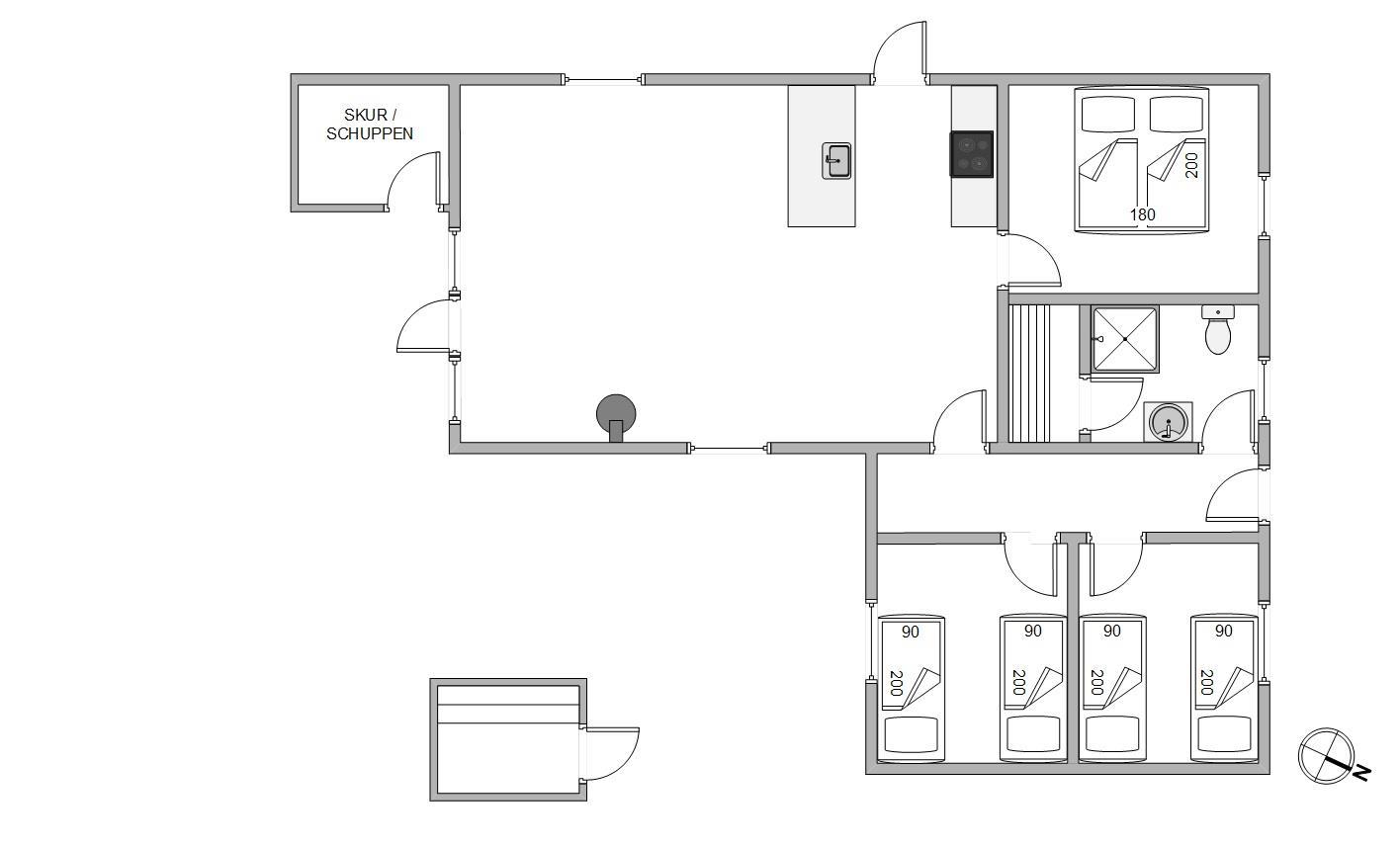 I forbindelse med badeværelset, som har gulvvarme, er der sauna, og der er også vaskemaskine og tørretumbler i sommerhuset. I de 3 soveværelser er der plads til 6 personer, som kan blive godt udhvilede og nyde godt af den friske vesterhavsluft. En varmepumpe hjælper til med opvarmning af sommerhuset.