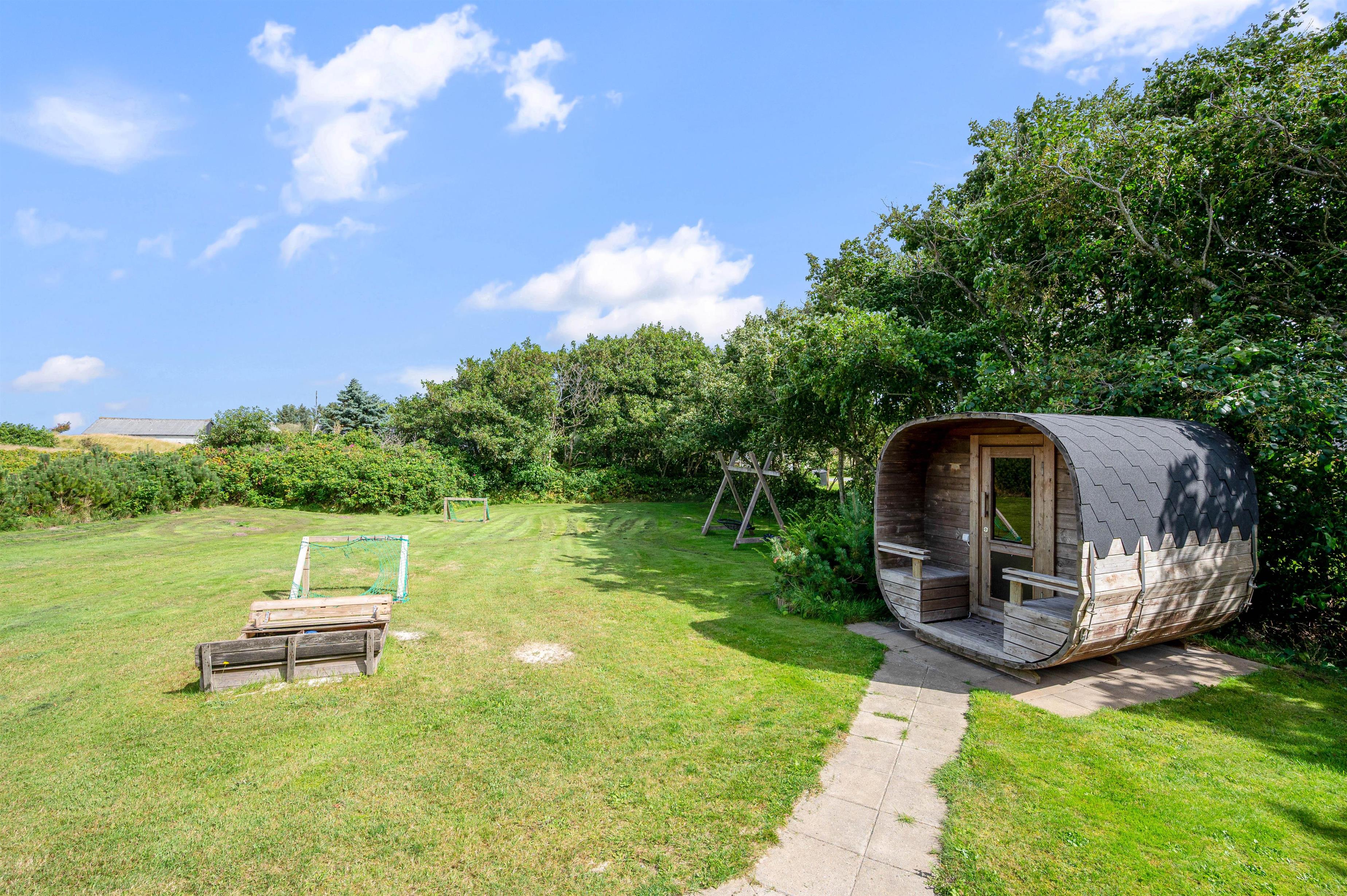 Vesterhavet ligger kun en frisk gåtur derfra, så en dukkert før- eller efter kan også være en mulighed. Bagefter kan I give musklerne en god gang afslapning i saunaen, hvis ikke I i stedet har lyst til en gåtur hen over det store, fredede hedeareal.