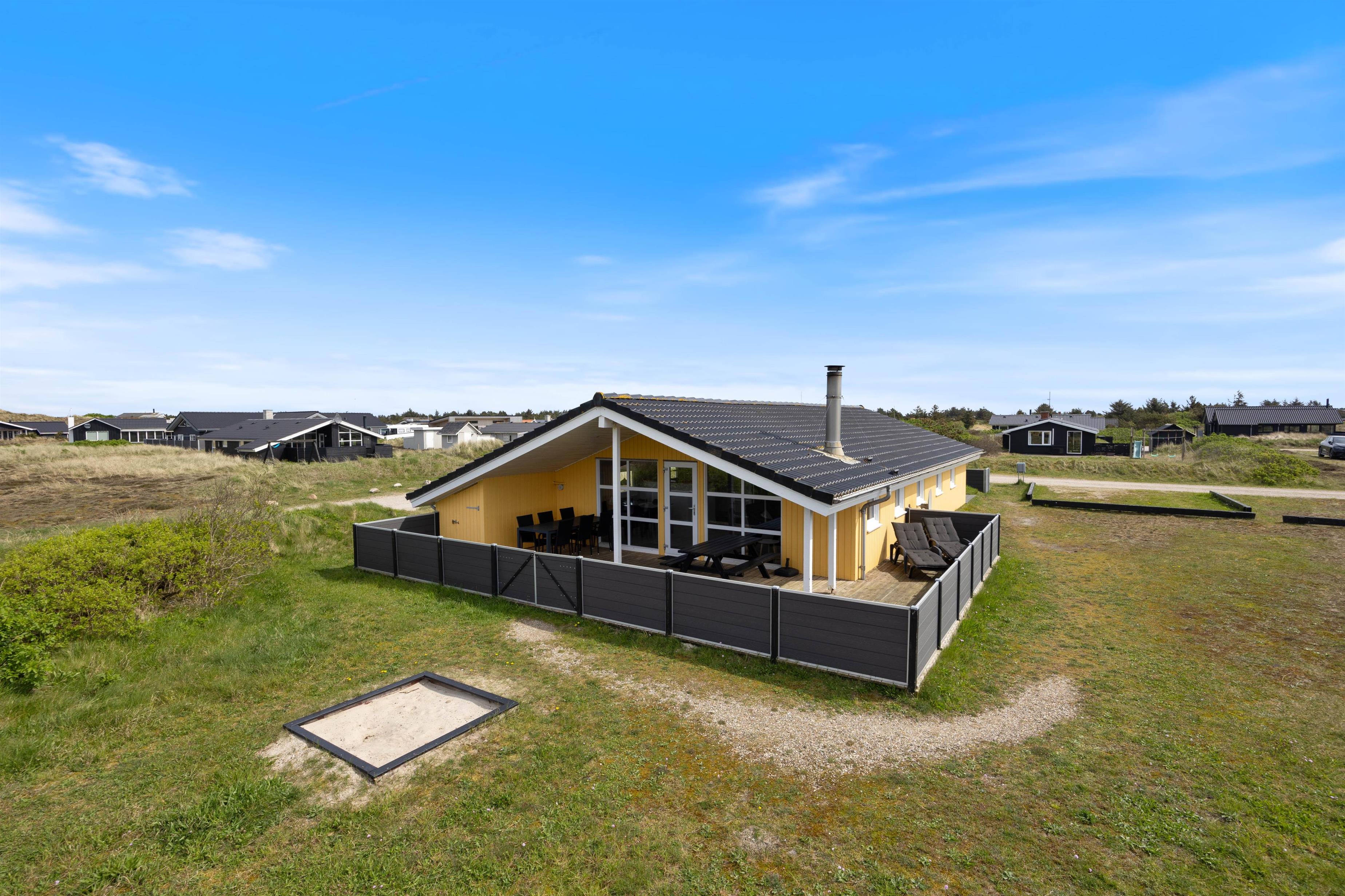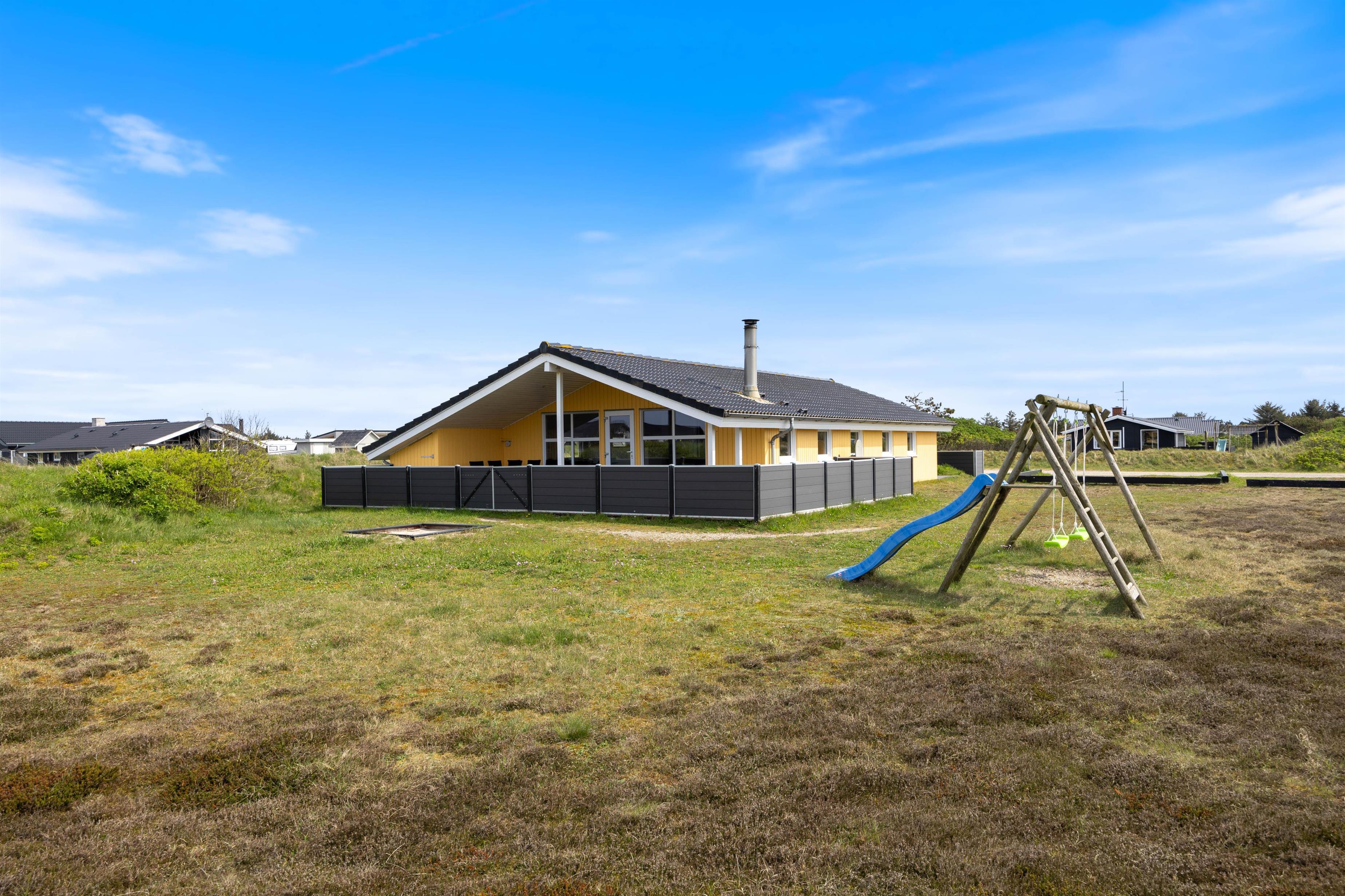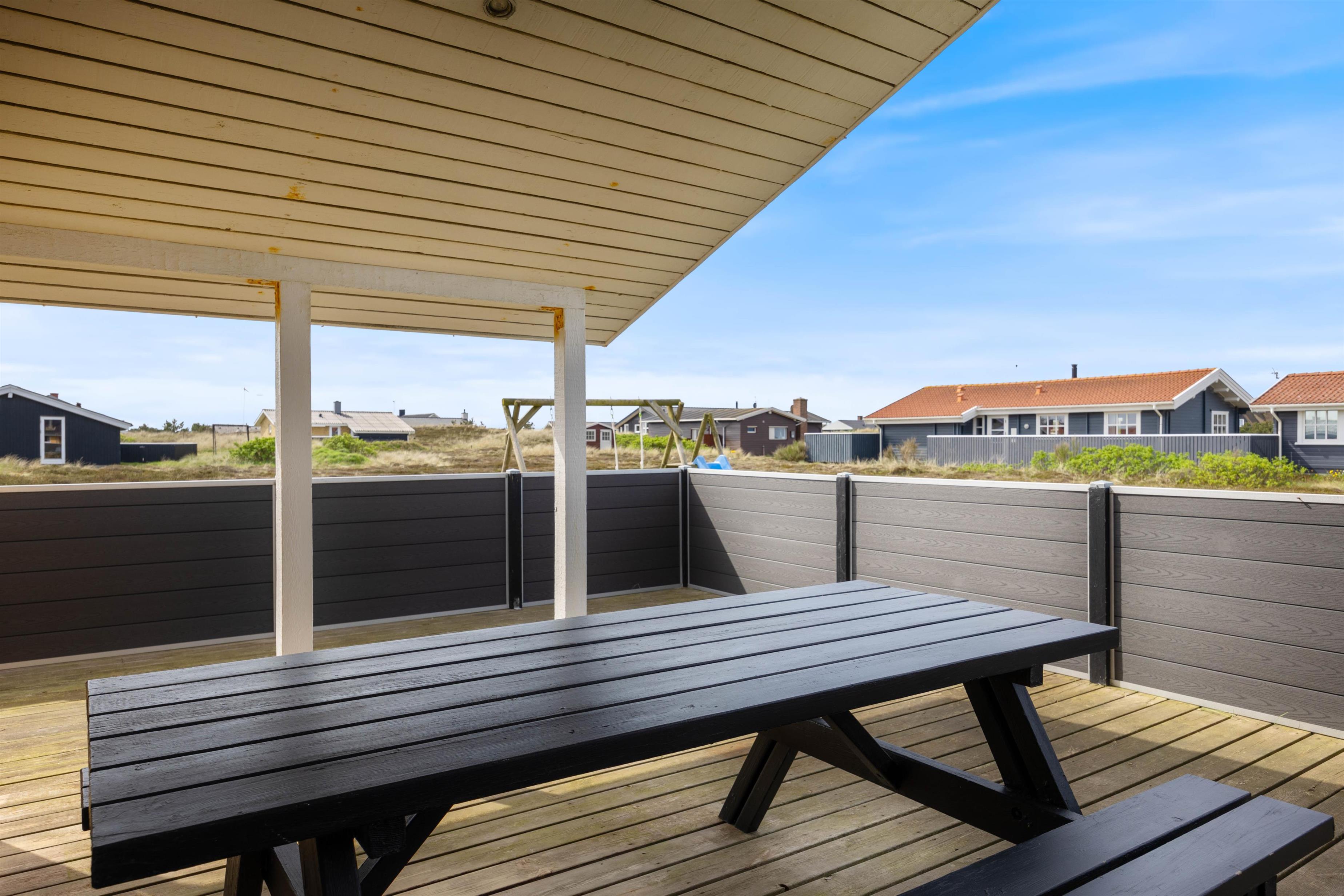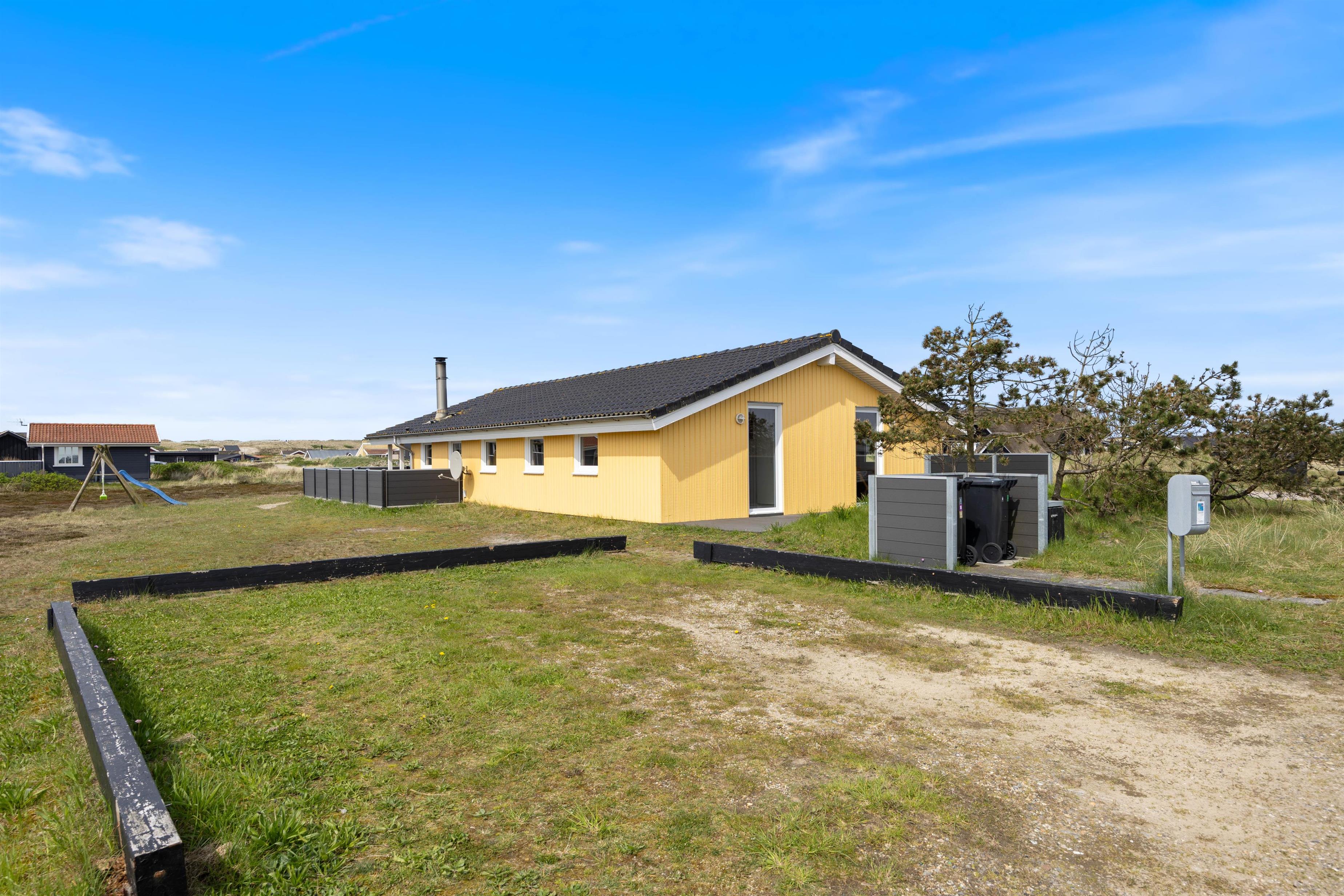 Efter en dejlig tur ved stranden kan I vende tilbage til feriehuset, tænde op i grillen og nyde en kølig drink på terrassen, mens I følger med i børnenes leg på gyngerne eller i sandkassen.