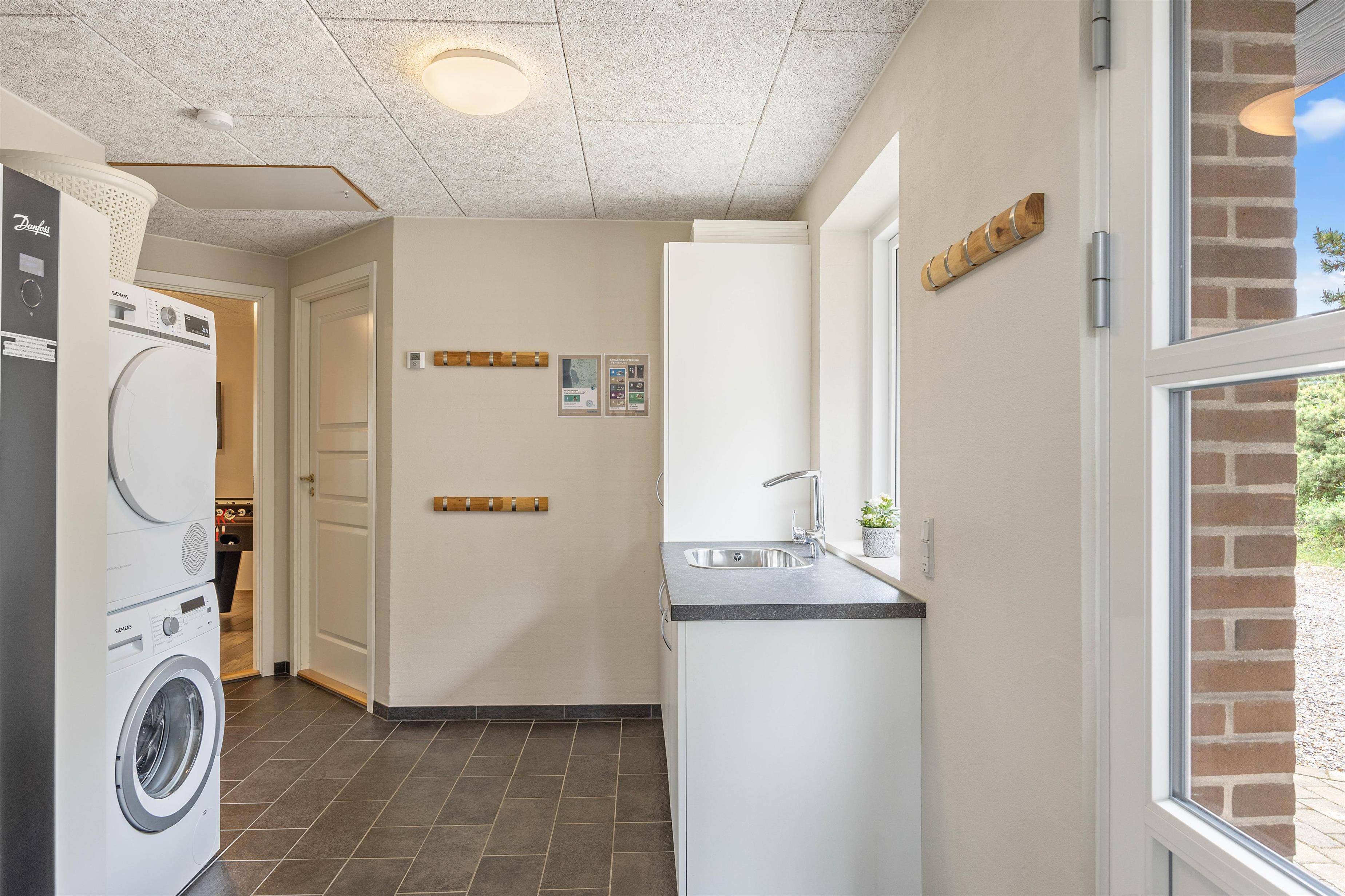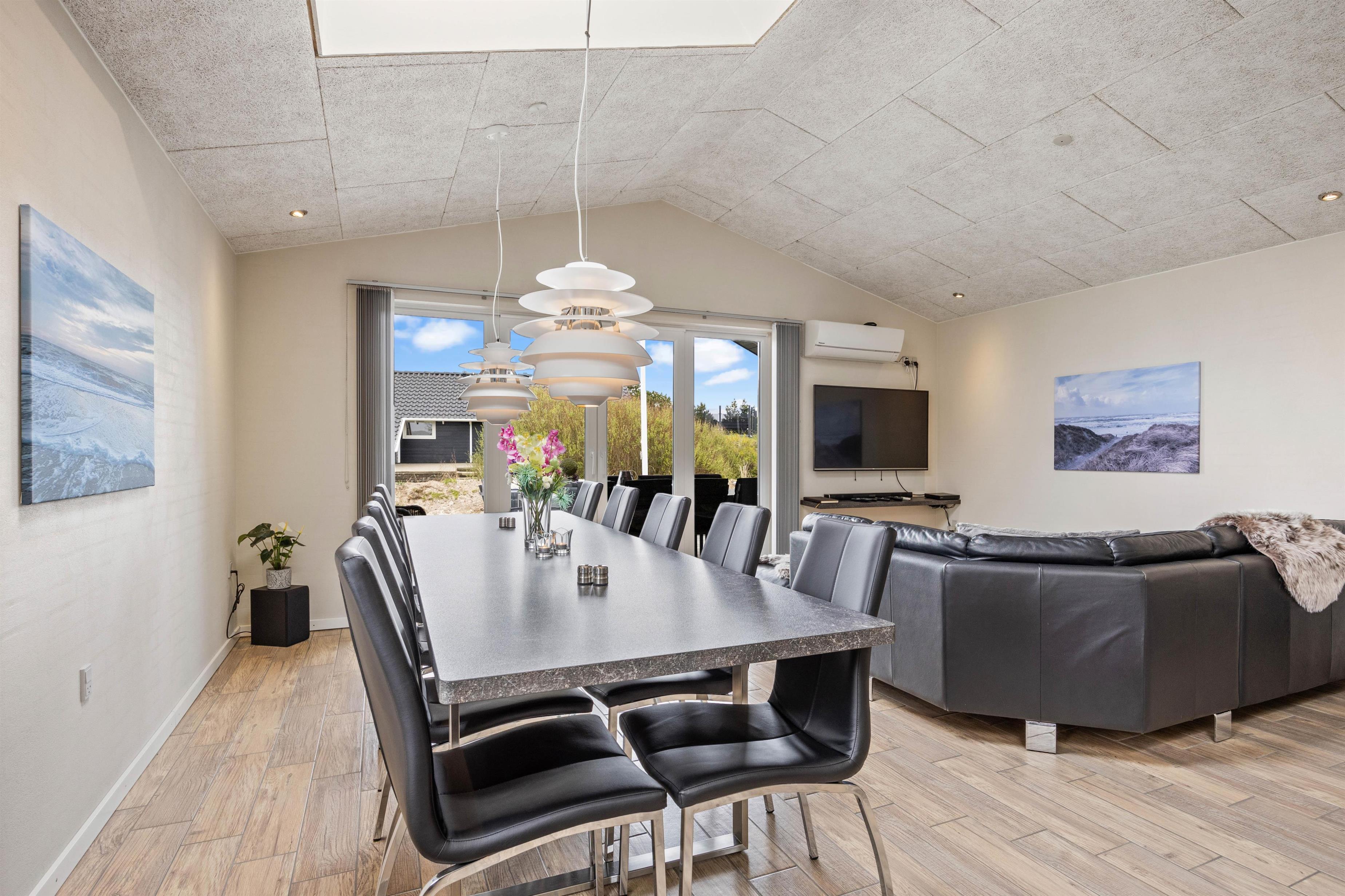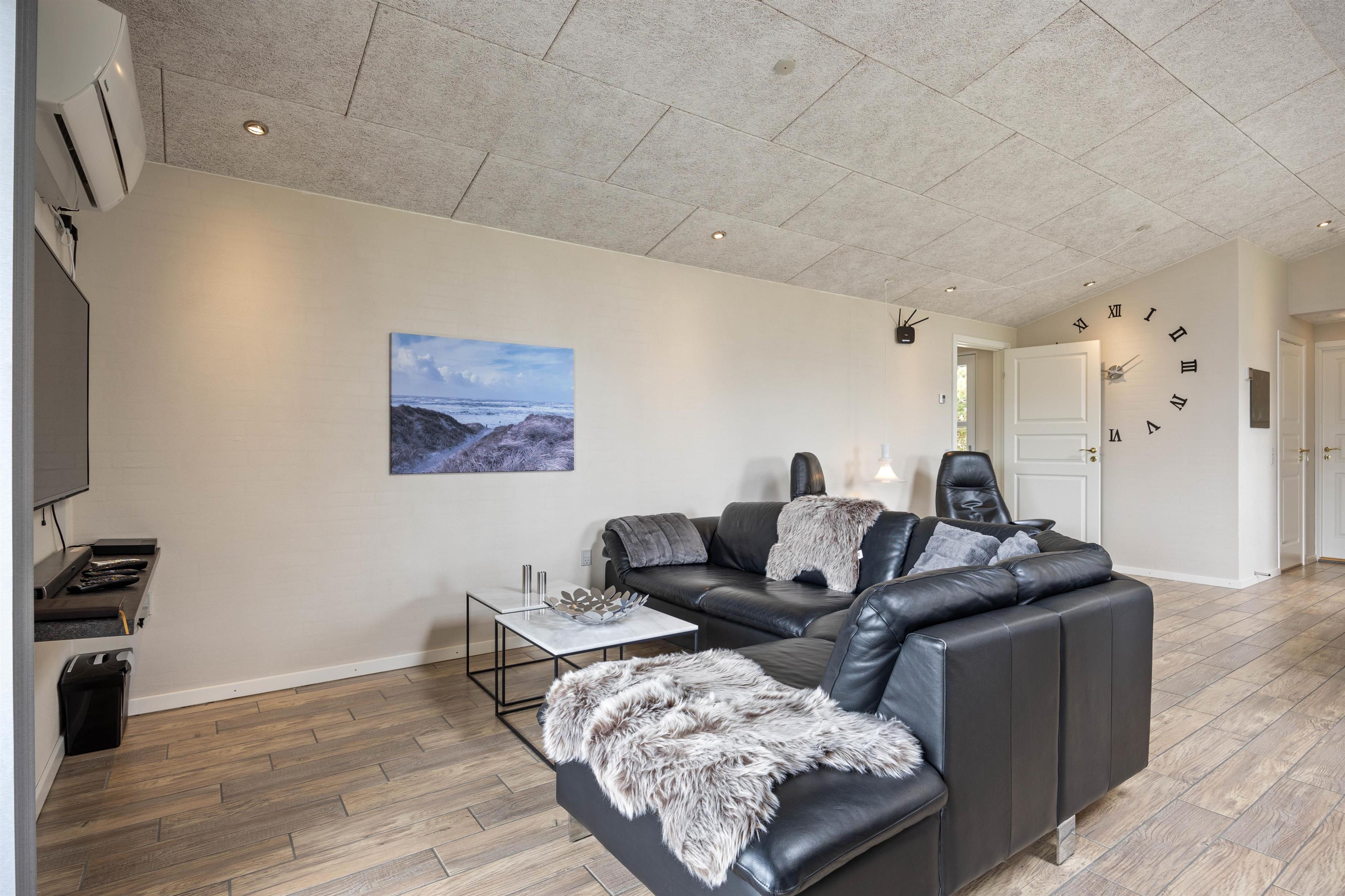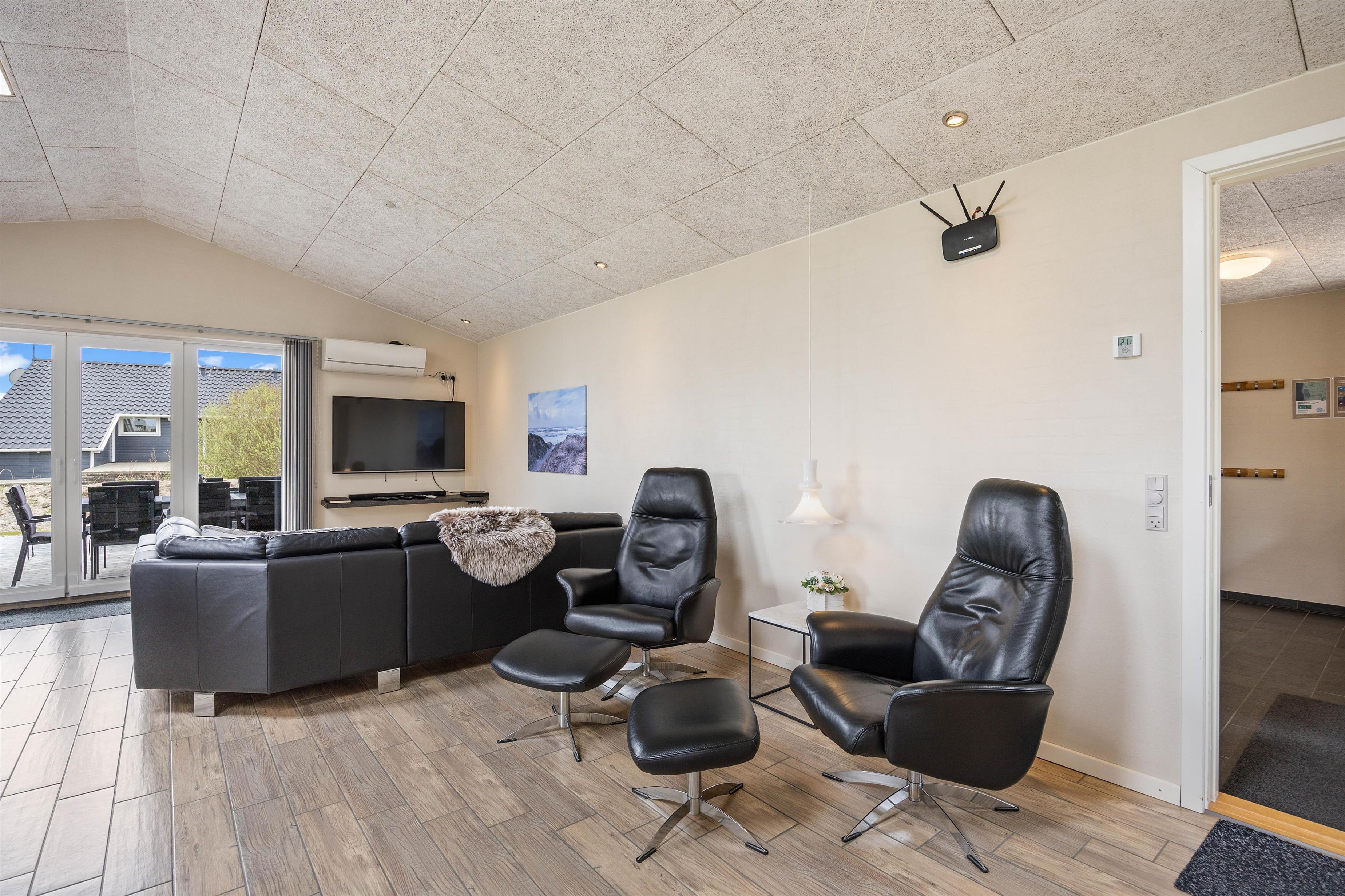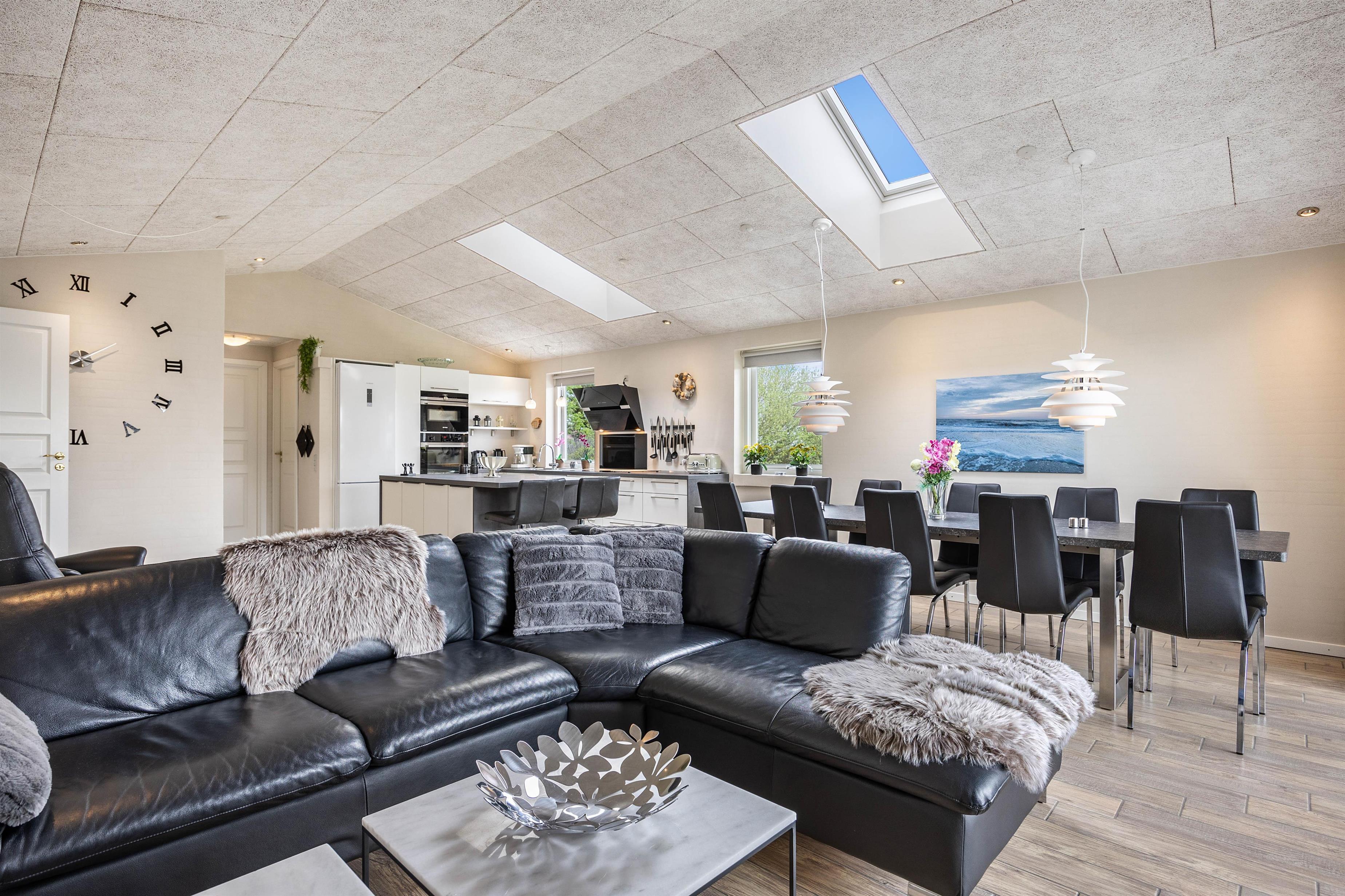 På den delvist overdækkede terrasse kan I lave en BBQ-aften på grillen, nyde måltidet sammen, gå en lang tur langs den kilometerlange Vesterhavsstrand og komme tilbage og nyde en kølig drink i udespaen, imens solen går ned over klitterne.