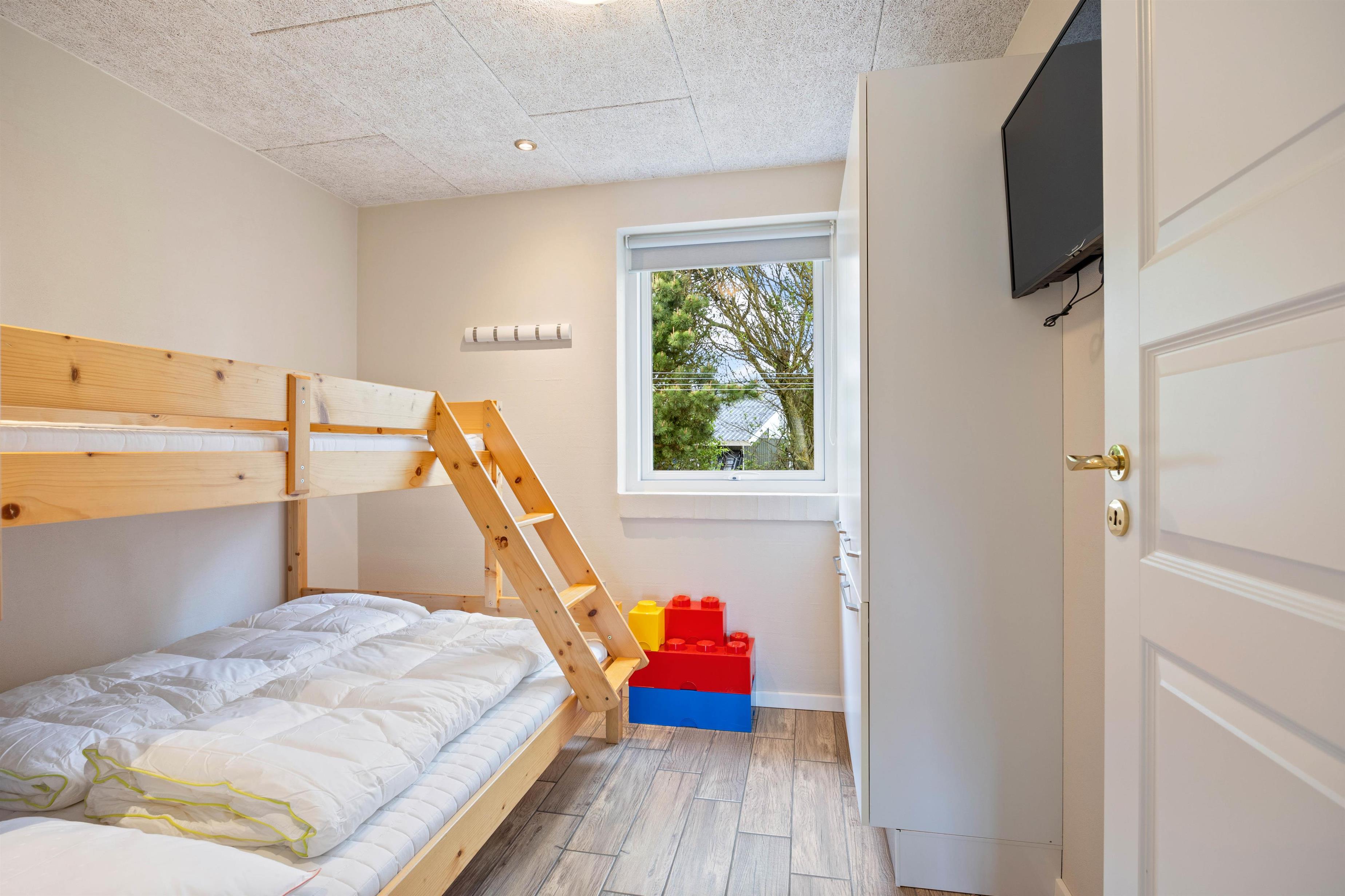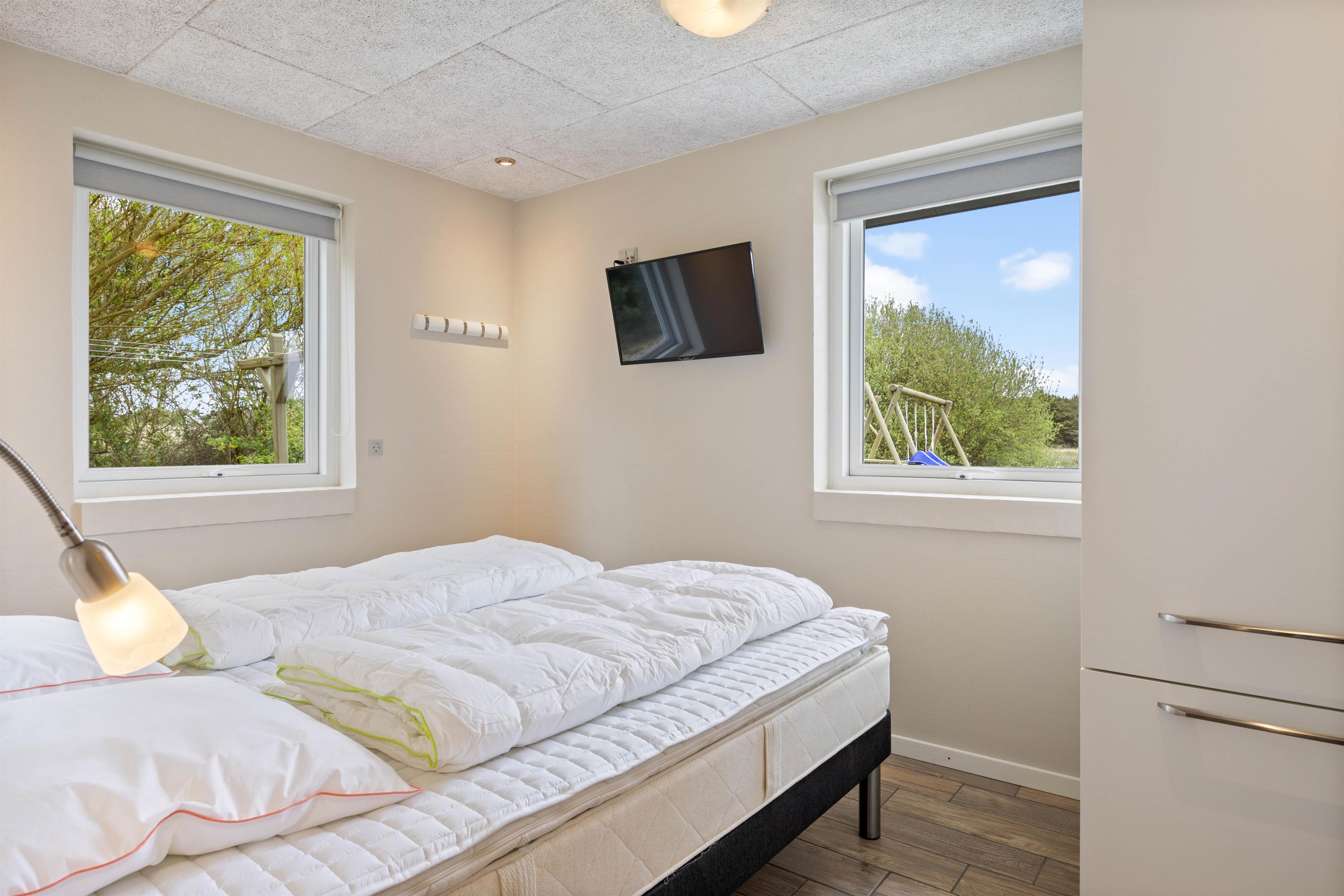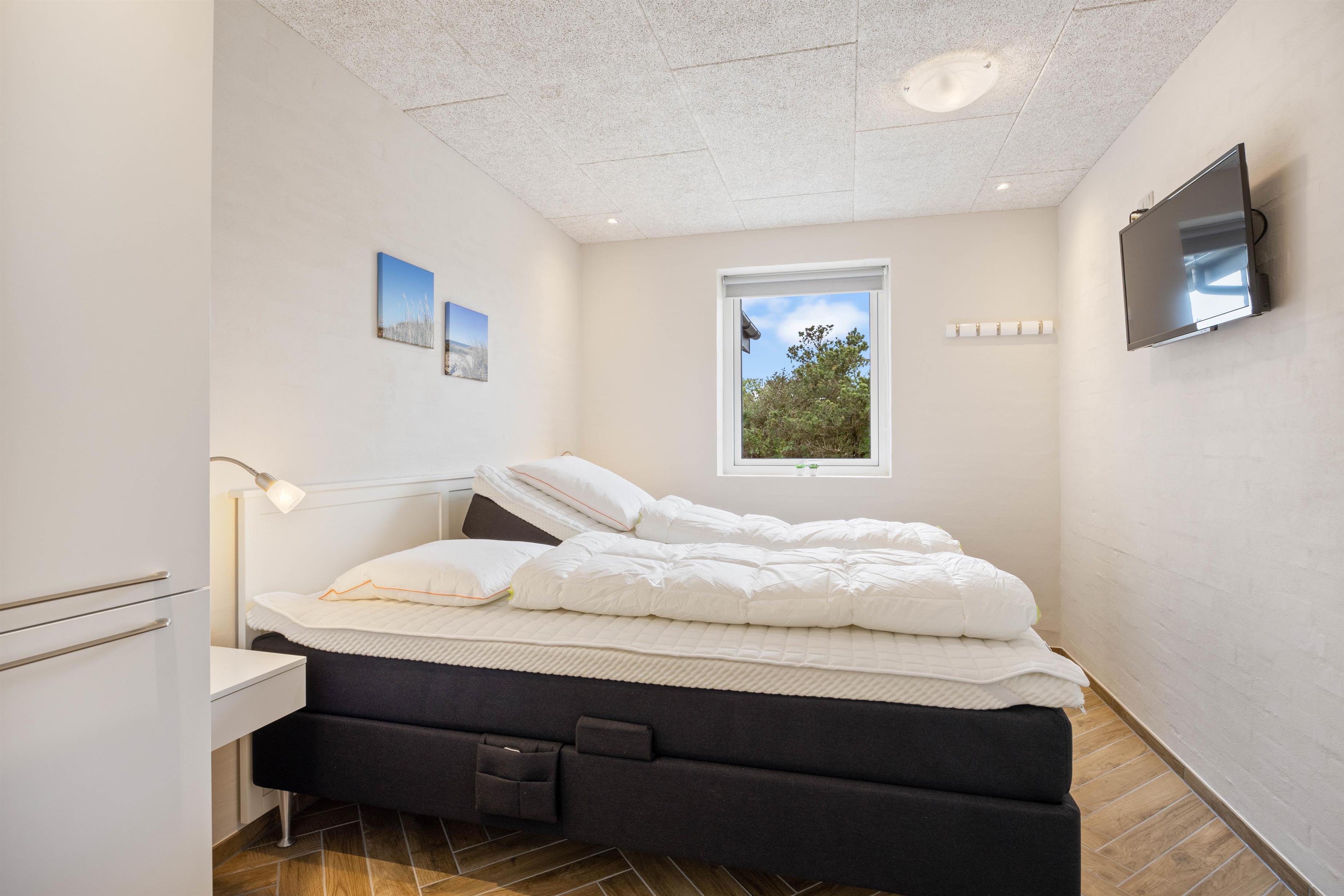 De 10 sengepladser er fordelt på 5 soveværelser med gulvvarme. Her kan I strække ud i den friske vesterhavsluft. De 2 badeværelser har også gulvvarme.