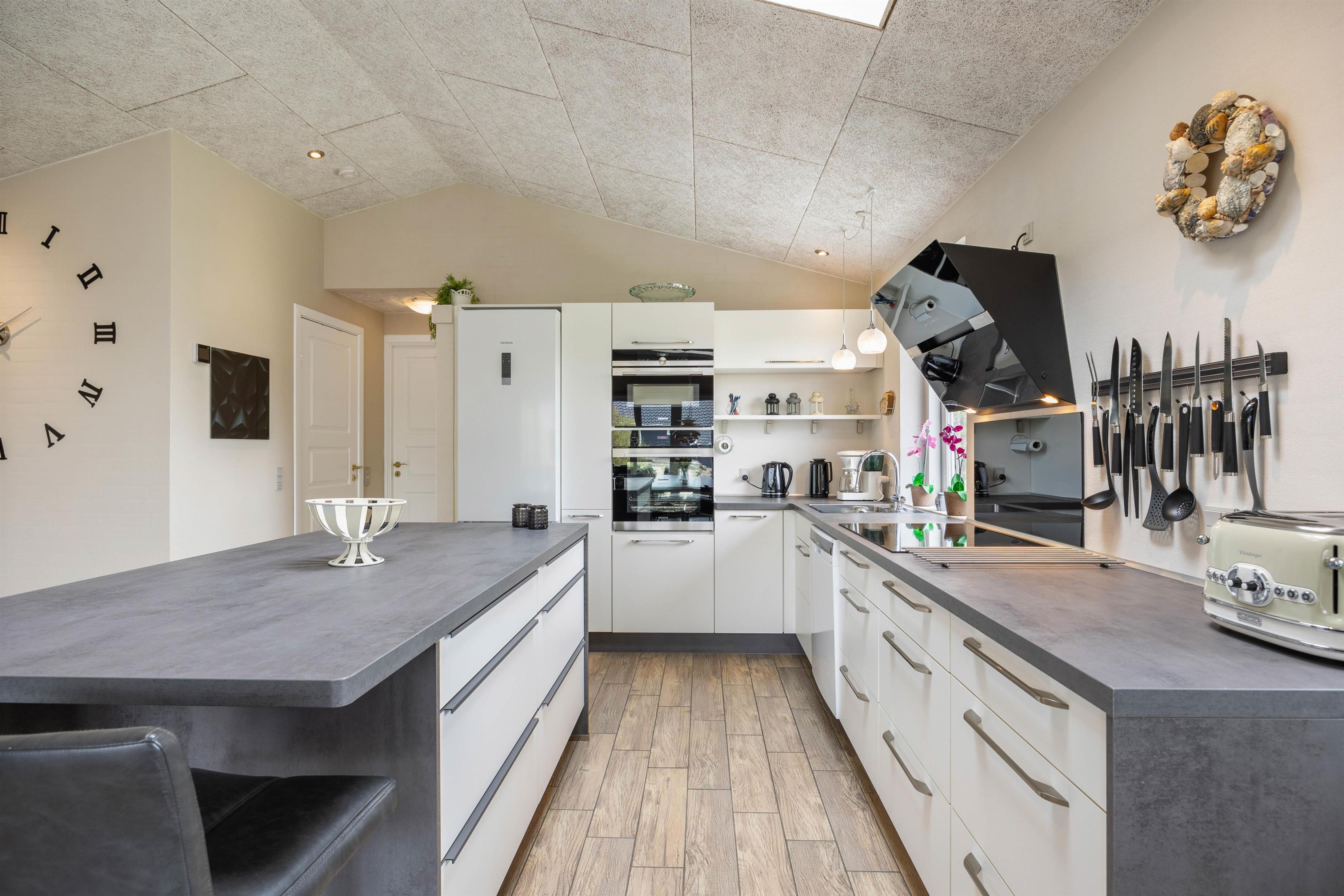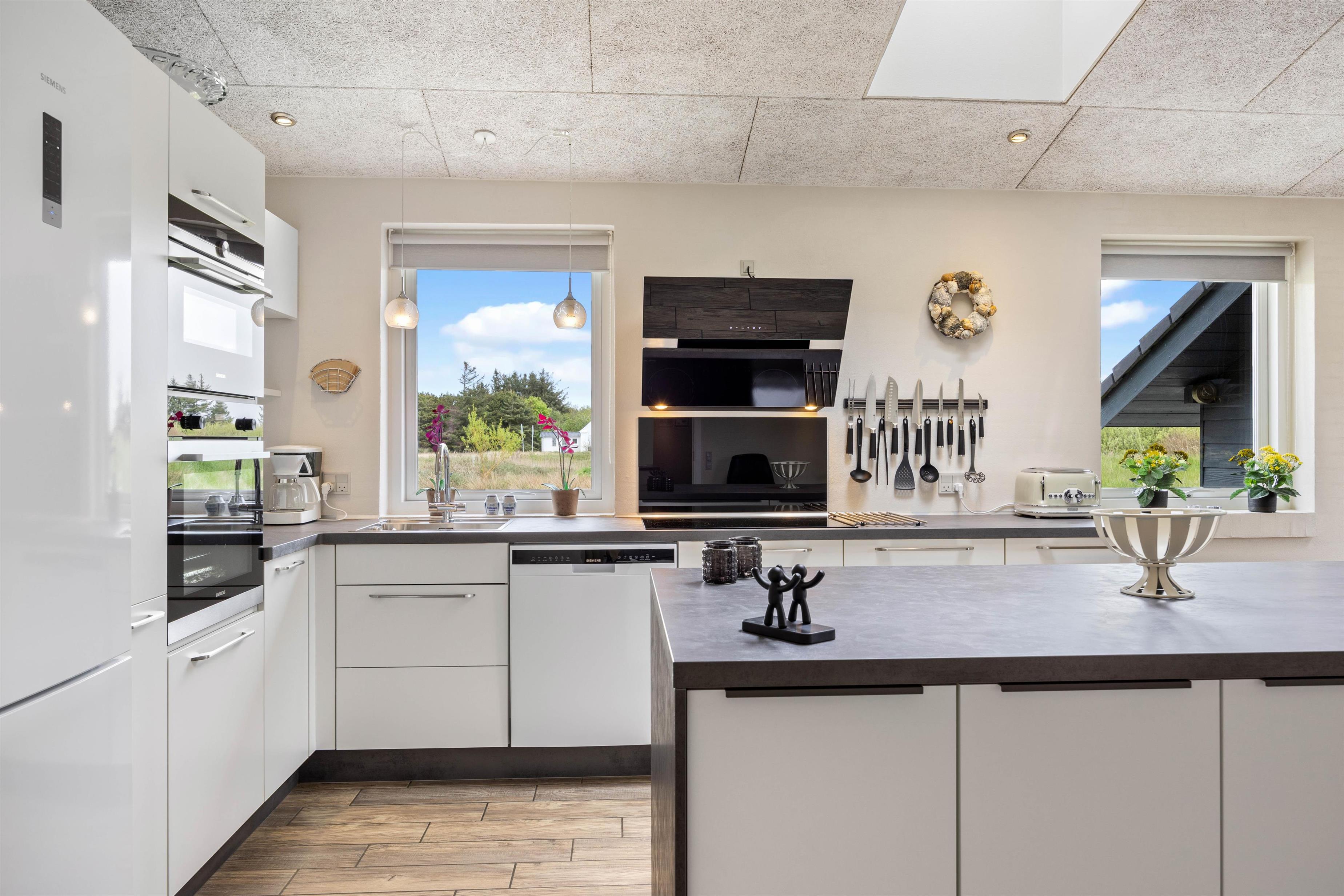 I sommerhuset indeholder det åbne køkken alt, hvad du skal bruge for at fremstille lækre måltider. I kan f.eks. lave en fælles madlavningsaften med fisk som tema, så I udnytter de gode muligheder for at købe frisk fisk i området. Eller selv at fange dem, hvis der er lystfiskere iblandt jer.