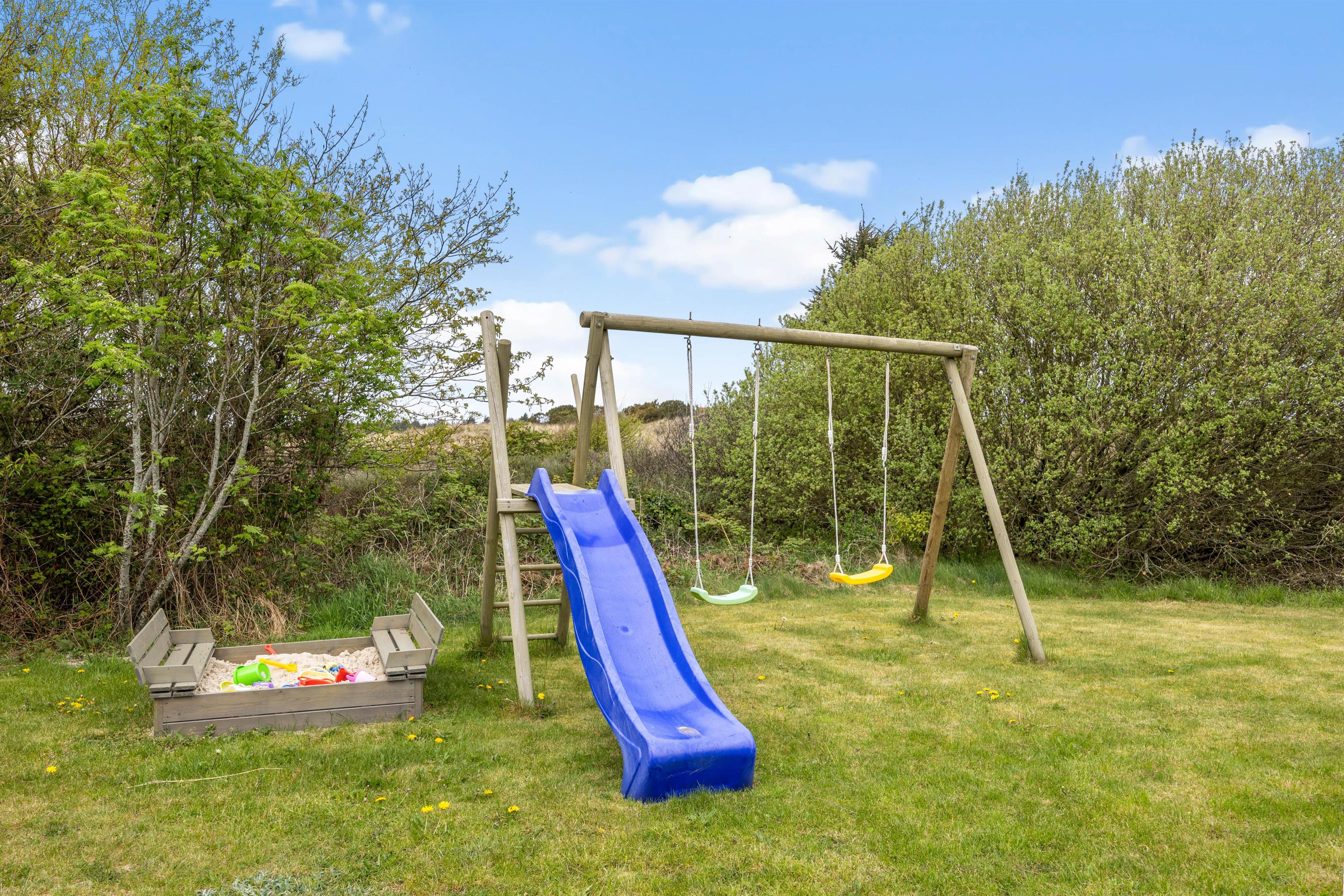 Det skønne feriehus ligger kun ca. 1 km fra sandstranden ved Vesterhavet. Her kan du se frem til lange gåture, tage en dukkert i Vesterhavet og samle skaller. Ringkøbing Fjord venter på den anden side. Her kan du tage på lange cykelture og dyrke vandsport - du kan også finde fiskepladser her.