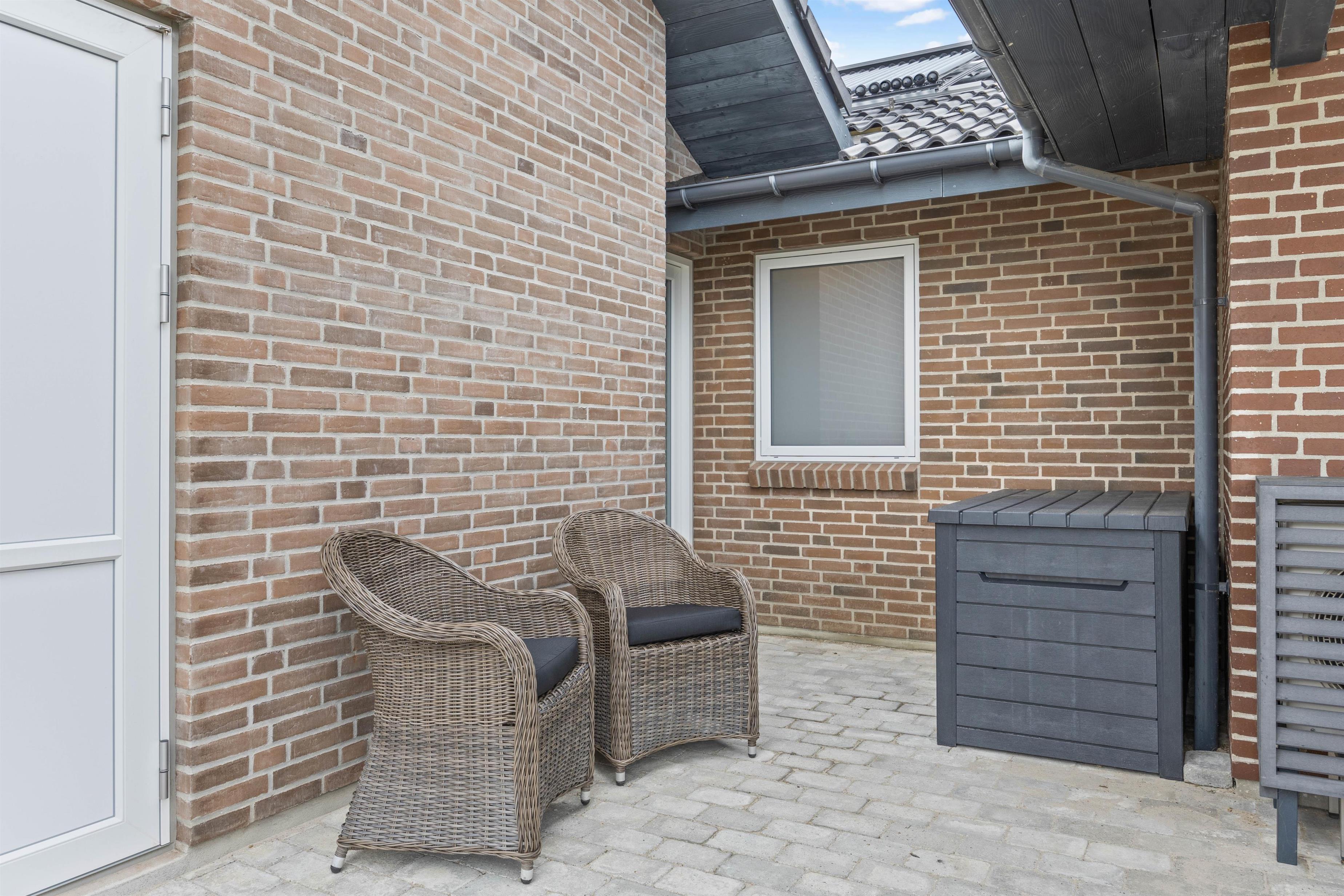 Terrassen på Bjerregårdsvej 22 giver plads til både sol og læfyldte kroge. Også her er komforten i højsæde for både børn og voksne. Sandkasse og gyngestativ til børnene sammenholdt med den store plæne- og naturgrund giver god mulighed for at brænde energi af for de mindste.