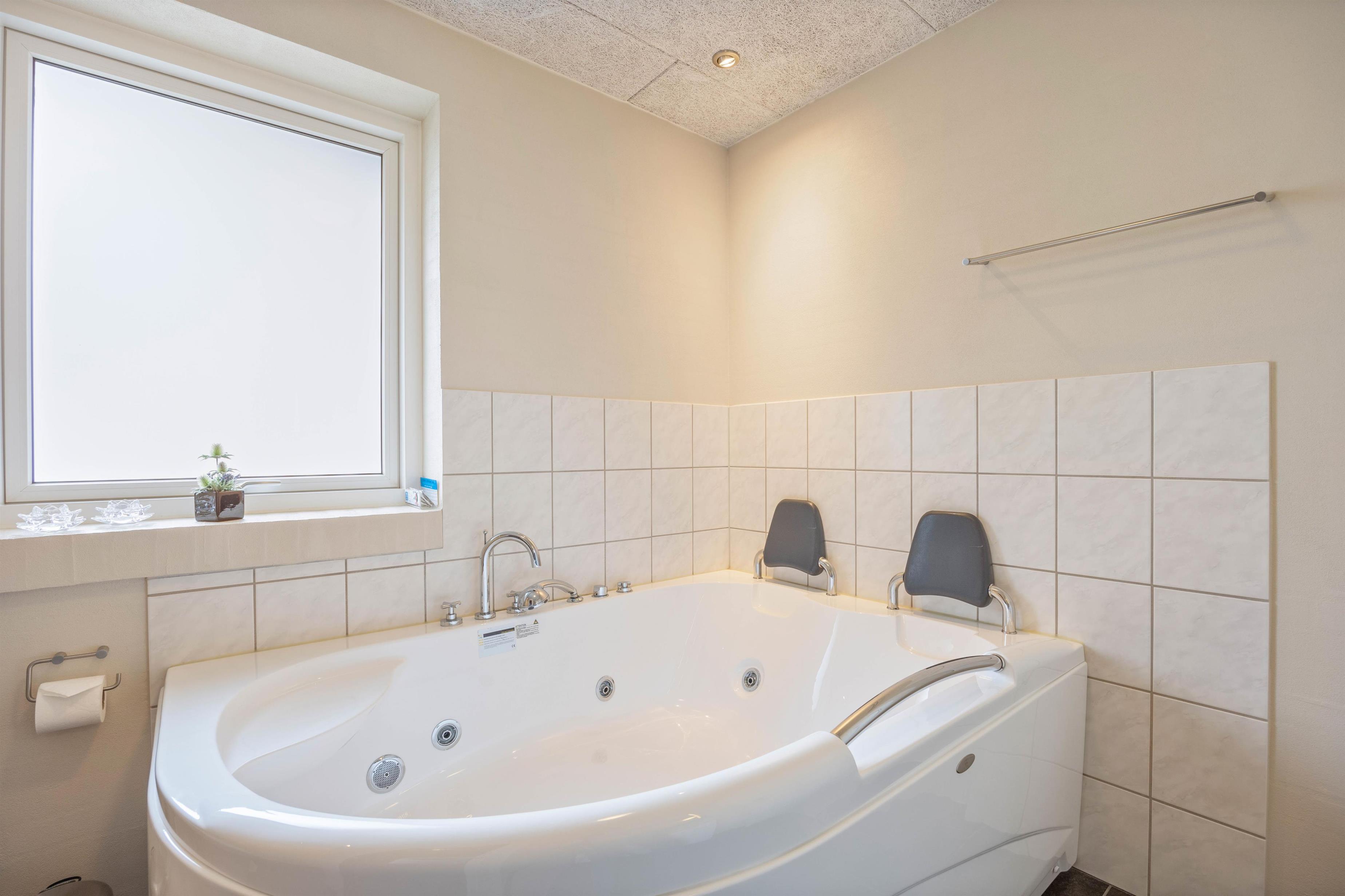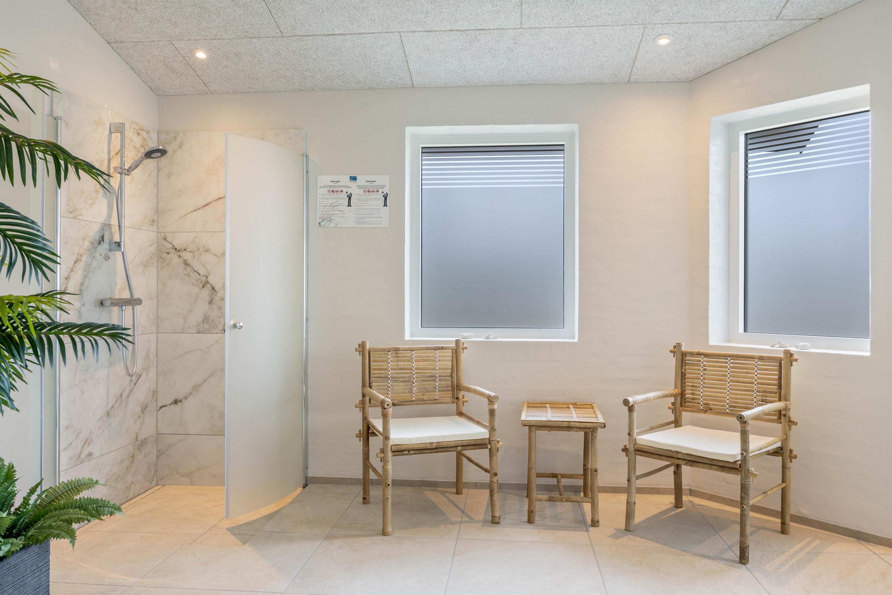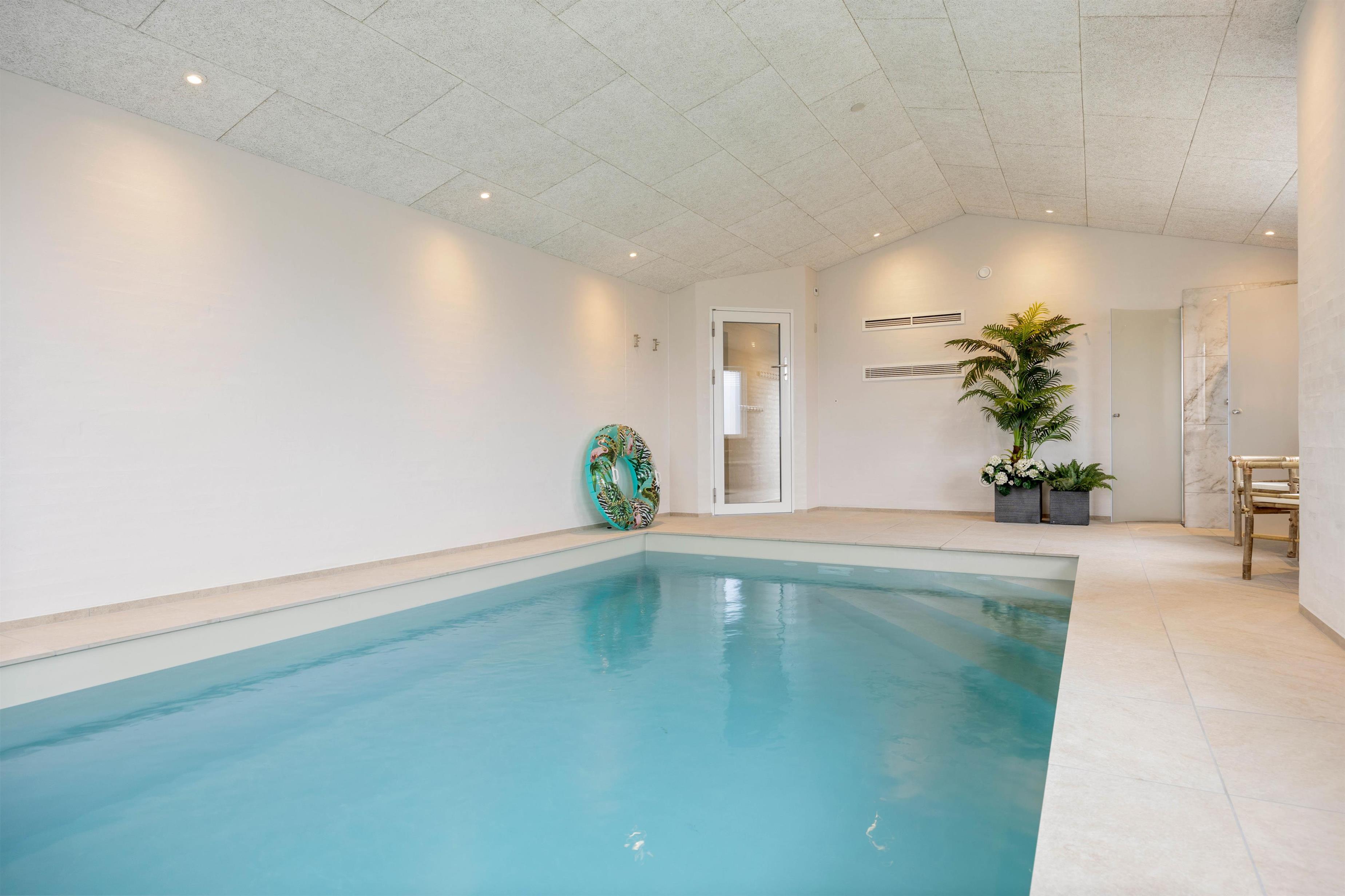 Den 18 kvadratmeter store pool kan hurtigt blive sommerhusets omdrejningspunkt. Her er plads til fri leg, såvel som til at træne baner – og med både indendørs- og udendørs spa har I tilbud om utallige badeoplevelser. En muskelafslappende tur i sauna kan sommerhuset også byde på.