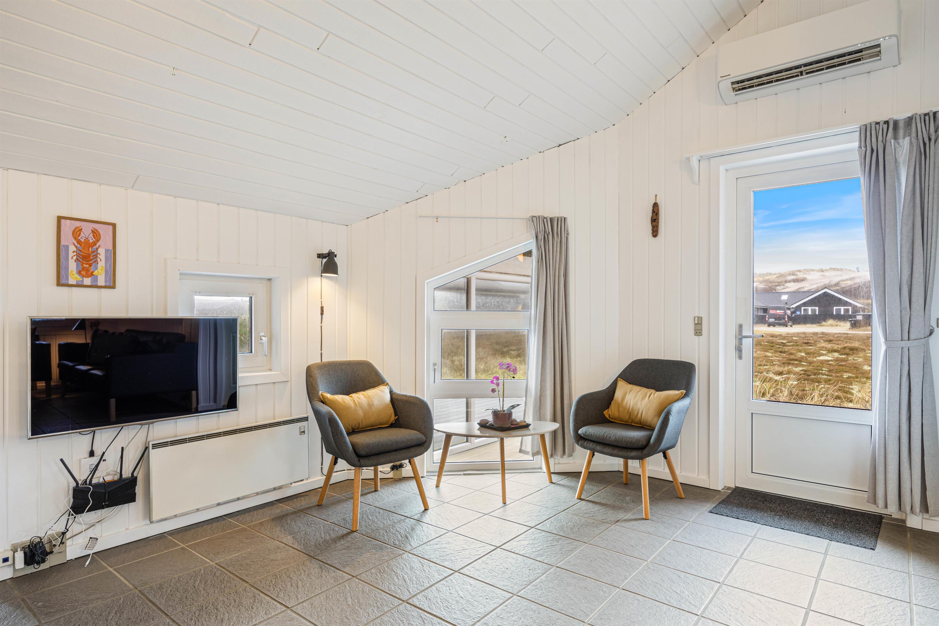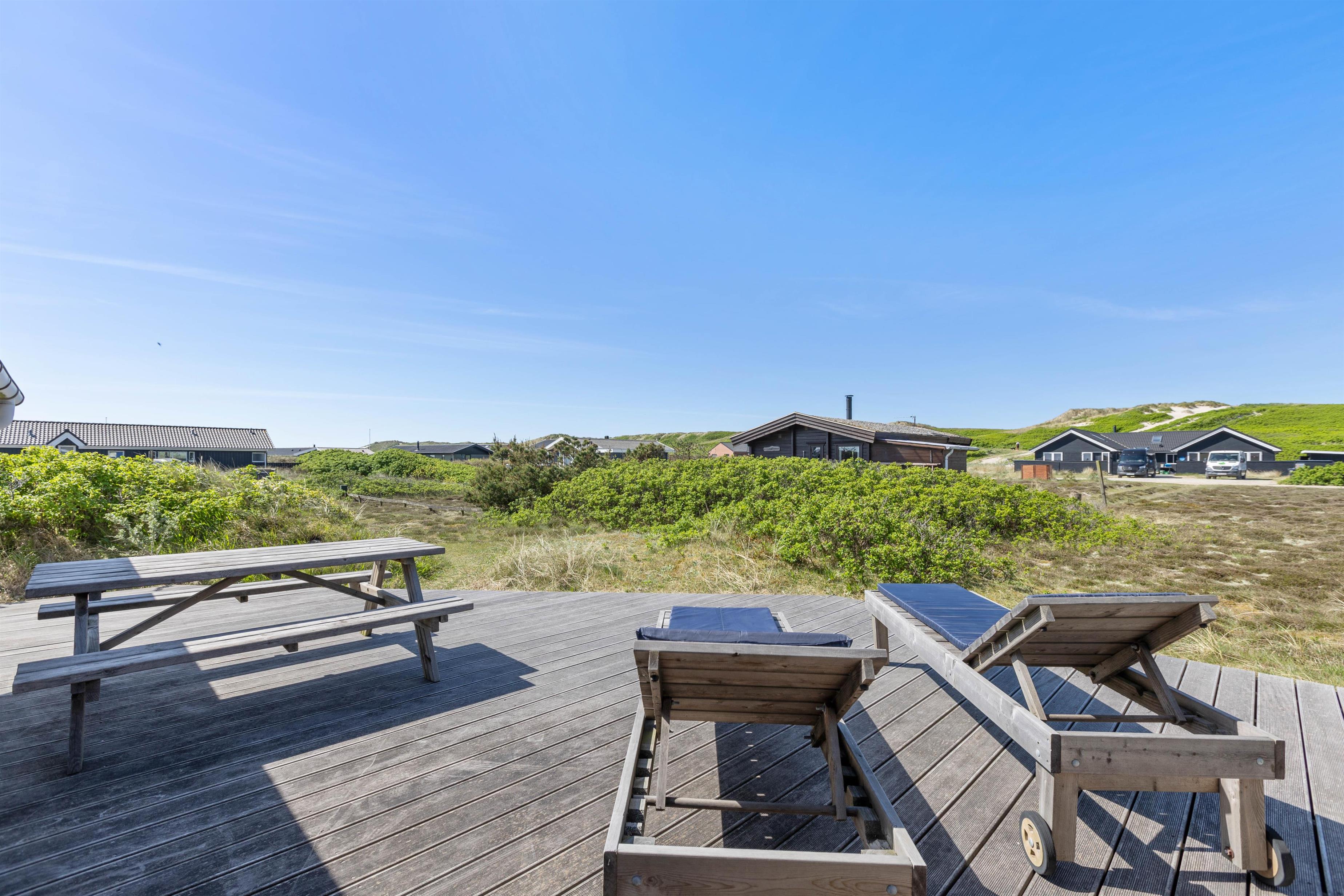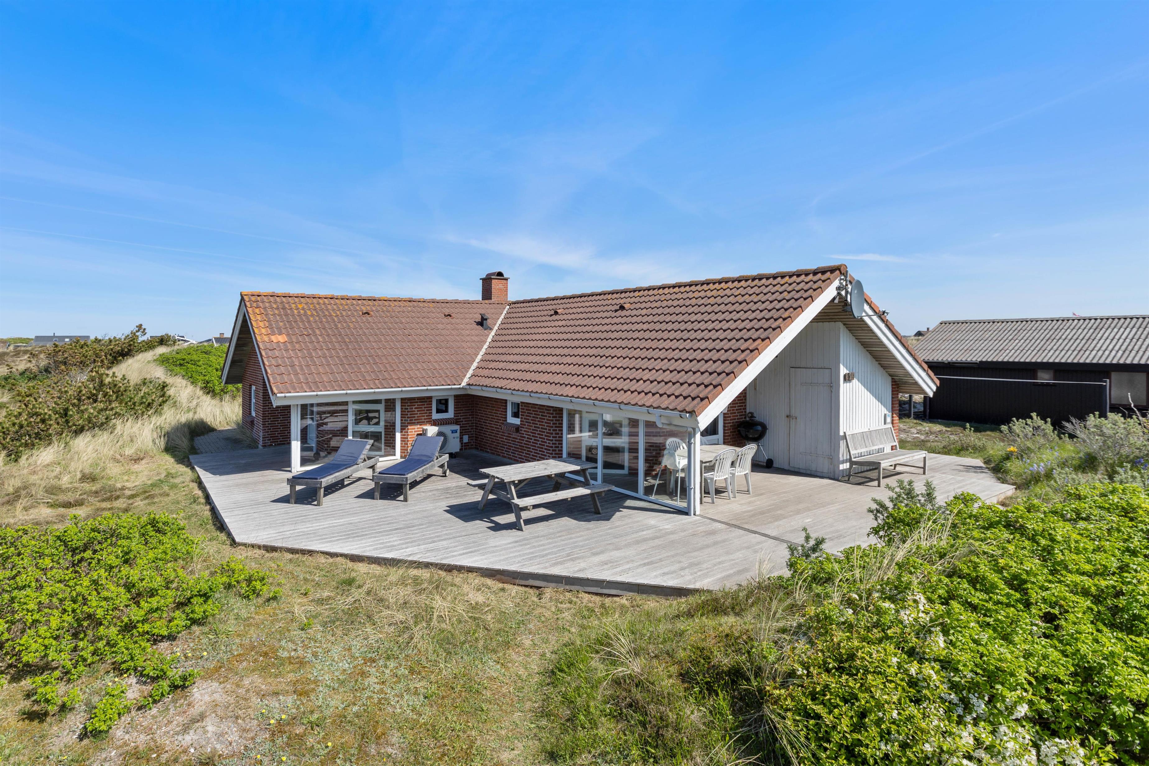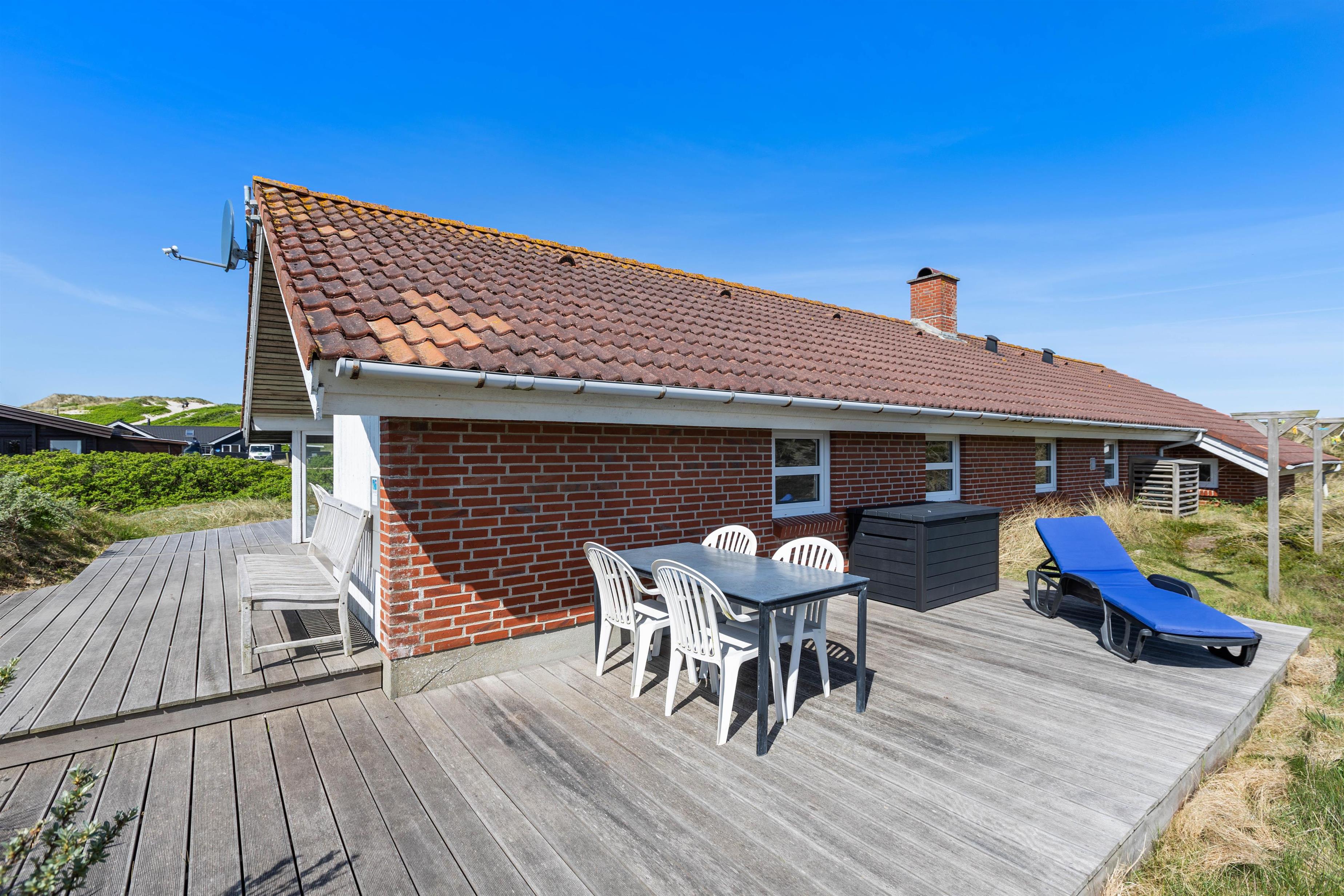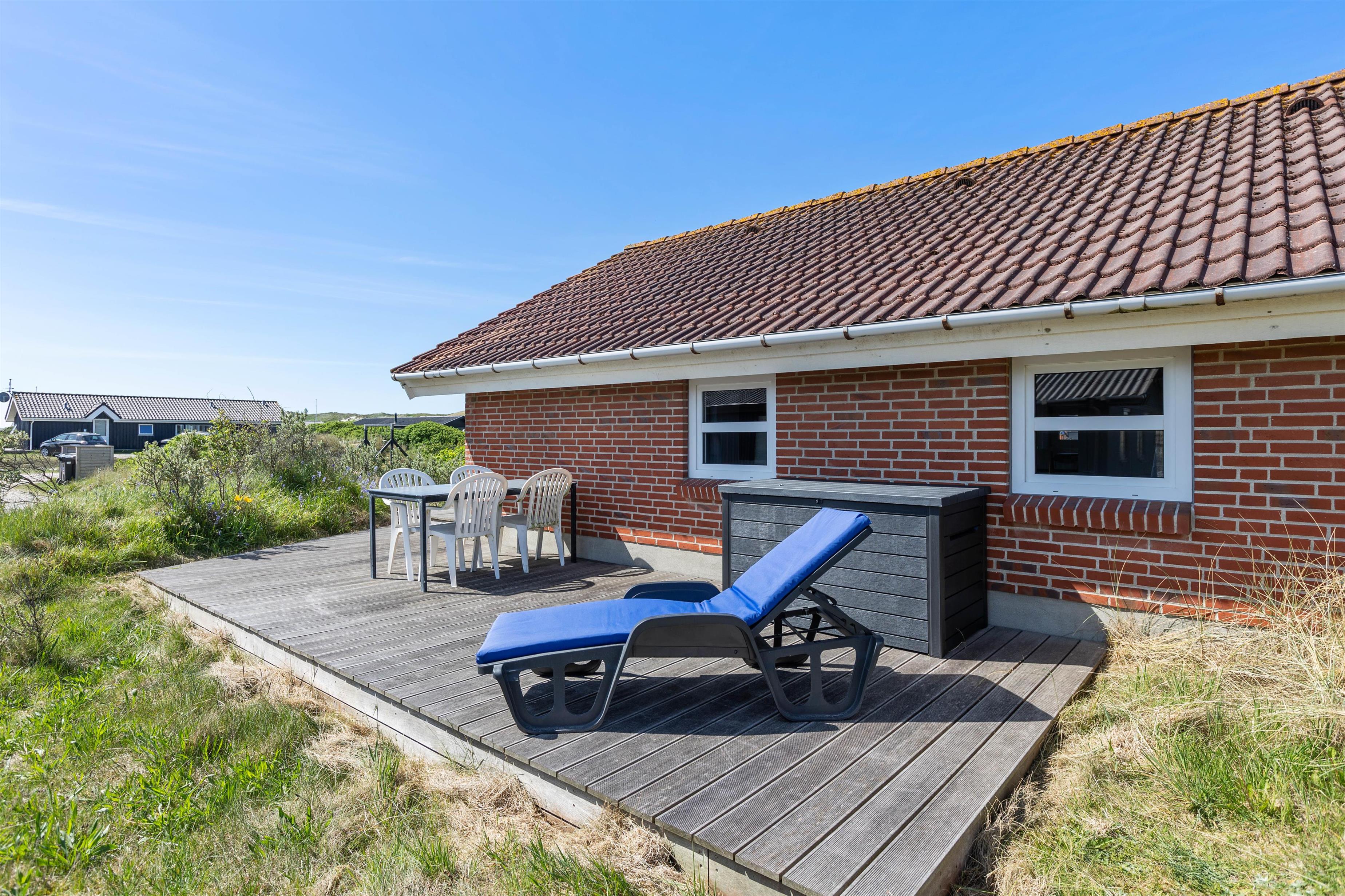 Sommerhuset er meget velbeliggende på en lille stikvej kun et par hundrede meter fra Vesterhavet og den kilometerlange strand, hvor du kan vandre i timevis og få ny energi til krop og sjæl. Ikke langt fra sommerhuset ligger også store hedearealer, som er perfekte til vandreture.