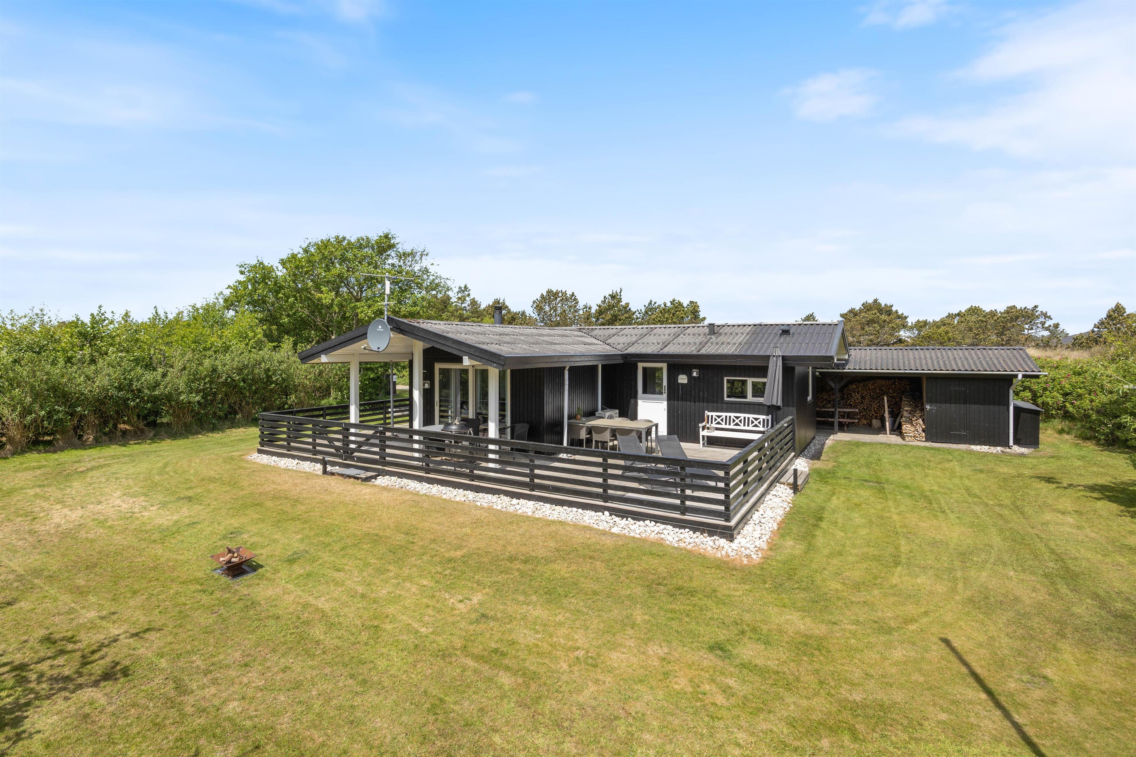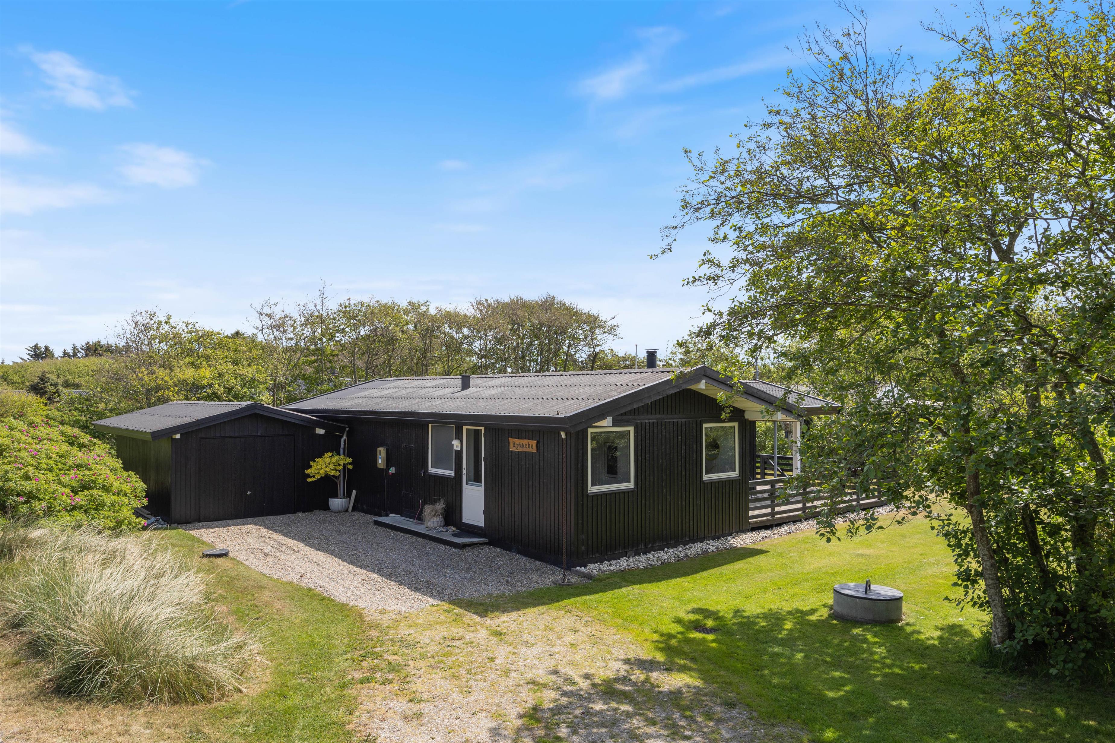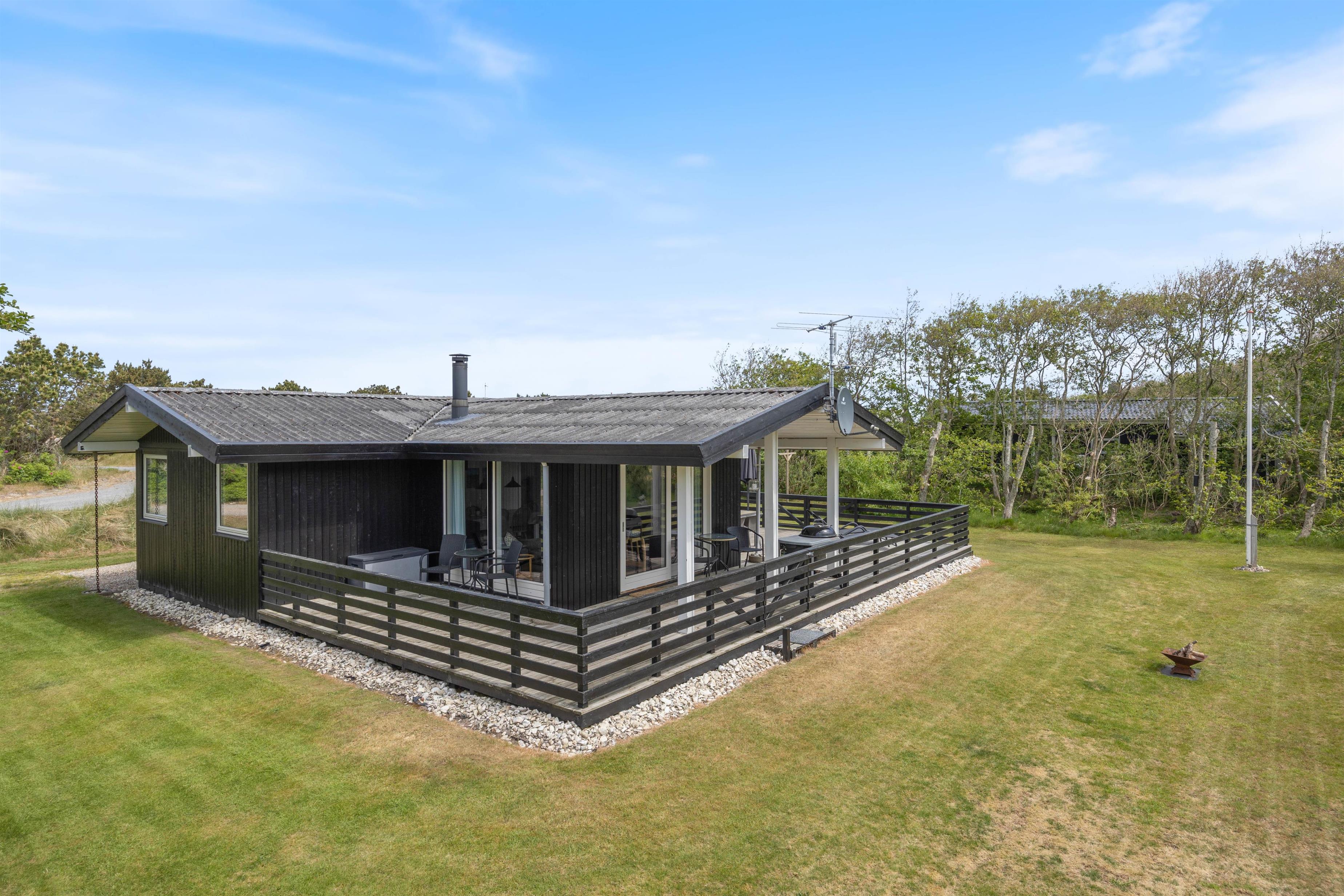 Sommerhuset her på Bjerregårdsvej 80 er indbydende og godt indrettet. Her har I alt, hvad I skal bruge for at få en dejlig ferie tæt på Vesterhavet. Og beliggenheden på en stor, afskærmet plænegrund i et roligt område, vil I sikkert også nyde, da I ugeneret kan hygge og grille på terrassen. Imens kan børnene løbe frit rundt.