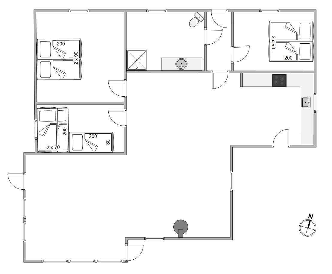 Efter en begivenhedsrig dag kan I trække jer tilbage på soveværelserne og samle ny energi. Sommerhuset har i alt 3 værelser, hvoraf der er 2 dobbeltsenge. På det sidste værelse er der en køjeseng, som er et stort hit blandt familiens yngste.