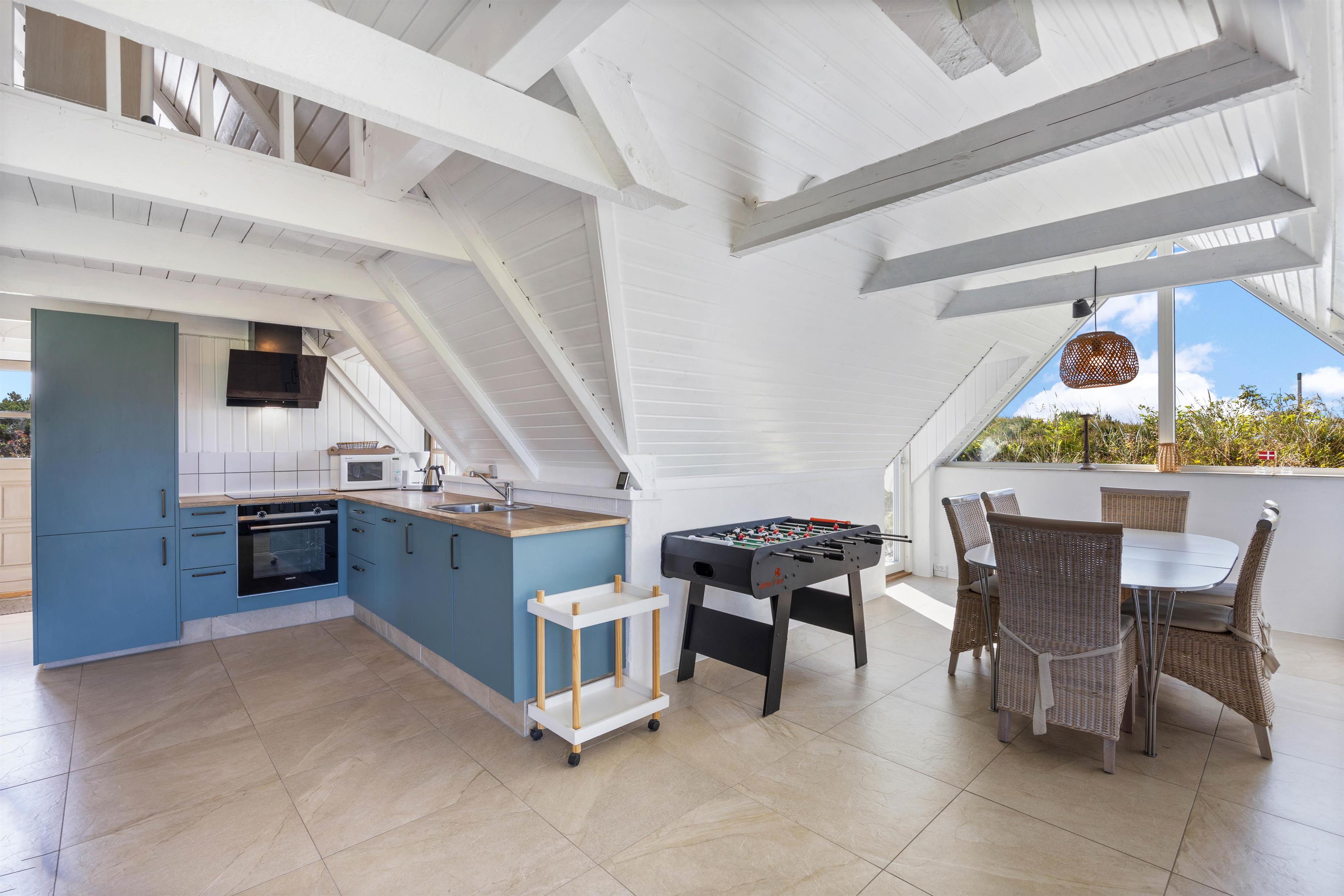 Feriehuset er beliggende på en stor naturgrund med lyng og svajende marehalm. Nyd solskinstimerne udendørs, hvor havemøblerne allerede står klar til jer! Spil i solen, planlæg feriedagens eller slap af efter dejlig dag på stranden. Til aften skal I alle samles til en dejlig grillmiddag på terrassen. Tænd op i grillen og nyd hertil et køligt glas rosé.
