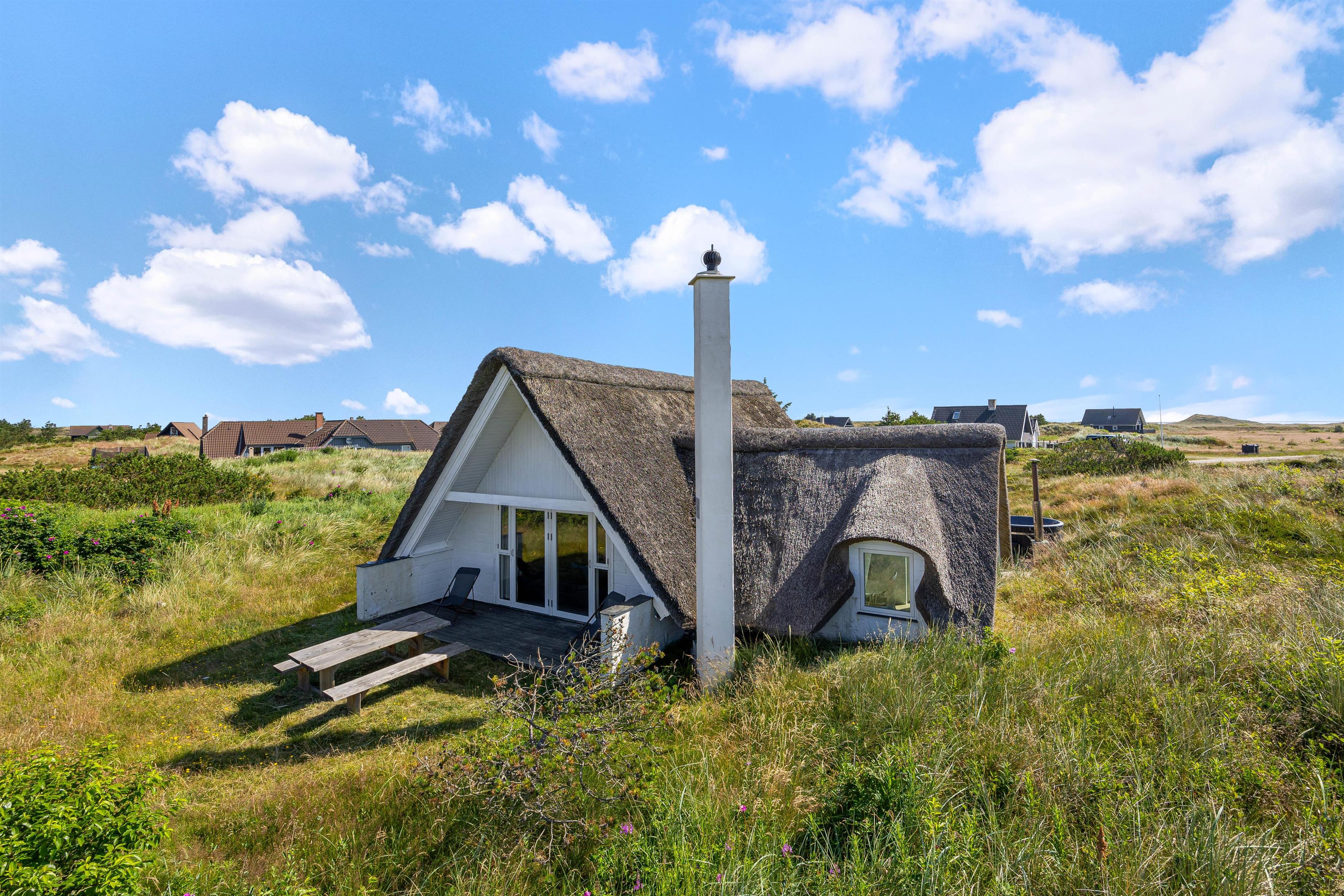 På en smuk naturgrund kun 700 meter fra det brusende Vesterhav, finder I dette sommerhus på Nymandsbjerg 5. Det charmerende stråtækte sommerhus kan huse 5 gæster, og udenfor venter jer et vildmarksbad.