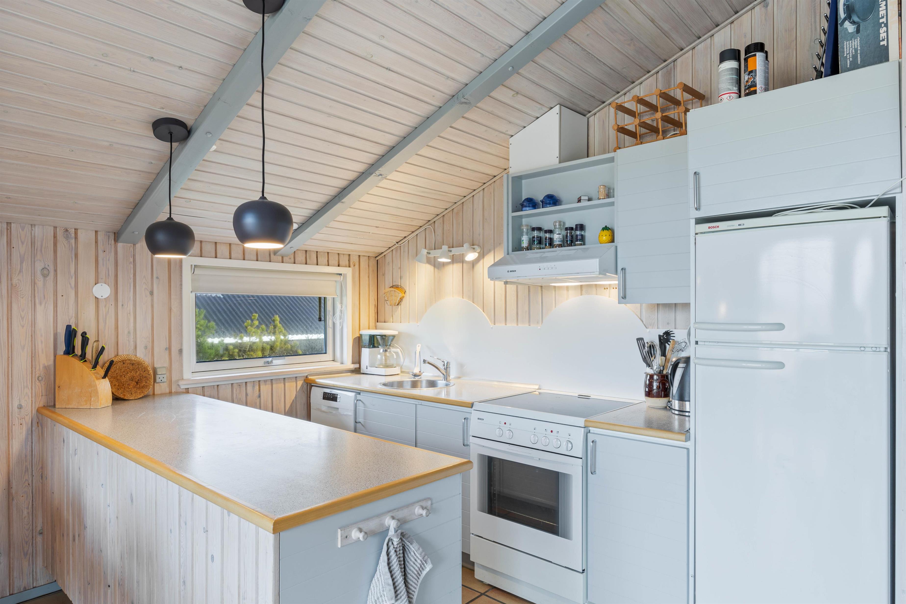 Om aftenen kan I se en film sammen eller nyde et brætspil ved spisebordet. Her er også god plads til at tilberede og nyde lækre måltider i køkkenet, der bl.a. har opvaskemaskine, mikrobølgeovn, køle-/fryseskab og elkomfur.